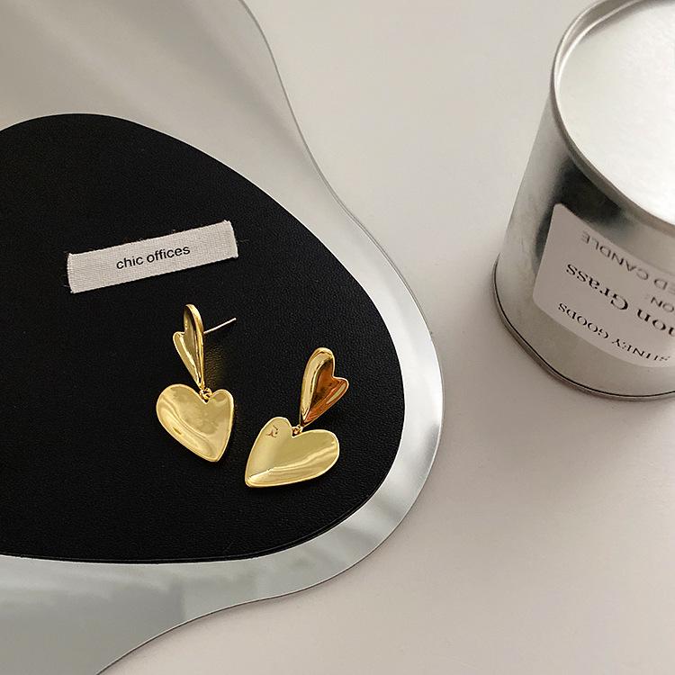 Gold love earrings 925 silver needle plated real gold
