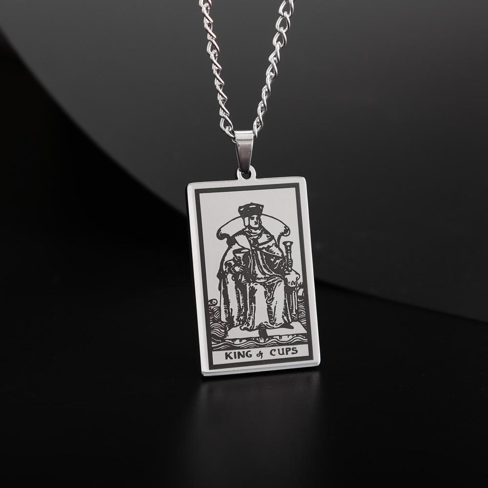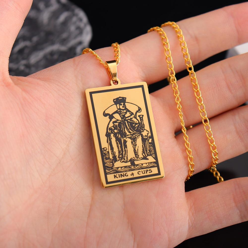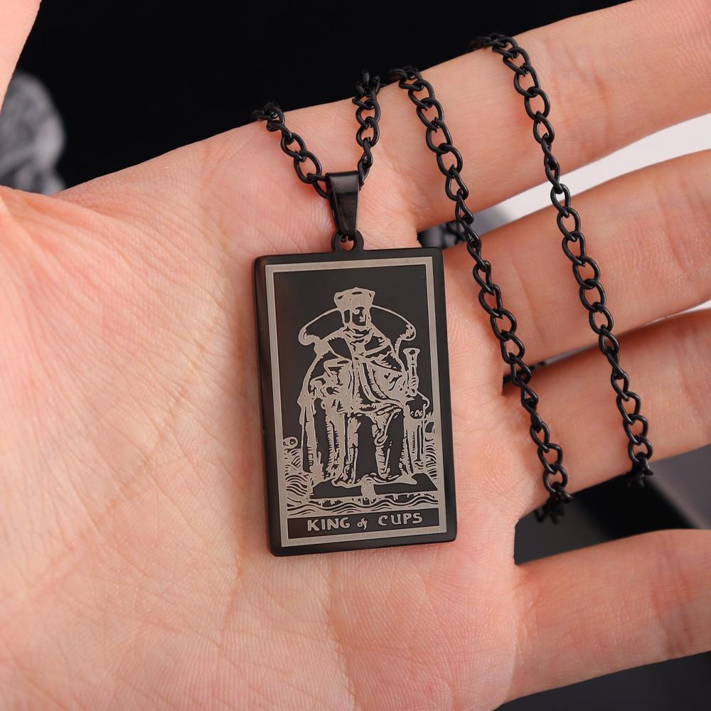 Collar con colgante de la Copa Sagrada del Tarot Waite de acero inoxidable transfronterizo de Temu, cadena larga para suéter
