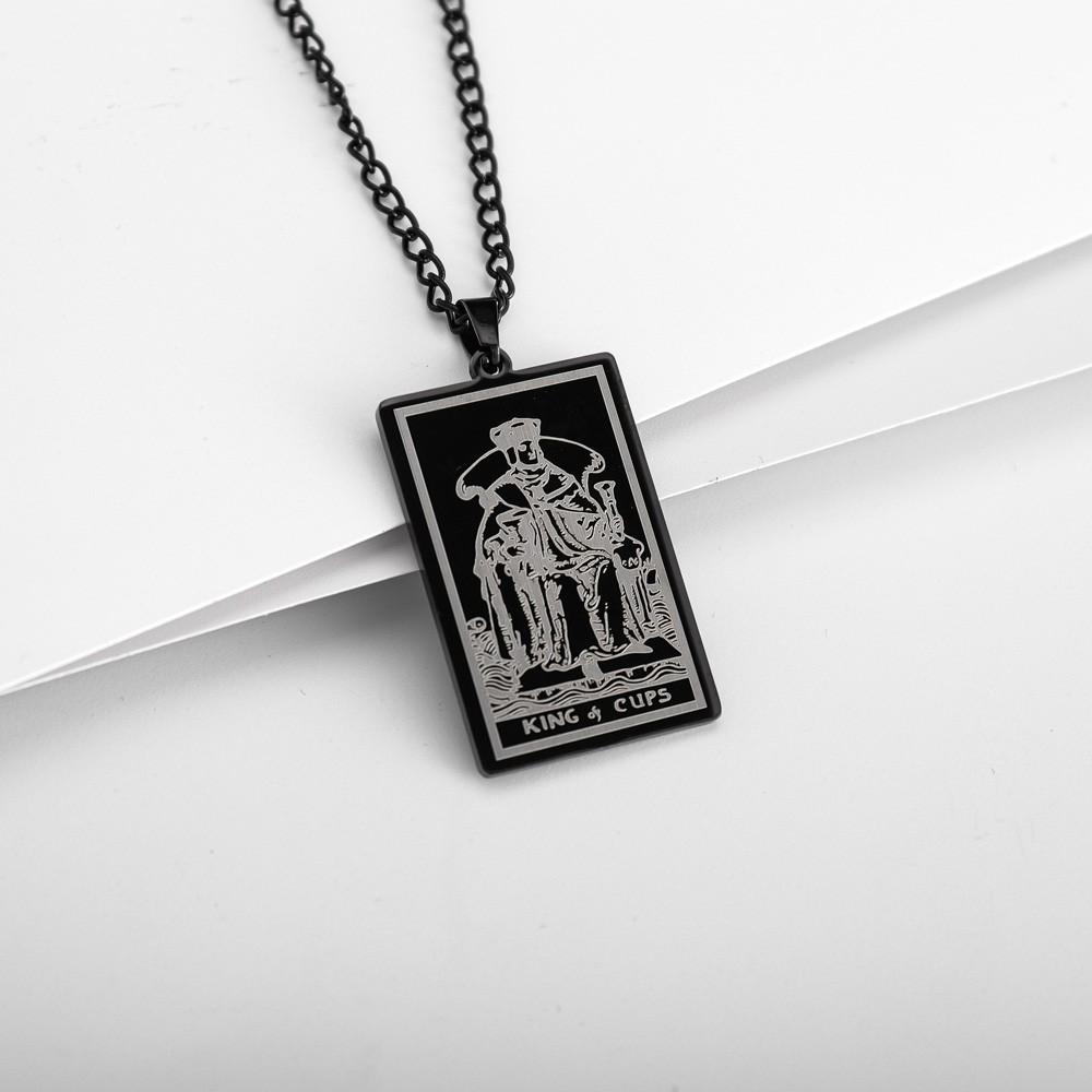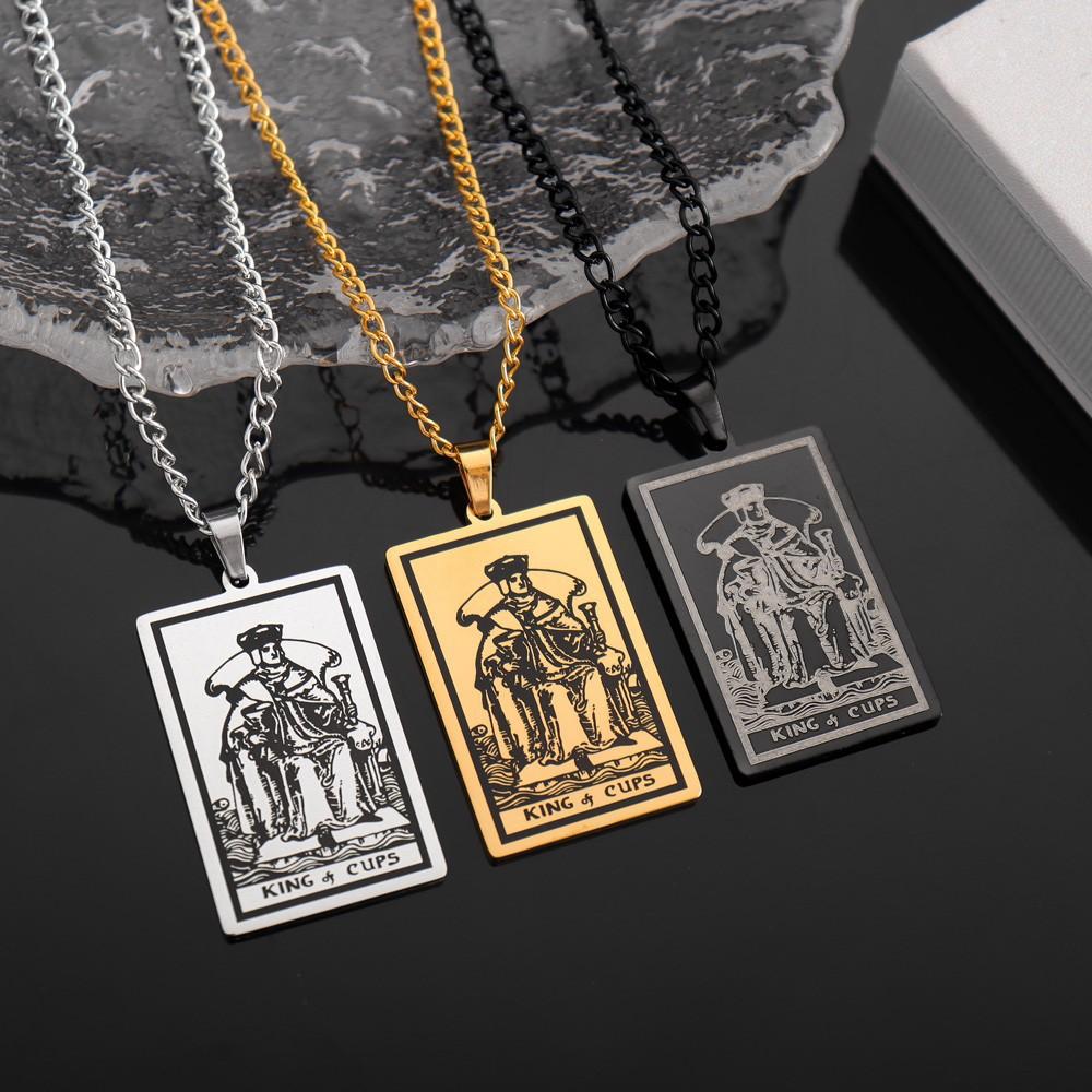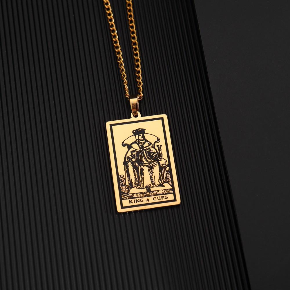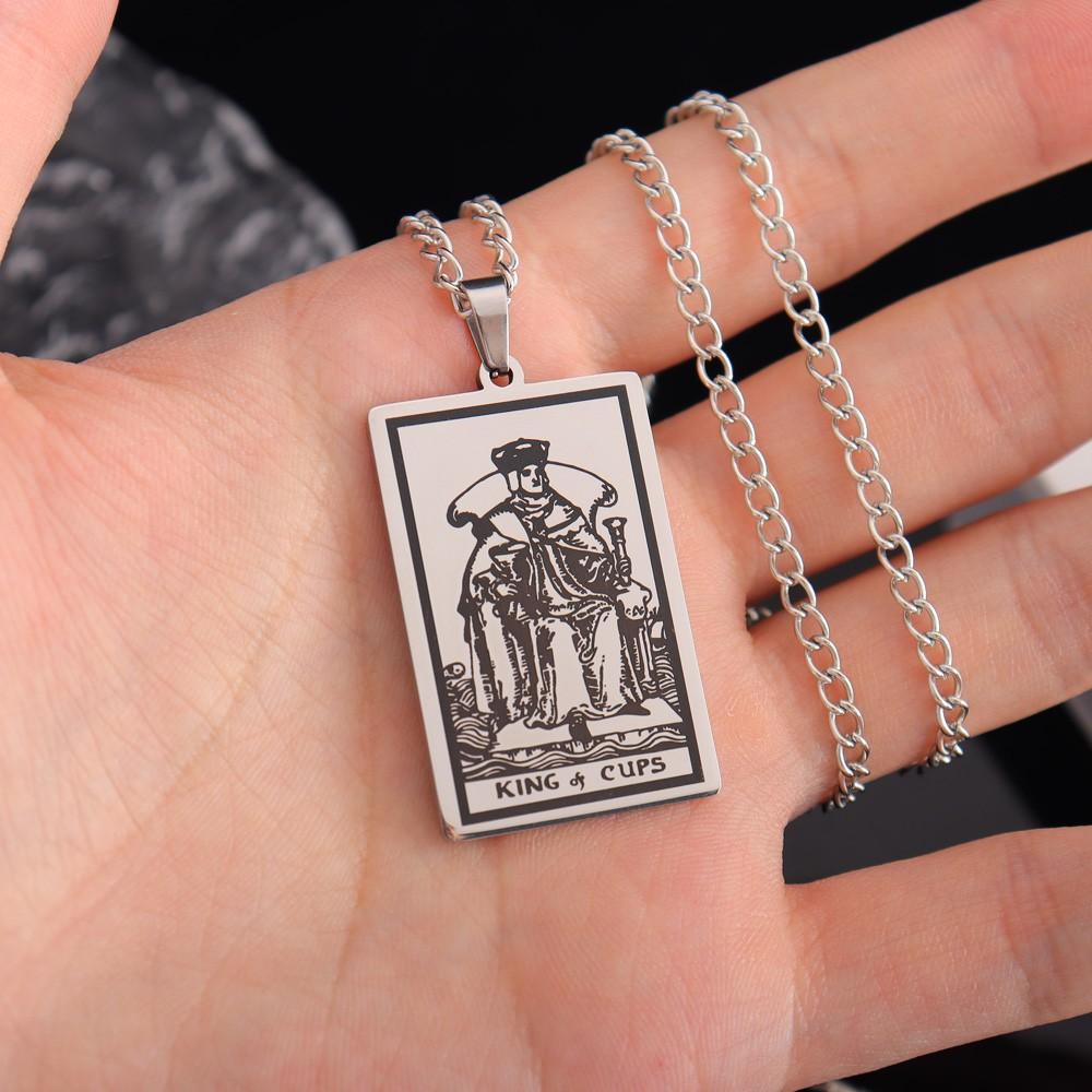 Collar con colgante de la Copa Sagrada del Tarot Waite de acero inoxidable transfronterizo de Temu, cadena larga para suéter