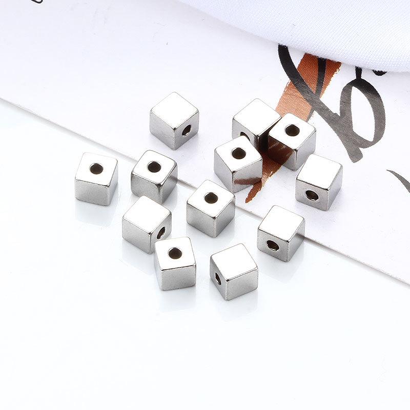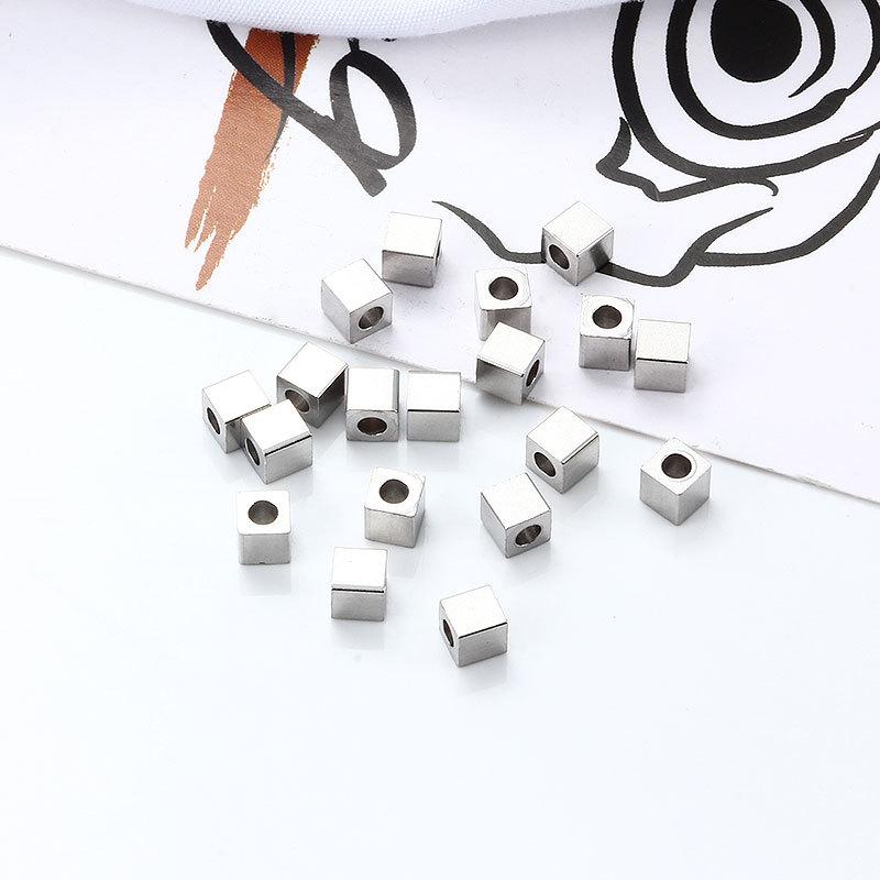 Acero Inoxidable Cuadrado Agujero Pasante Abalorios Accesorios DIY Collar Pulsera Abalorios Separados Abalorios Sueltos Moda Personalizado Accesorios con Cuentas
