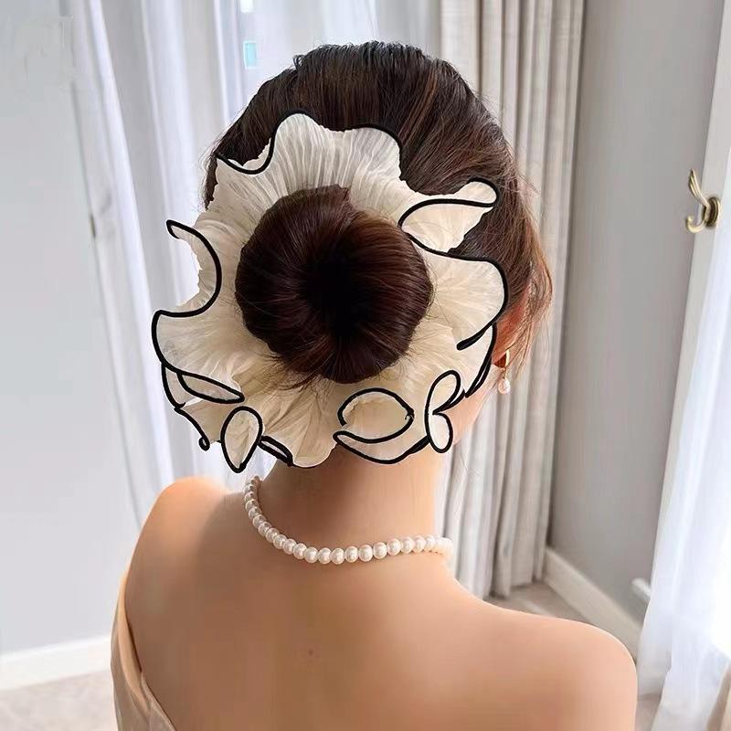Elegante tocado con forma de bola de hada para mujer, con plisado, para el intestino grueso, con aro para el pelo, banda de goma para la cabeza con cola de caballo, a la moda, combina con todo.