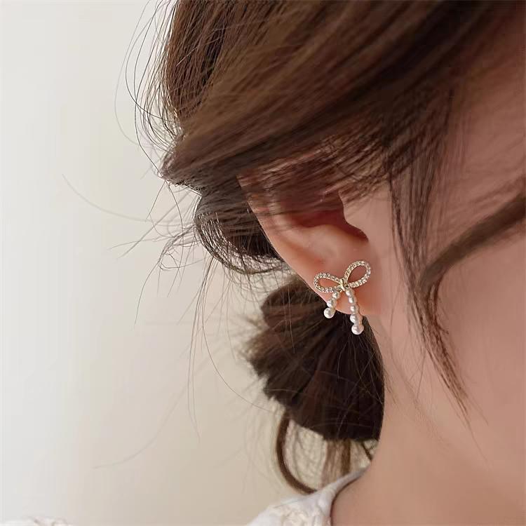 Aretes de Perlas Casuales para Mujer Diseño Nicho Diamante Versátil 2023 Nuevos Aretes de Moda Aretes