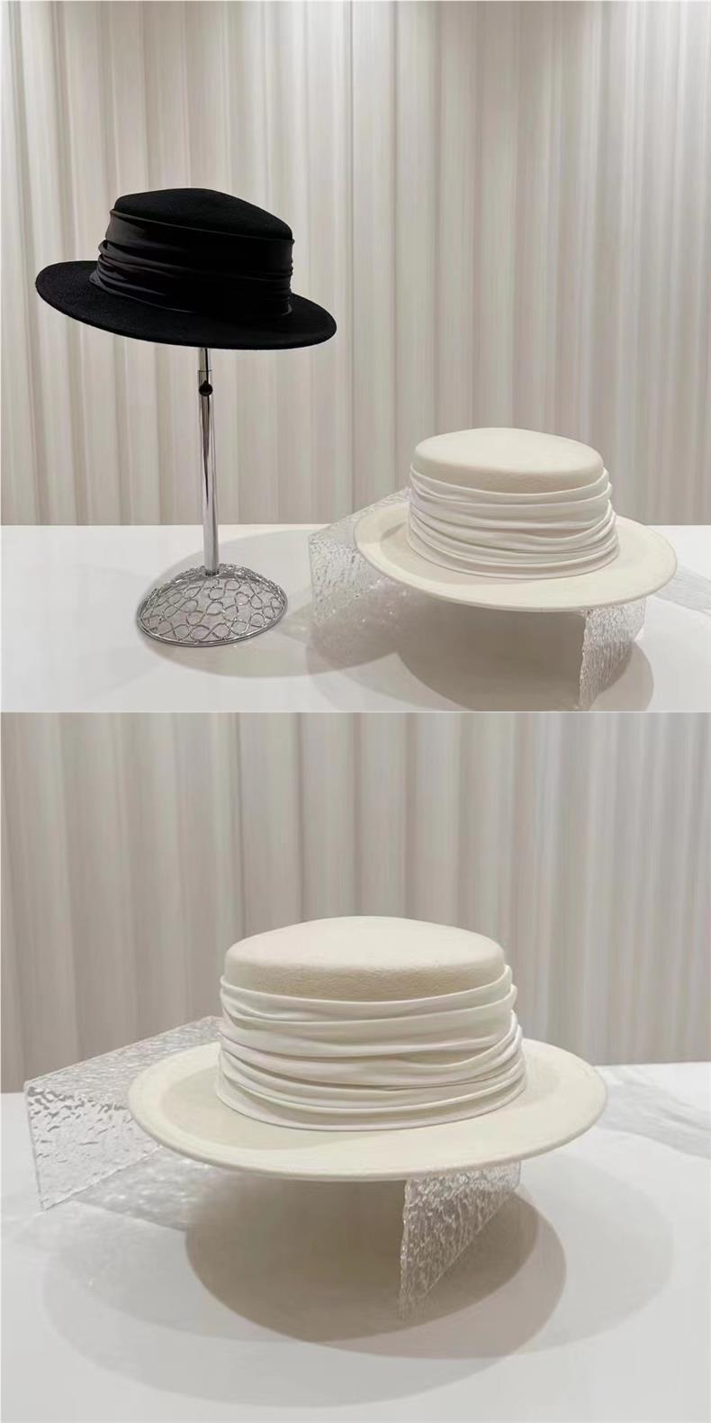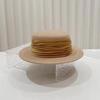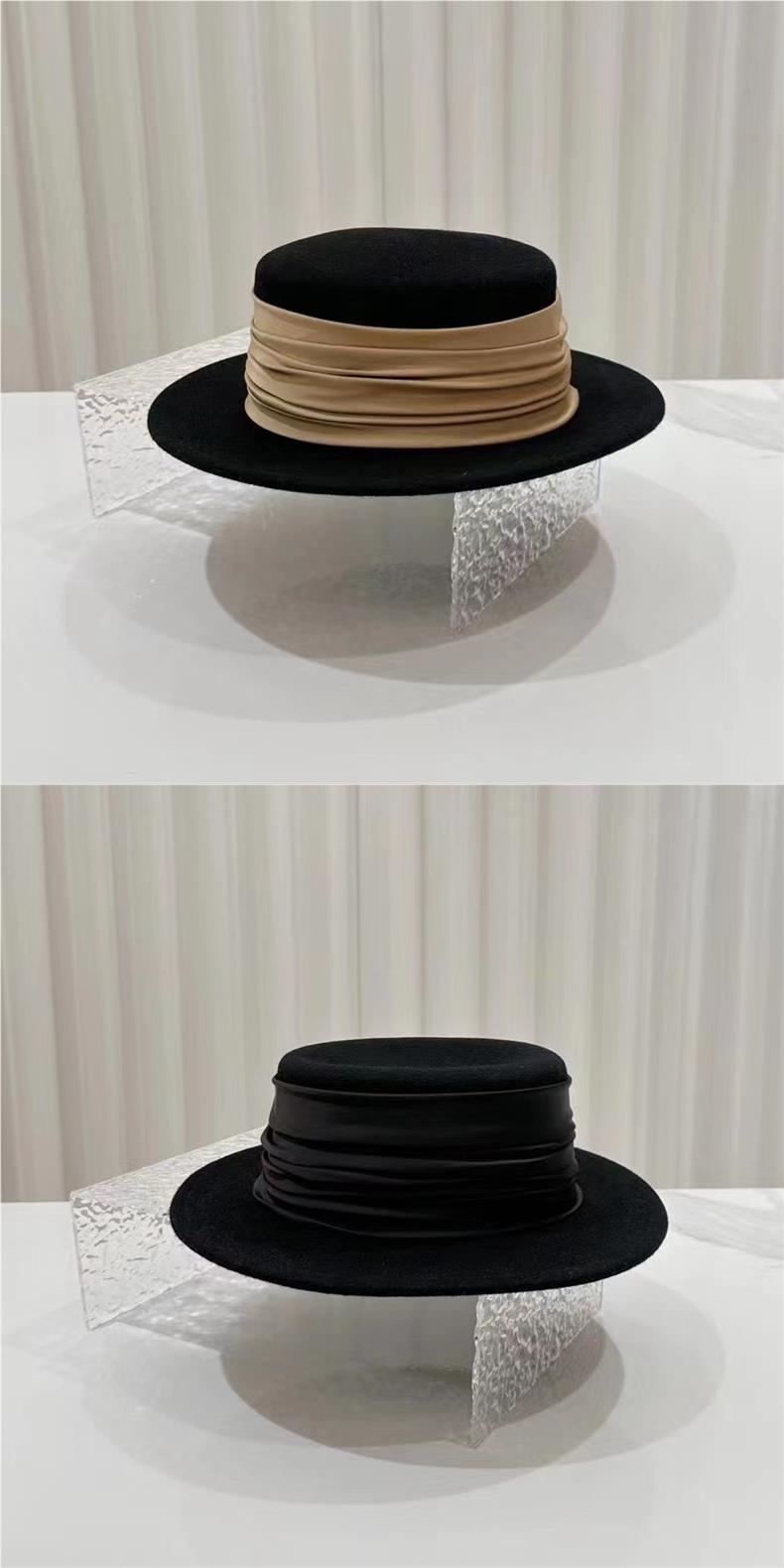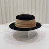 Sombrero plano elegante simple de cinta francesa para mujer estilo Hepburn moda retro sombrero de lana otoño e invierno sombrero de fieltro