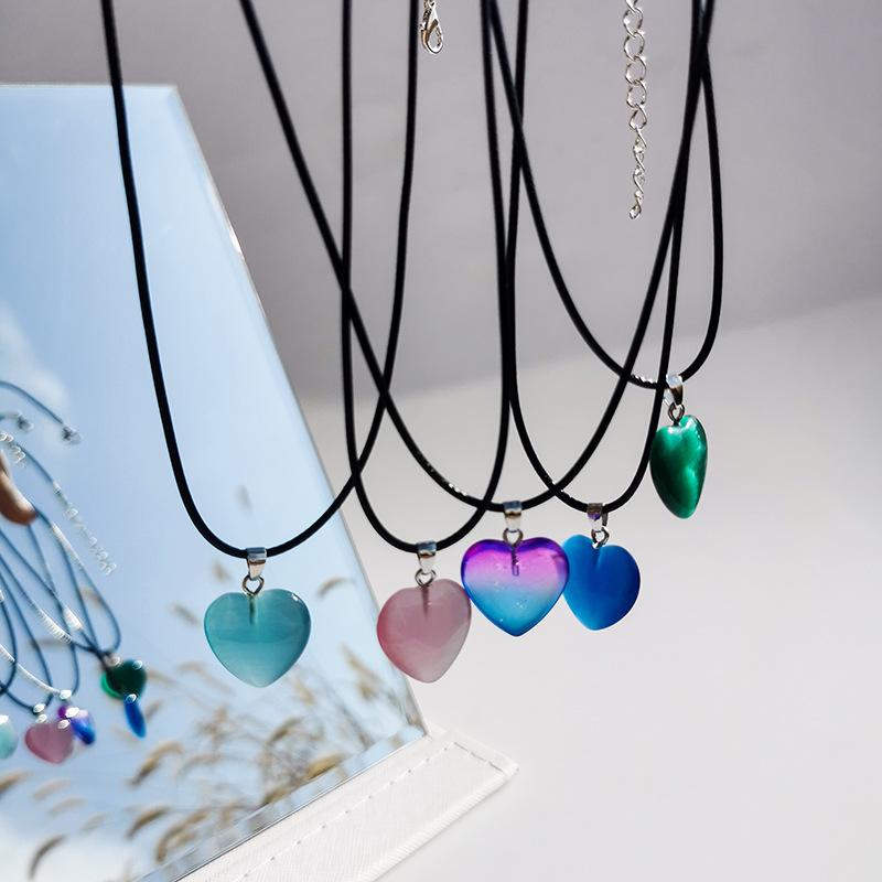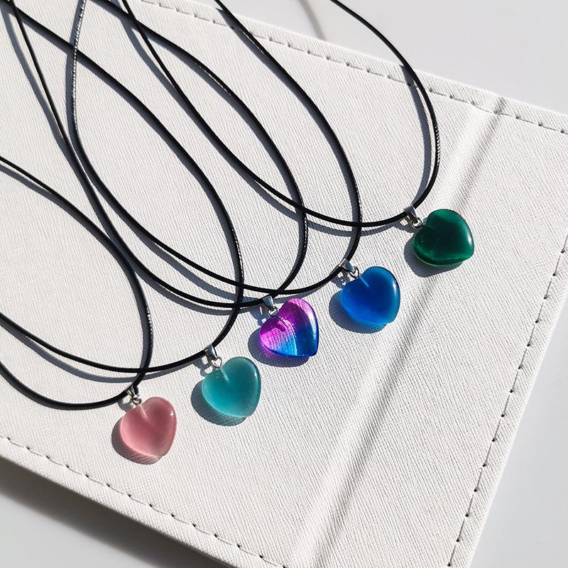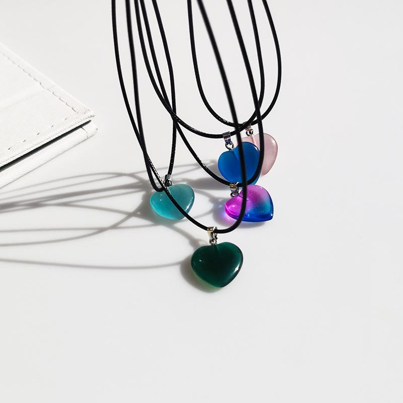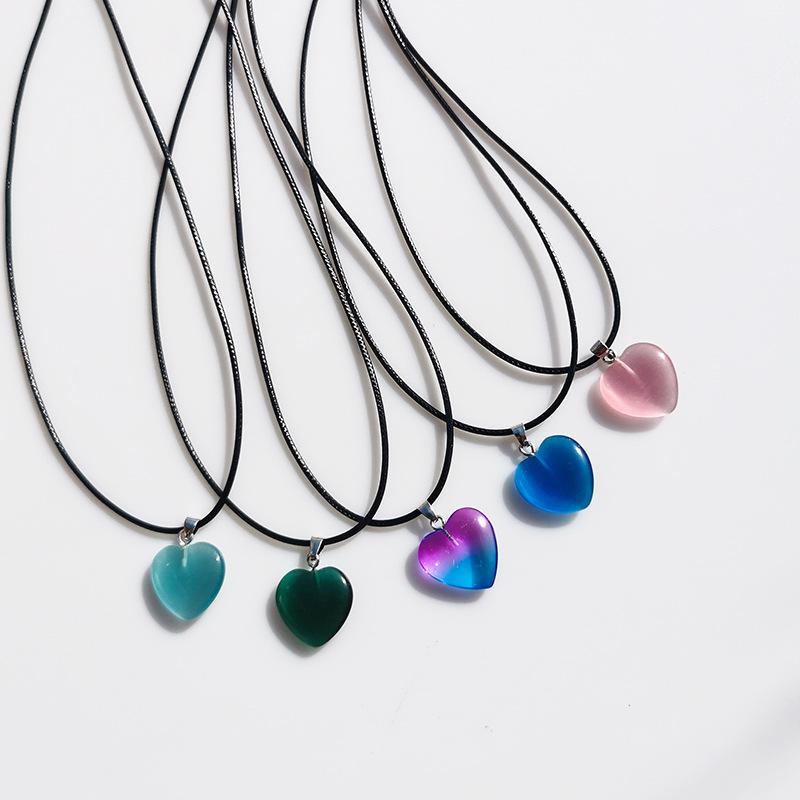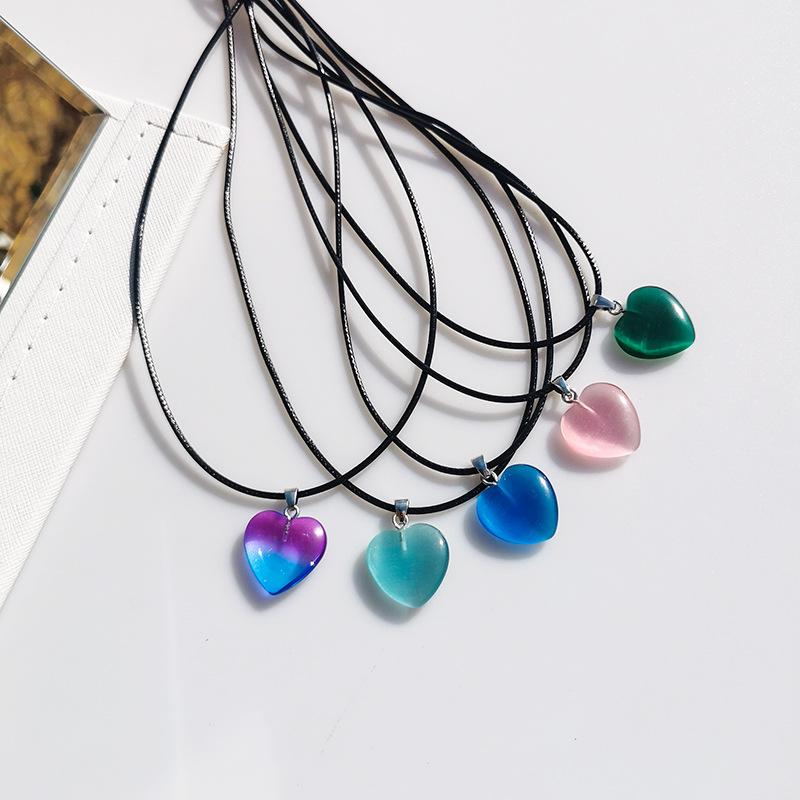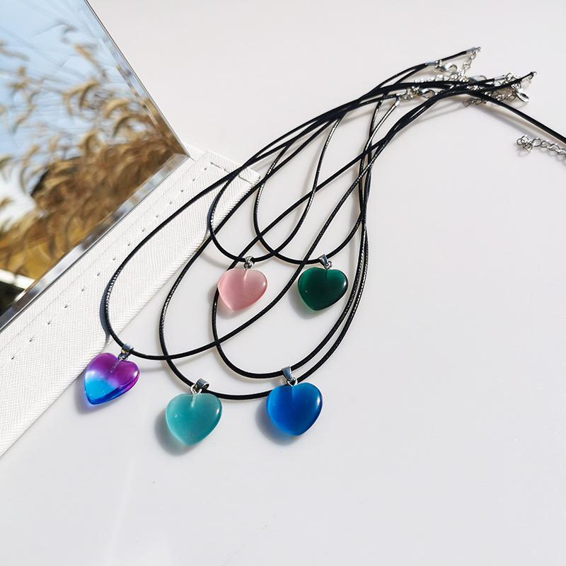 Collar de cuerda negra con corazón colorido y diseño de nicho, elegante, dulce, francés, versátil, de alta gama, accesorios, nueva cadena de clavícula.