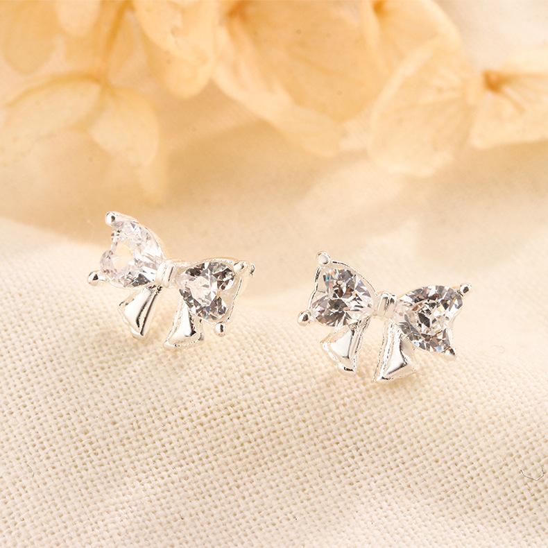 Compra Pendientes de lazo de estilo coreano de plata S925 para mujer, nuevos y modernos, con diseño de nicho, elegantes, ligeros y lujosos, con diamantes. al por mayor en Joom.pro