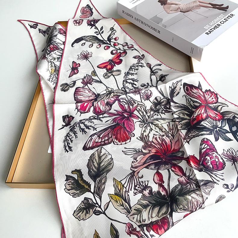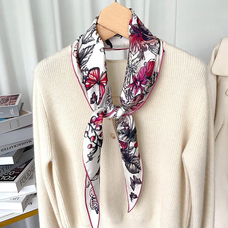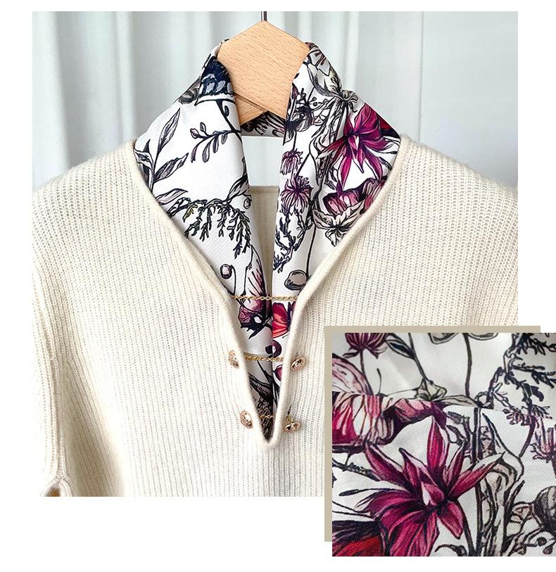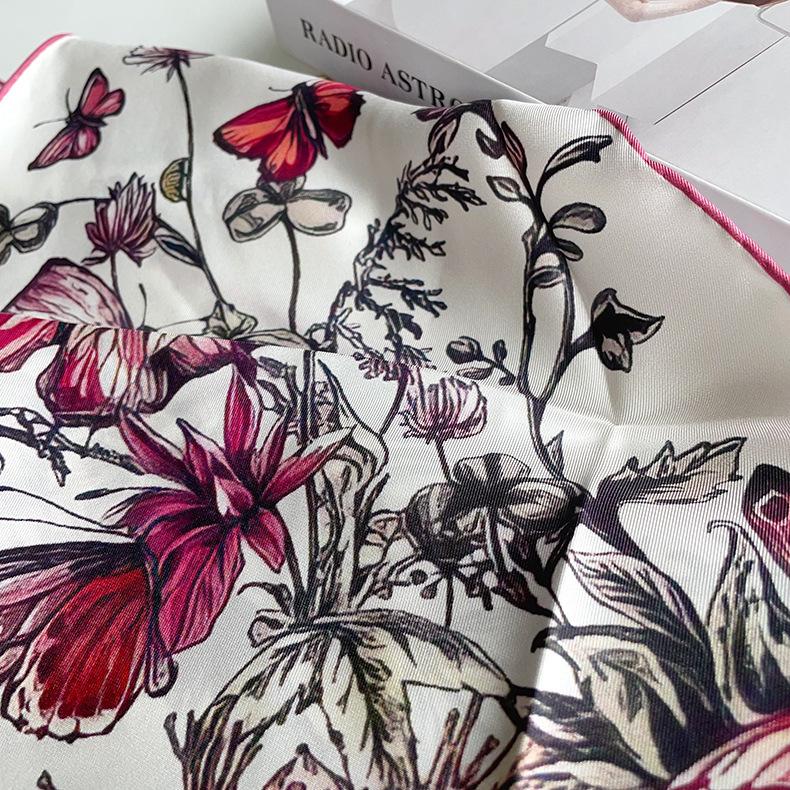 Nuevo Llegada Lujo Ligero Estilo Famoso Toalla de Seda en Forma de Diamante Oblicuo con Elegante Rizo Artístico a Mano Bufanda de Seda de Morera para Mujer