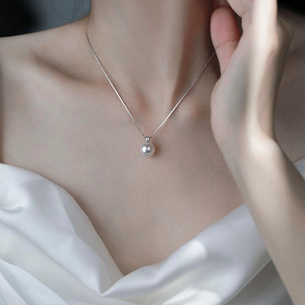 Collar de perlas para mujer, diseño pequeño de verano, cadena de clavícula, de alta gama, ligero, de lujo, sencillo, atmosférico, retro, versátil, de moda.