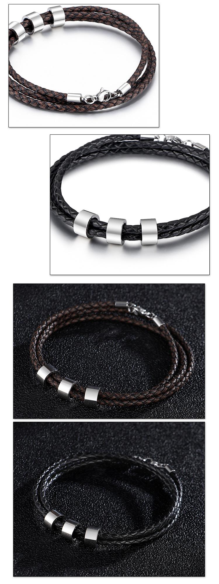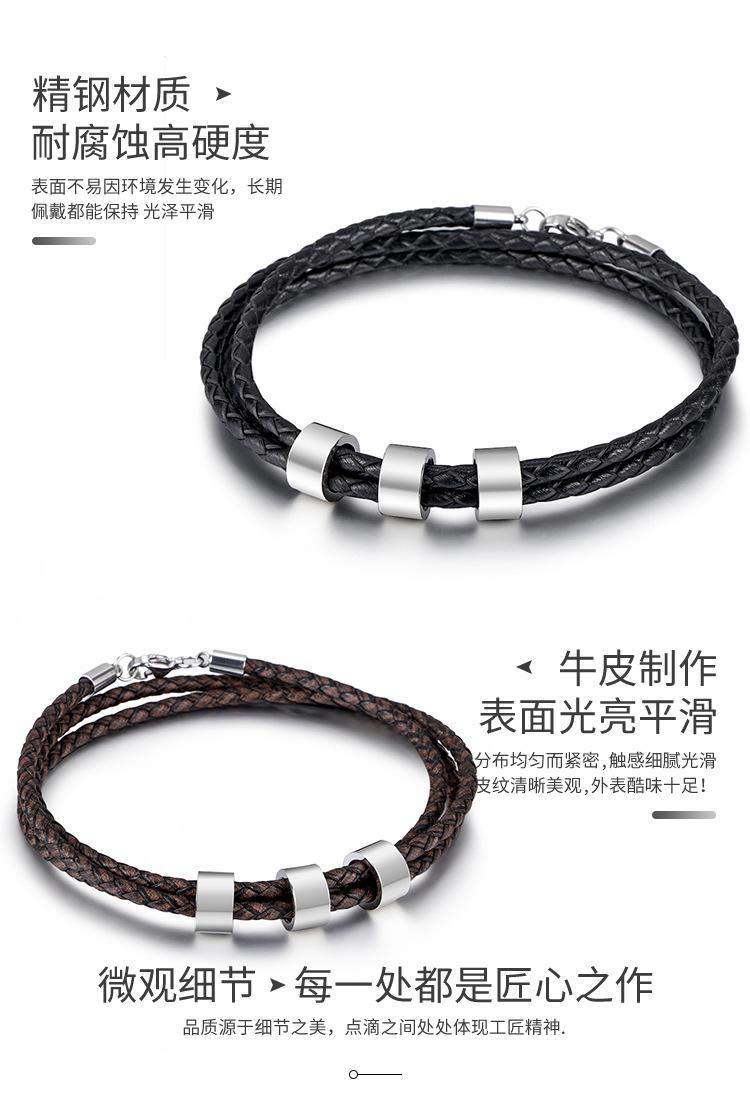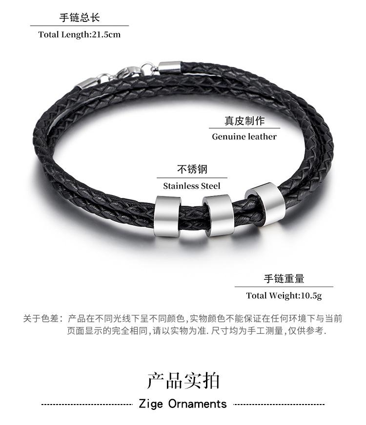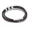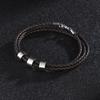 Pulsera de cuero tejido multicapa de acero inoxidable para hombre europeo y americano, pulsera de cuentas de acero de titanio para hombre, pulsera con letras DIY