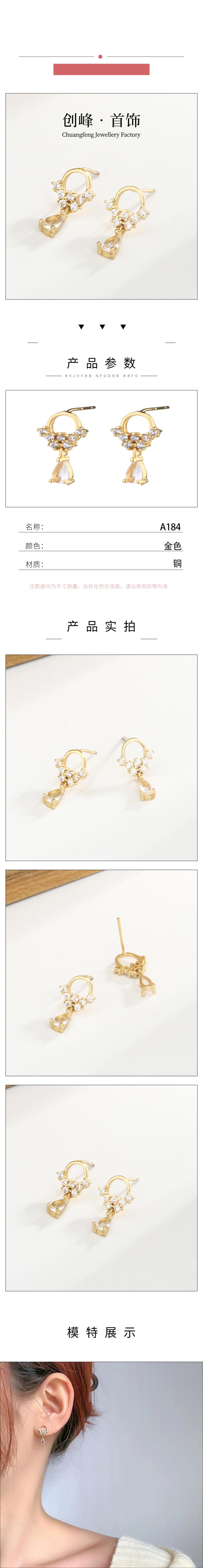 Compra Pendientes de plata S925 con forma de flor de agua pequeña, estilo francés, ligeros, lujosos, con diseño de nicho, brillantes, redondos y con borlas de gota de agua. al por mayor en Joom.pro