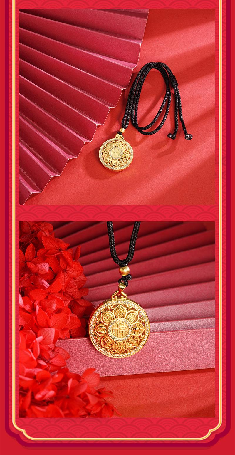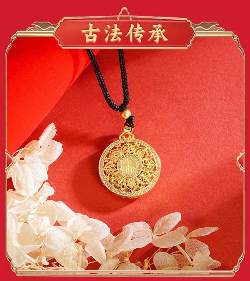 Colgante de estilo nacional retro con ocho tesoros de oro y arena de la antigua herencia, joyería chapada en oro y cobre, accesorios Yiwu al por mayor
