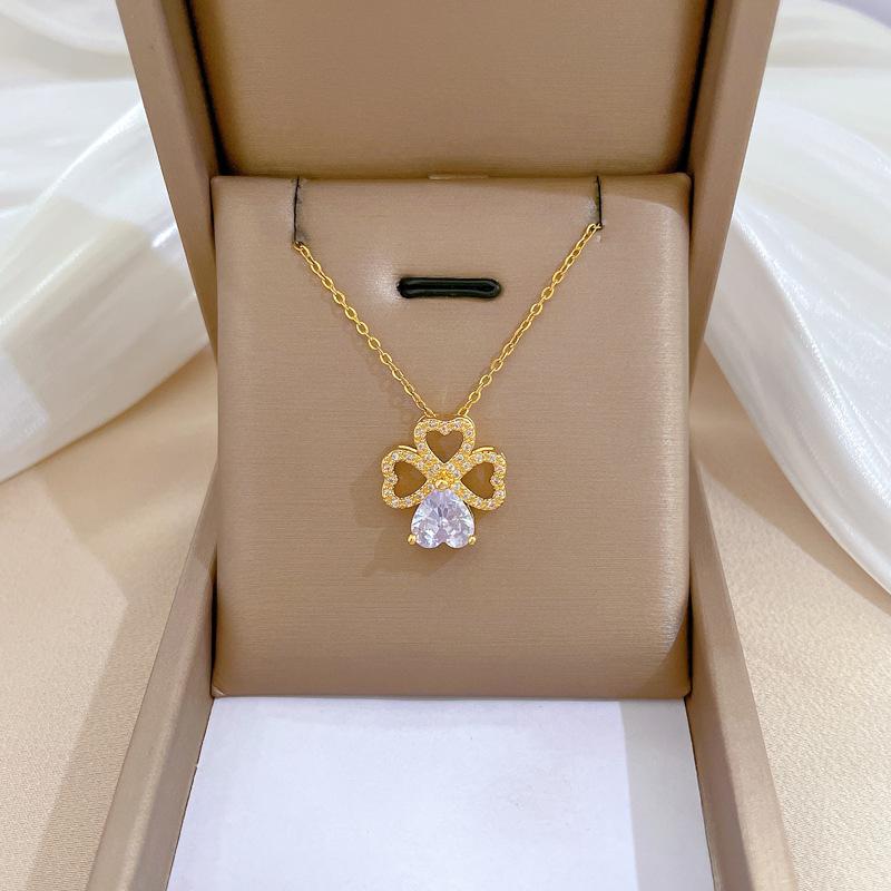 [Acero titanio] Elegante y elegante collar de diamantes con diseño de flor de amor, cadena de clavícula que combina con todo, ideal para celebridades de Internet. Cadena de acero titanio.