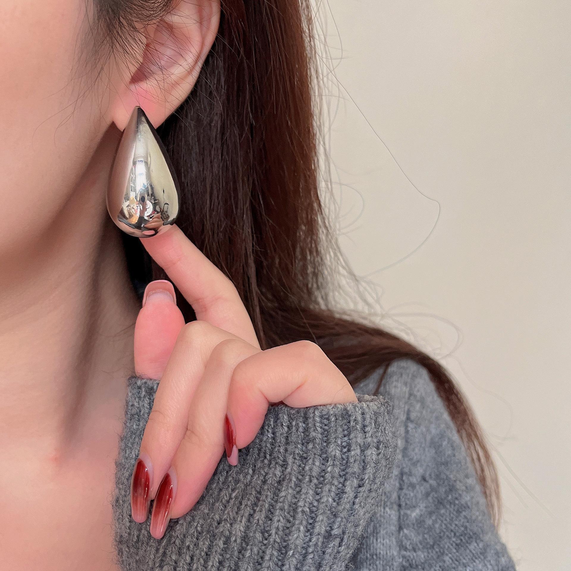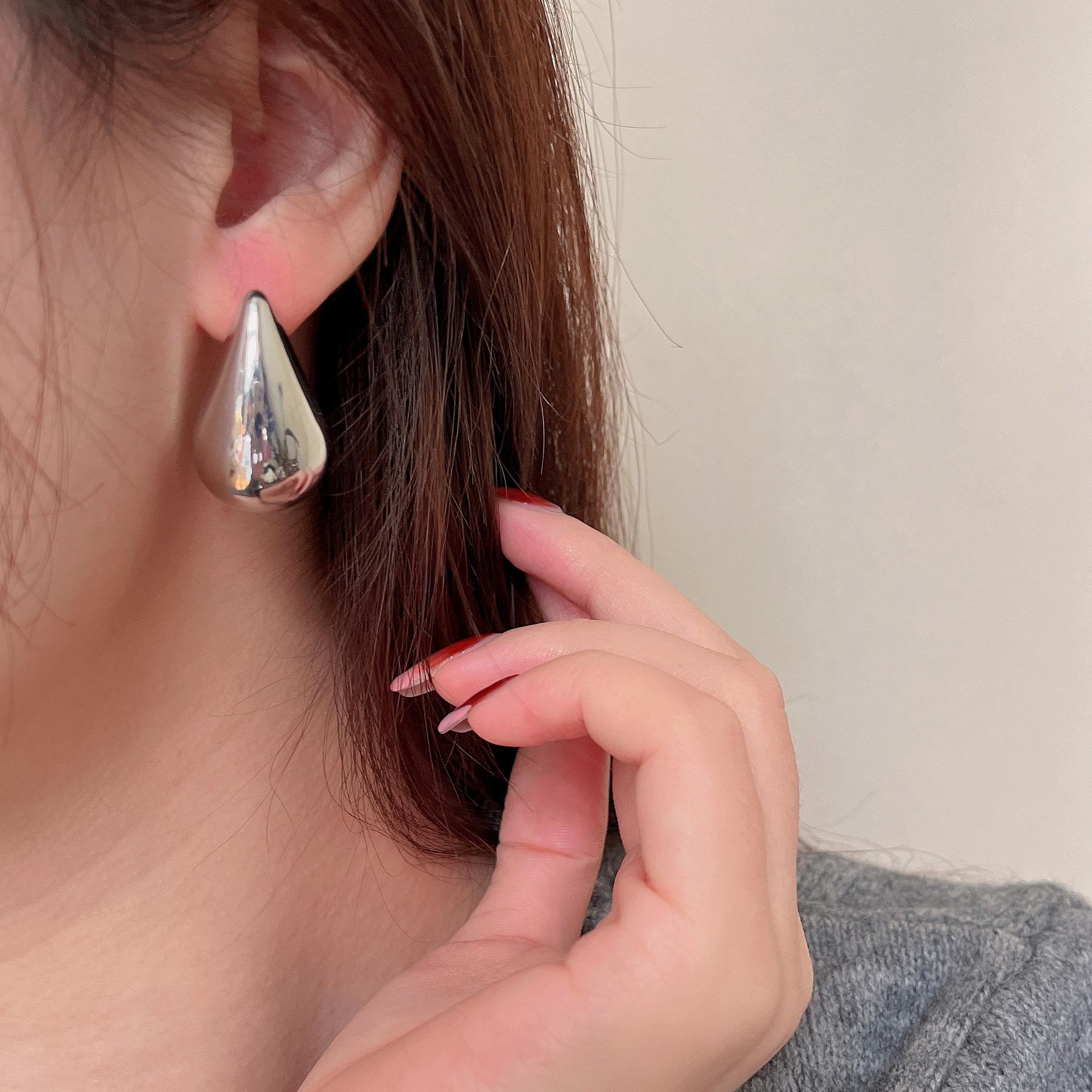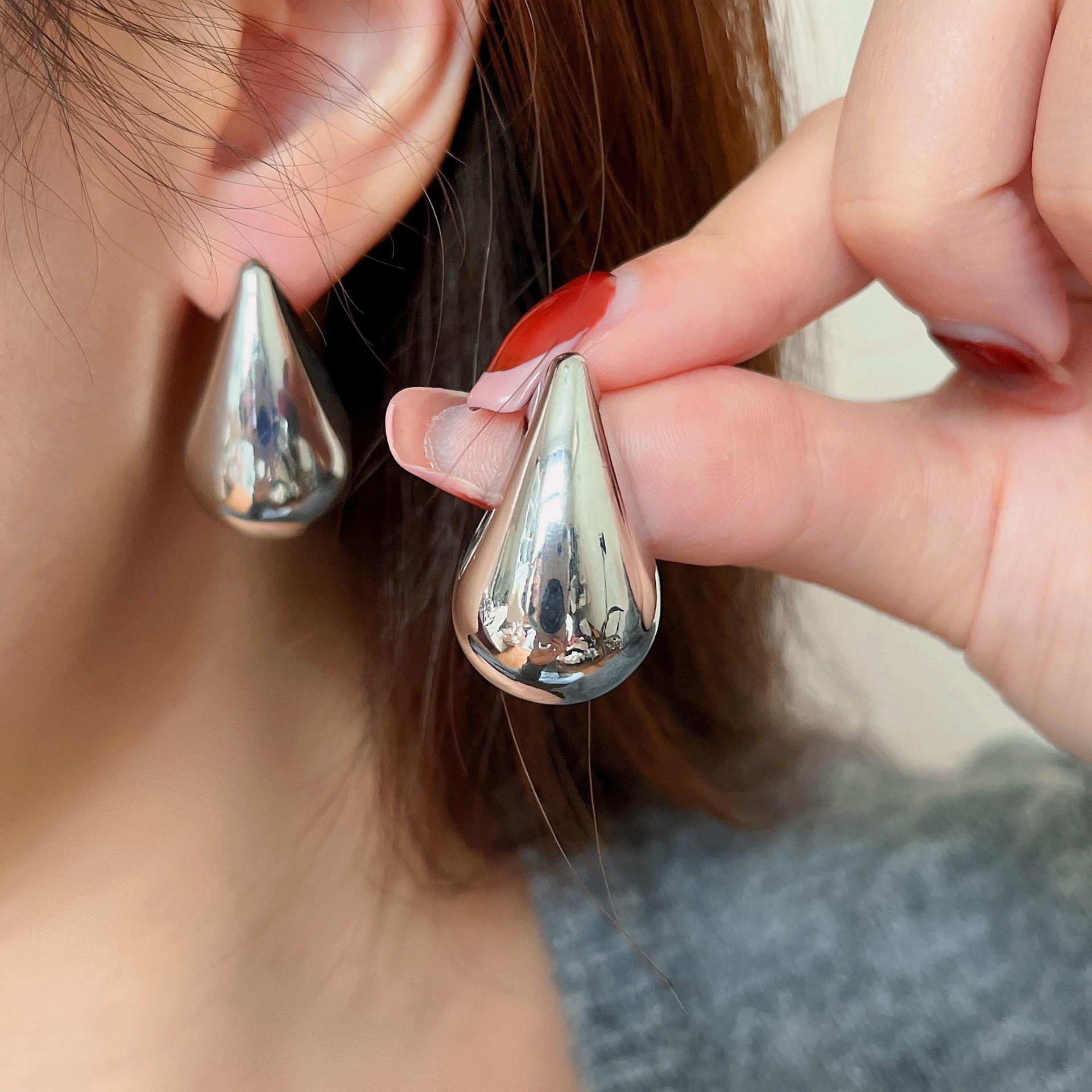 Pendientes de plata con diseño de gota de metal liso, estilo europeo y americano, estilo frío, temperamento de nicho, pendientes de alta gama para mujer