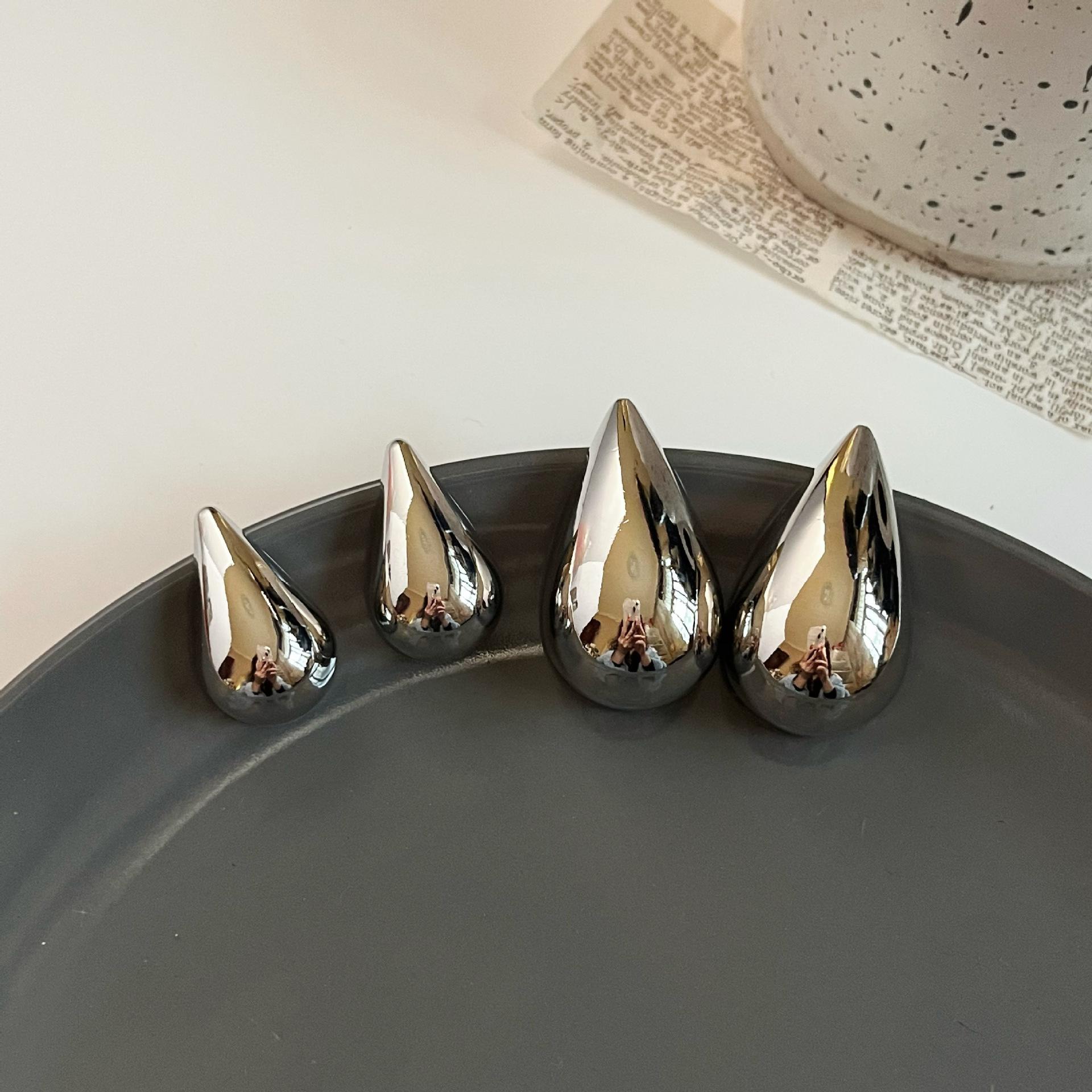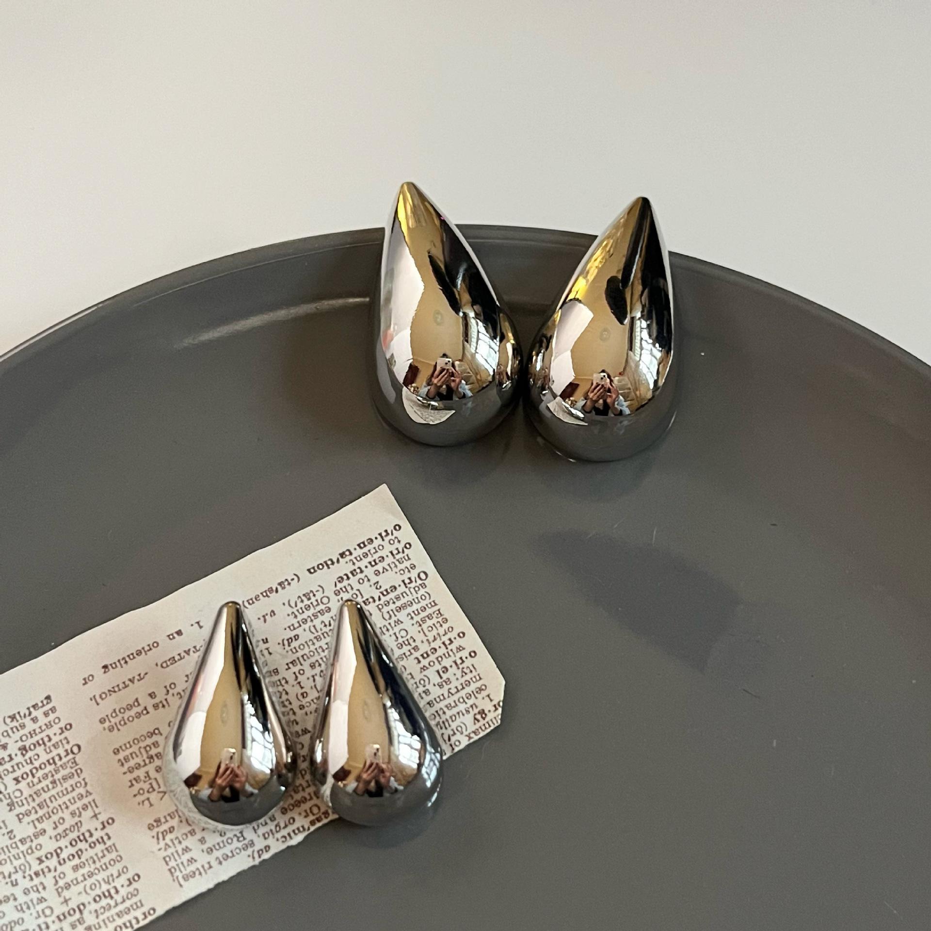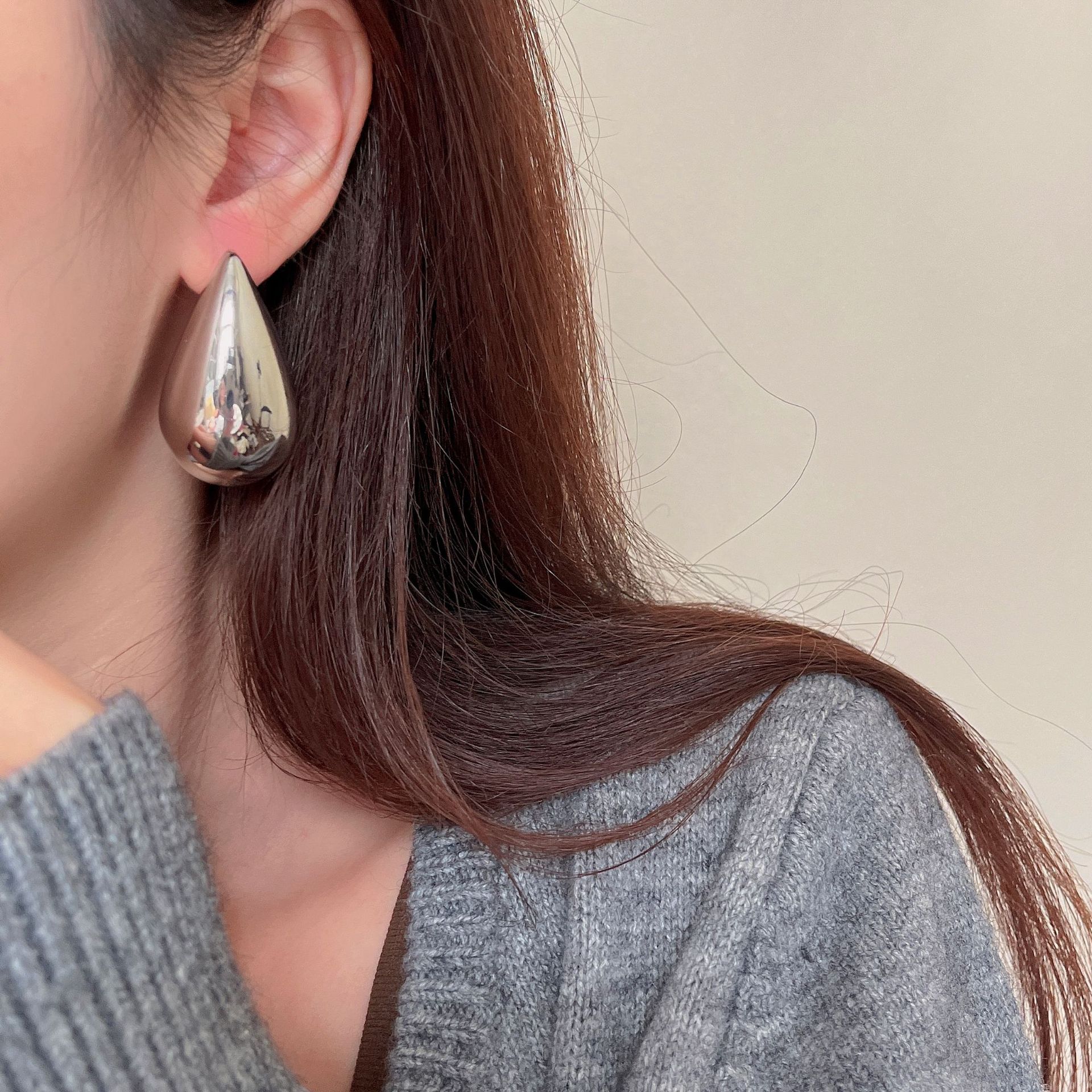 Pendientes de plata con diseño de gota de metal liso, estilo europeo y americano, estilo frío, temperamento de nicho, pendientes de alta gama para mujer