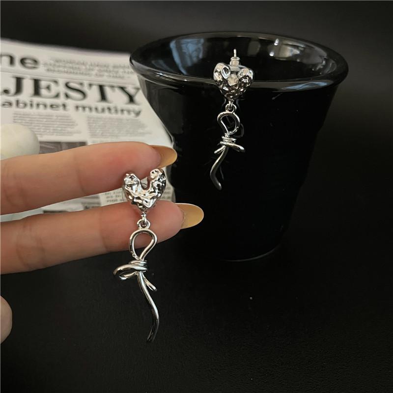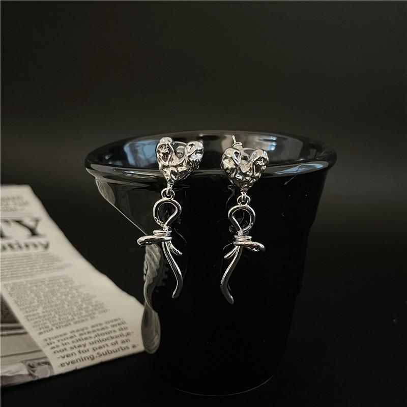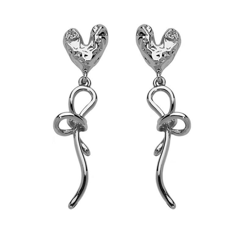 Pendientes de lazo plisado de metal líquido con un bonito diseño de nicho, pendientes de personalidad modernos, pendientes de circonita flexibles.
