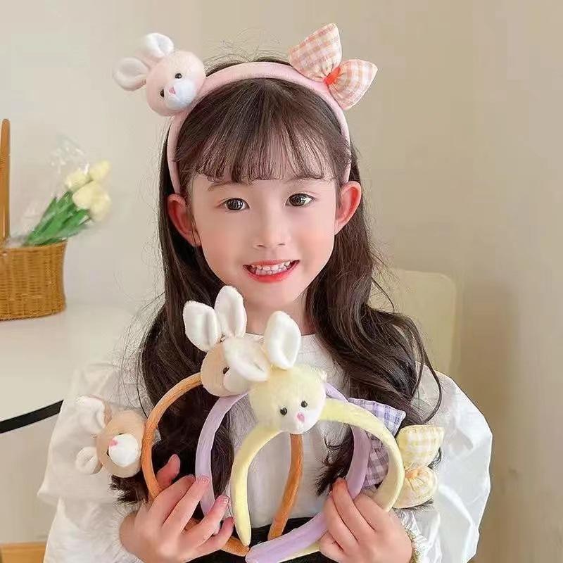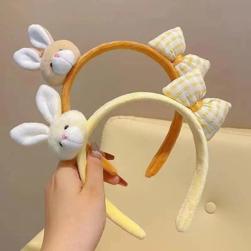 Banda para el cabello para niños coreanos Banda para el cabello para lavar la cara de felpa Banda para el cabello Celebridad de Internet Nuevo Conejo Estampado para el cabello Tocado Diadema para niña