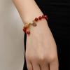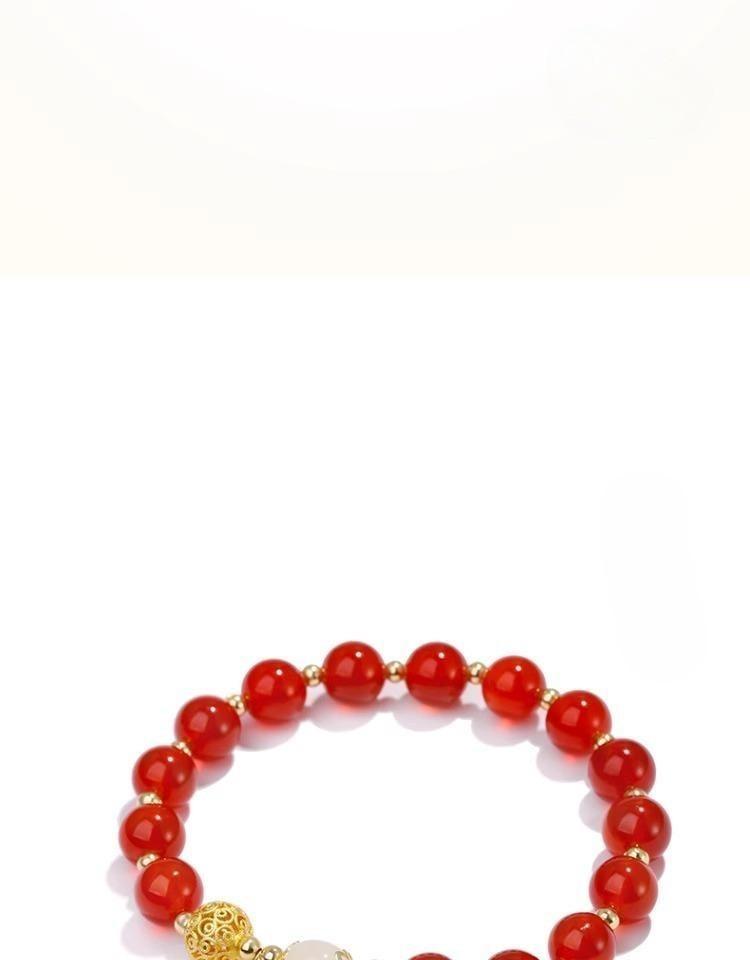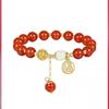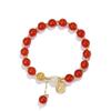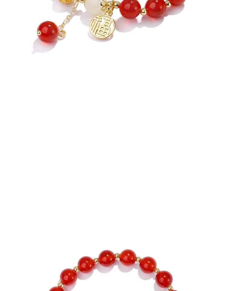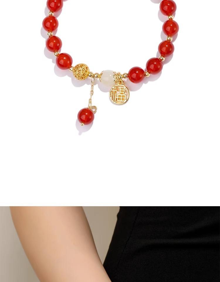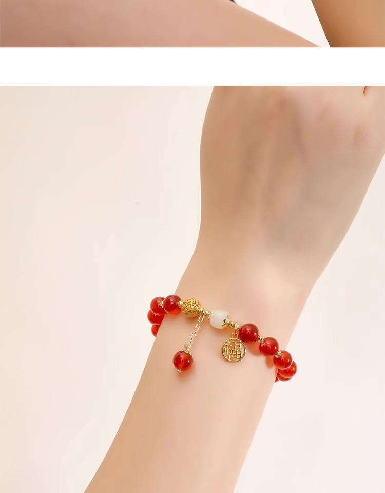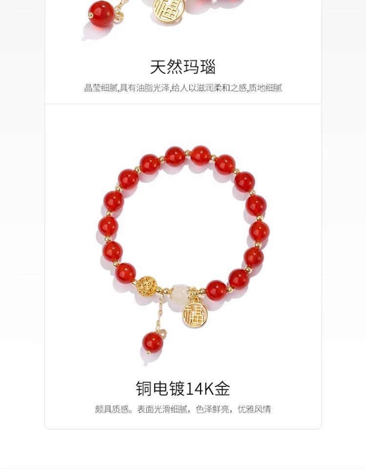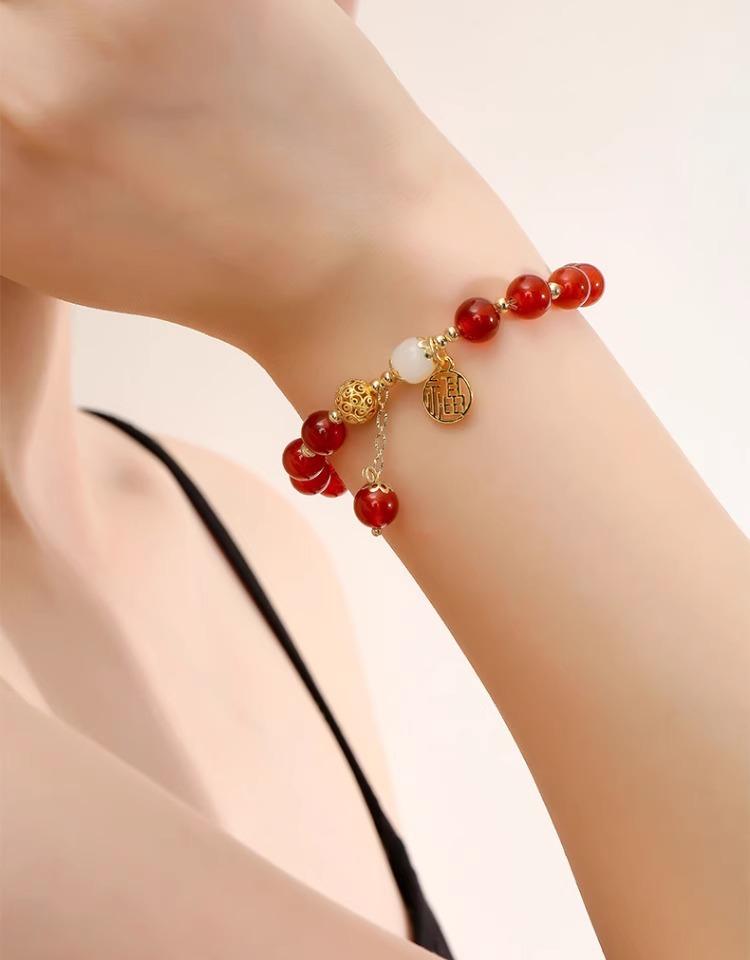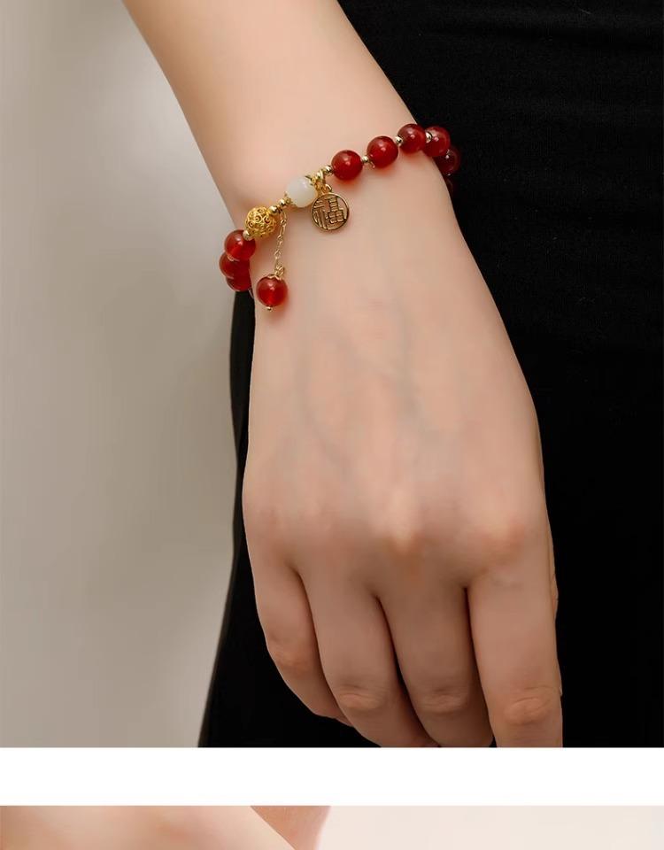 Pulsera de Cuentas de Ágata Roja Natural Tipo Cubeta para Niña con Incrustaciones Marca Fu Chapada en Cobre Moda Versátil Joyería para Novia