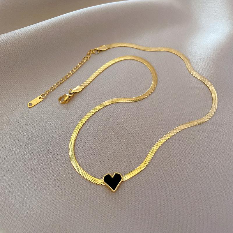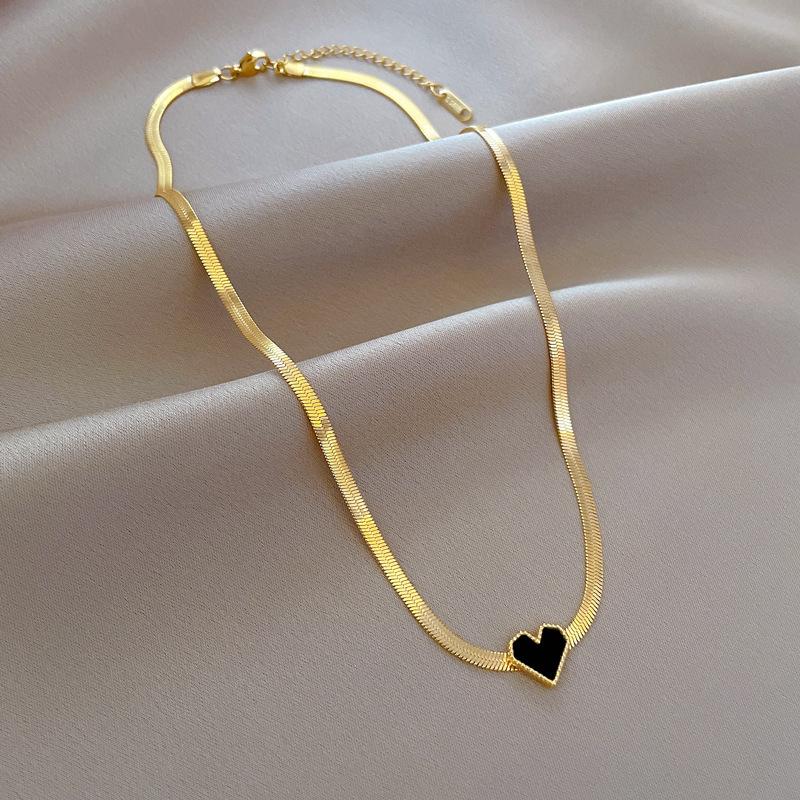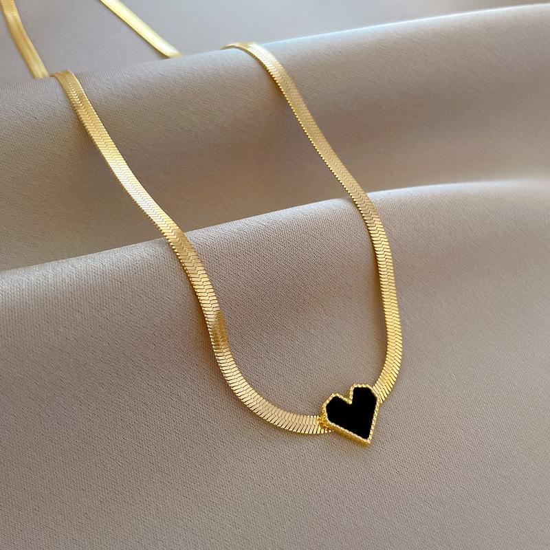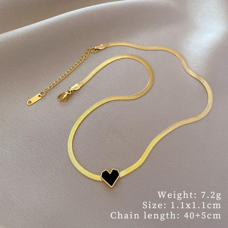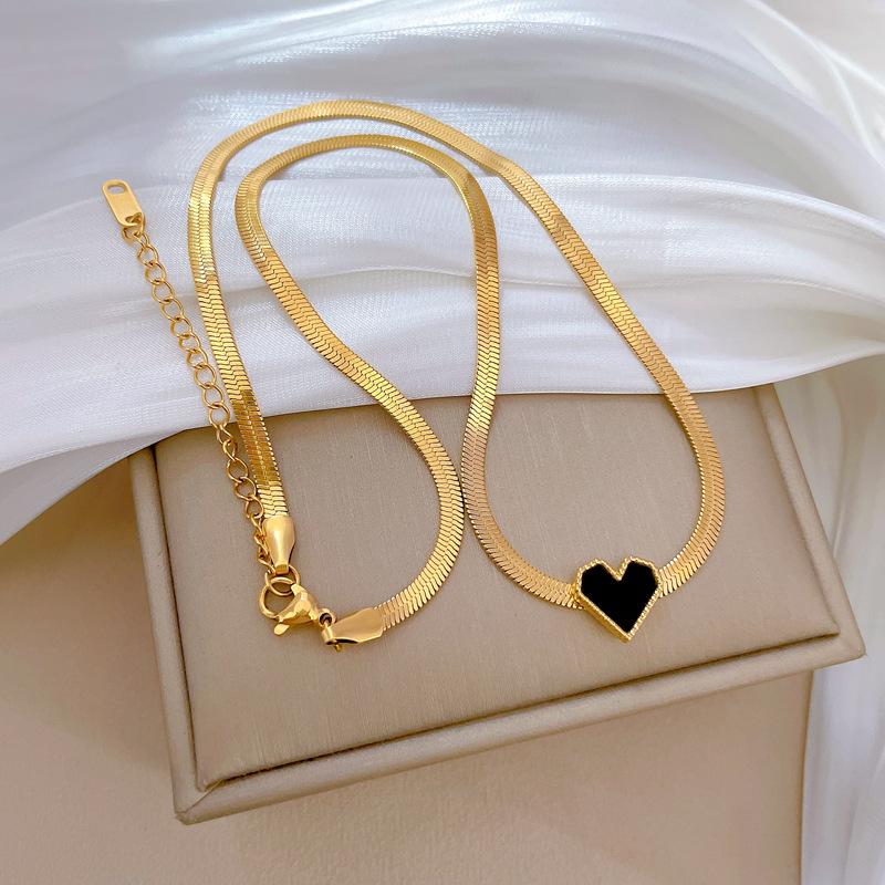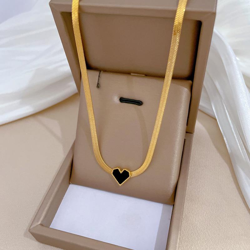 [Acero de titanio de cuerpo completo] Cadena de amor de doble cara, collar de oro real para mujer, cadena de clavícula roja con red interior, accesorios