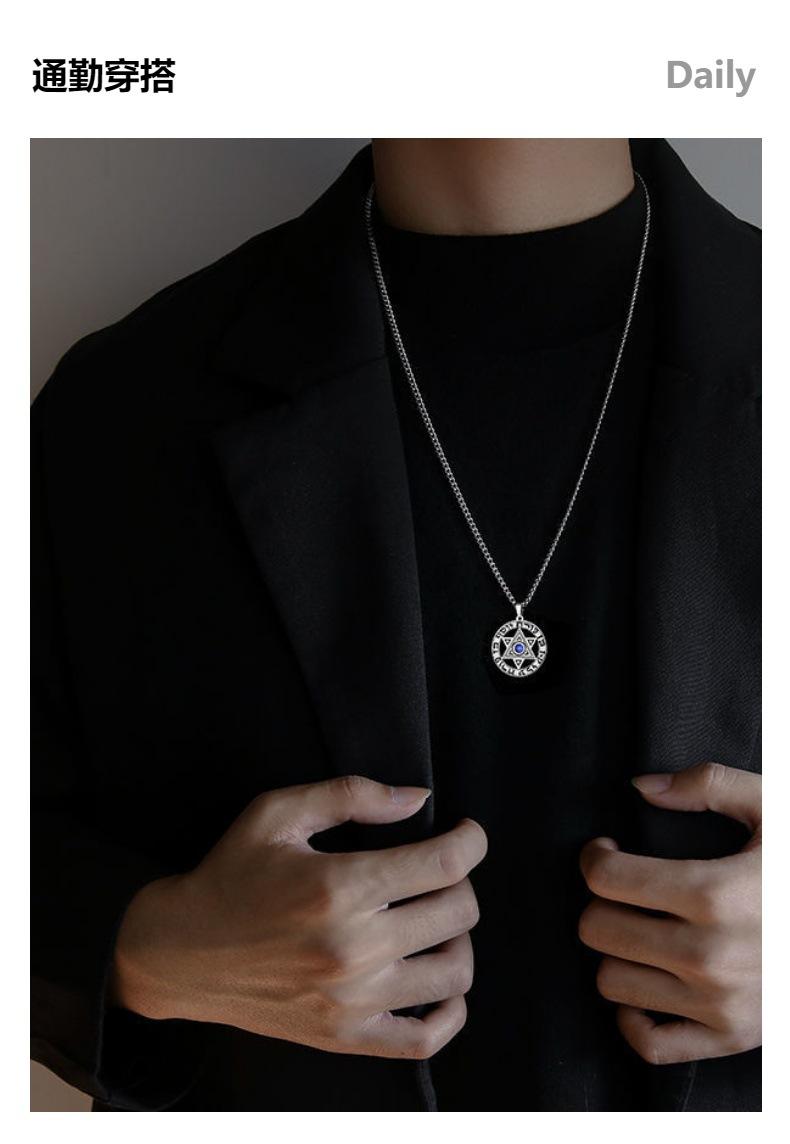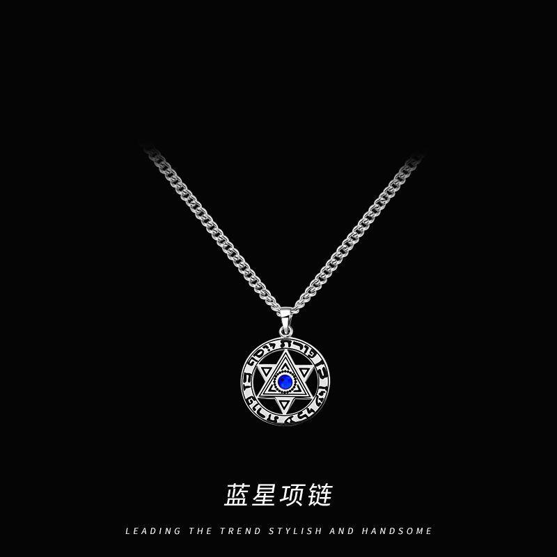 Collar con colgante de estrella de seis puntas, largo, combinable, sencillo, de red roja, para hombre, con personalidad, adornos de acero de titanio que no se decoloran.