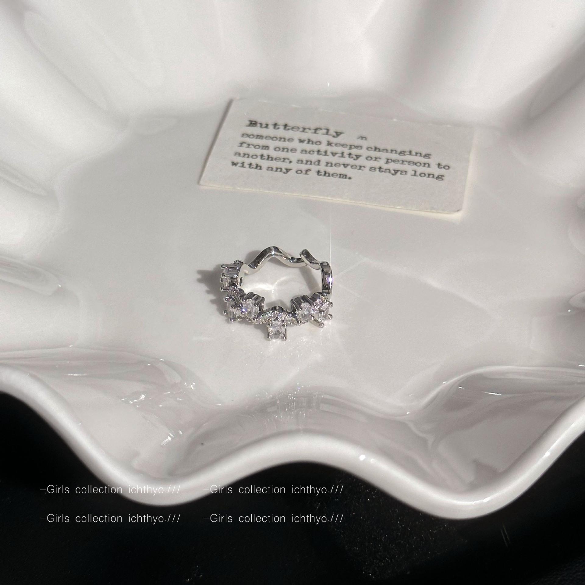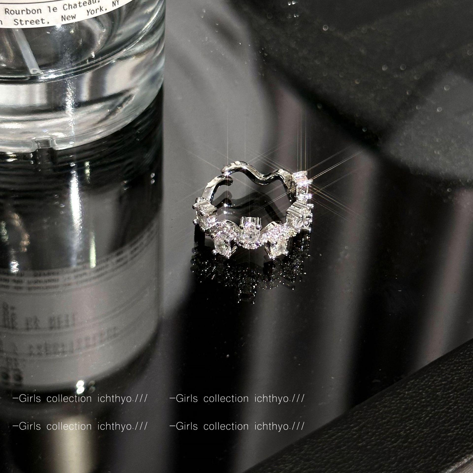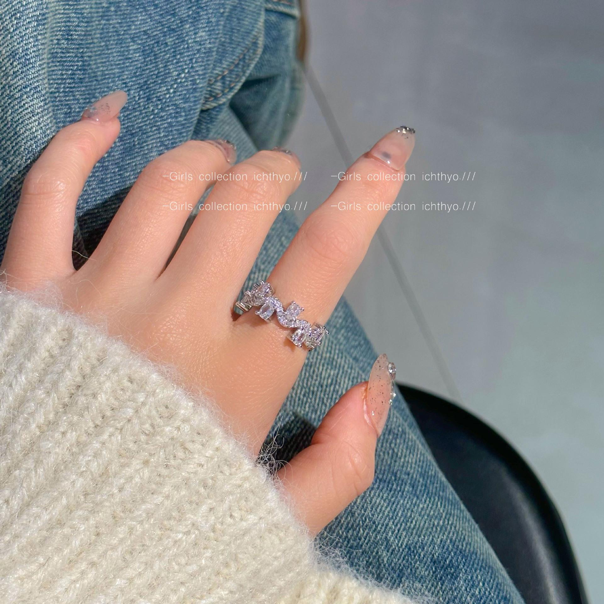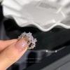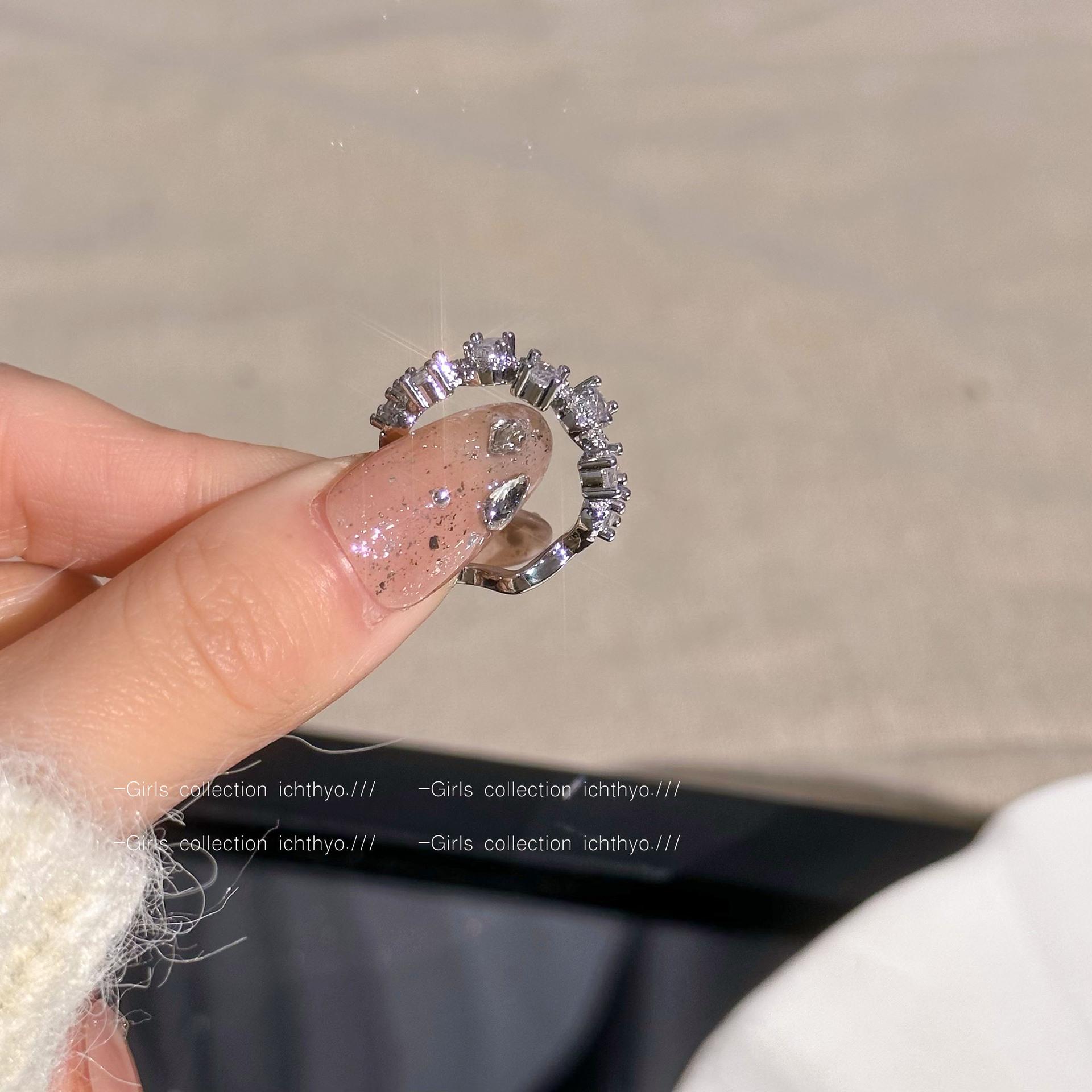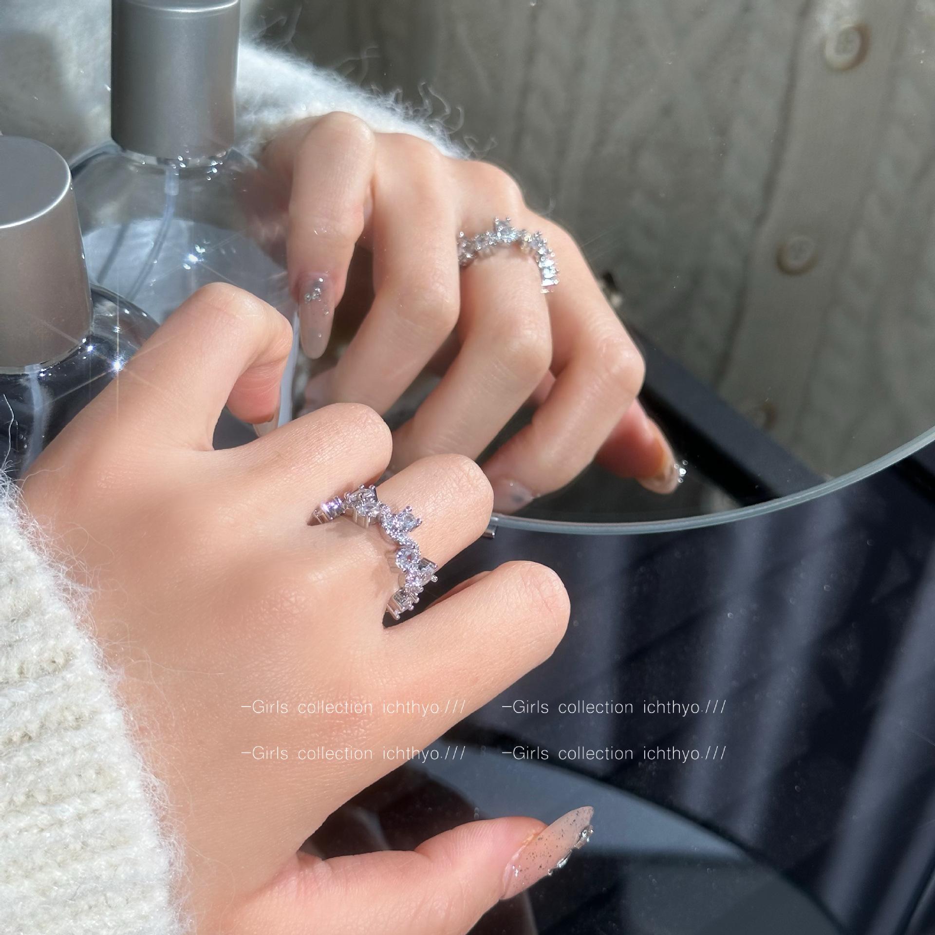 Anillo de circonita con forma de cruz de onda de diamante completo, nicho de alta calidad, anillo abierto que combina con todo, pulsera apilada de lujo con temperamento ligero para mujer