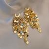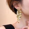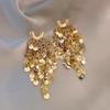 Gold U-Shaped Sequin Tassel Stud Earrings