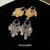 Gold U-Shaped Sequin Tassel Stud Earrings, silver U-Shaped Sequin Tassel Earrings