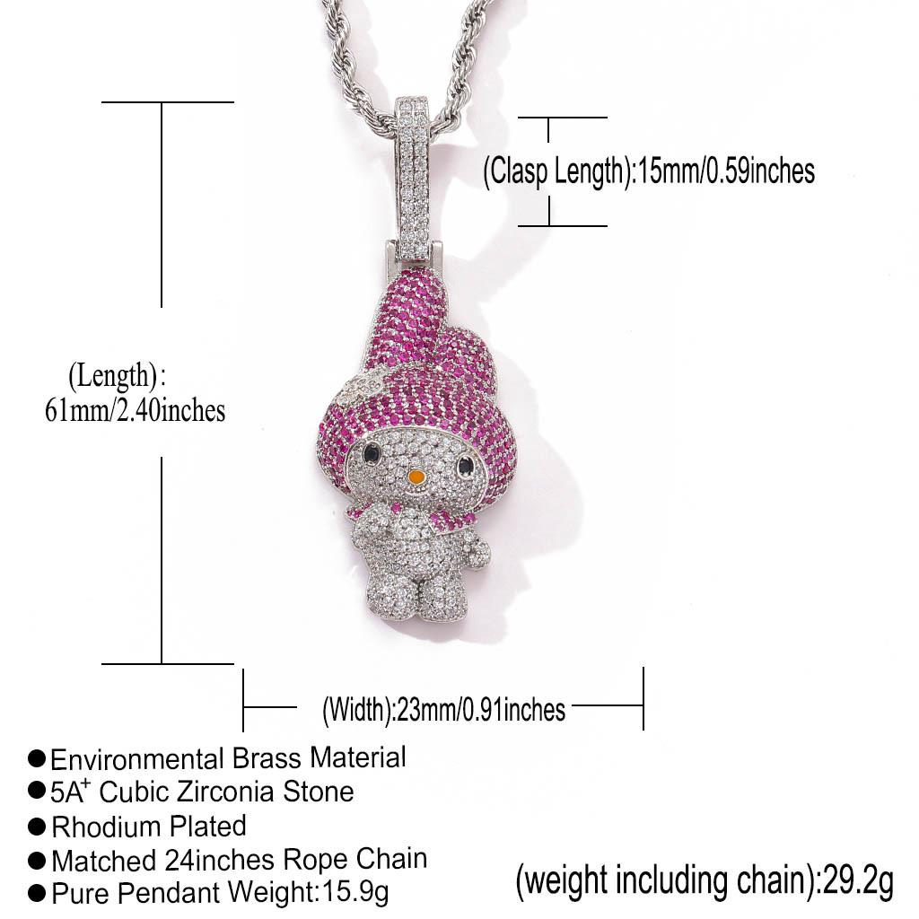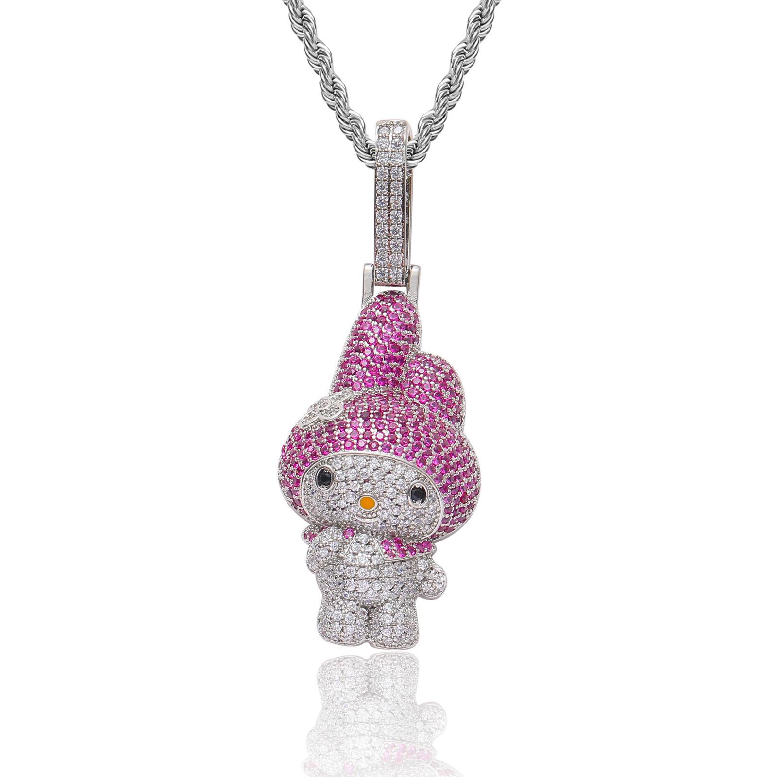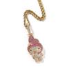Colgante de diamantes de moda con melodía de hip-hop, collar con personaje de anime adorable de dibujos animados, joyería para parejas con personalidad que combina con todo.