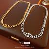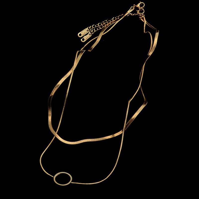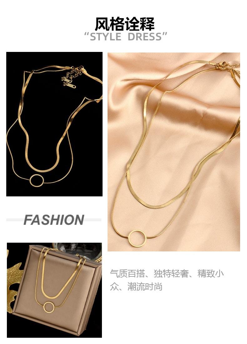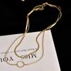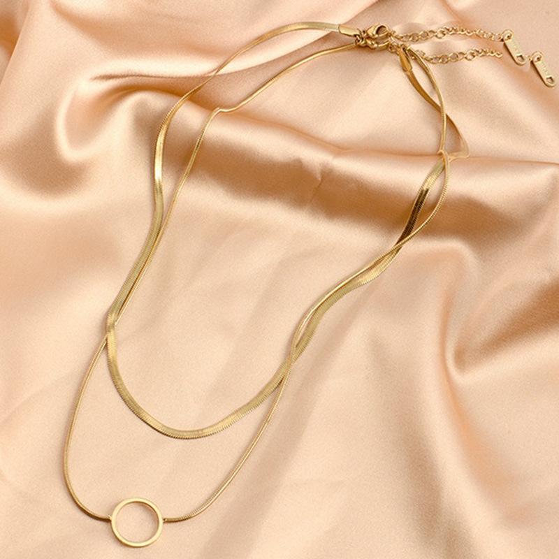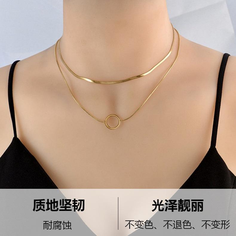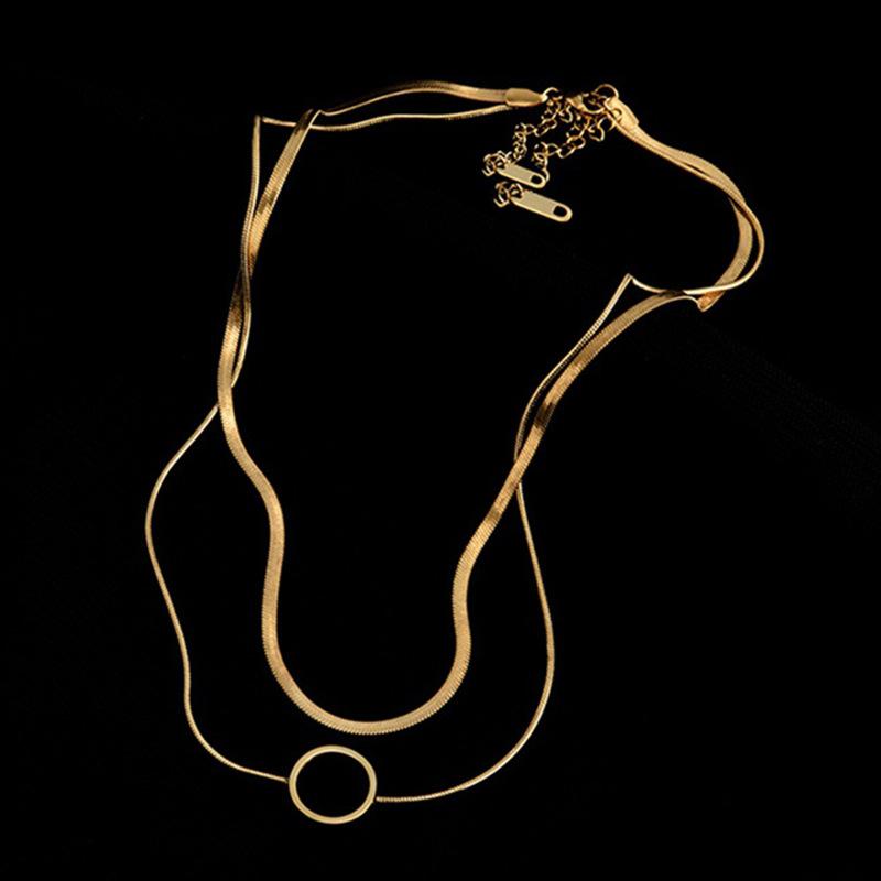 Collar de Moda Transfronteriza Europea y Americana Niche Creativo de Alta Gama Doble Capa Cadena de Serpiente Hueco Acero de Titanio Colgante de Círculo Accesorios