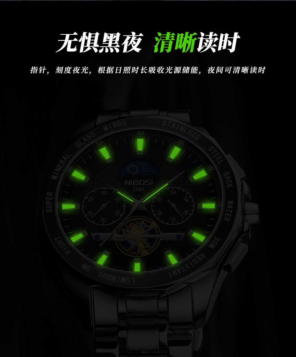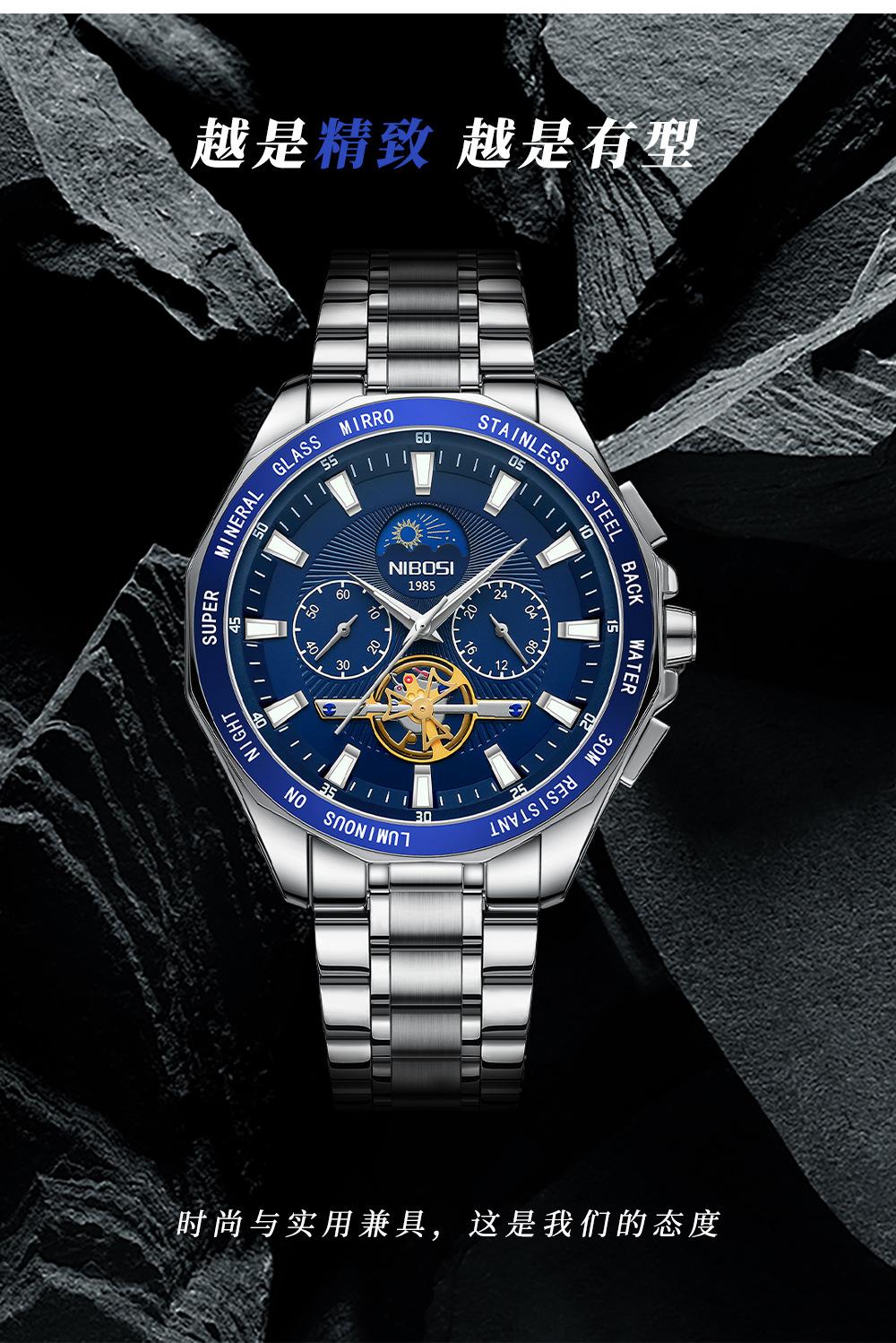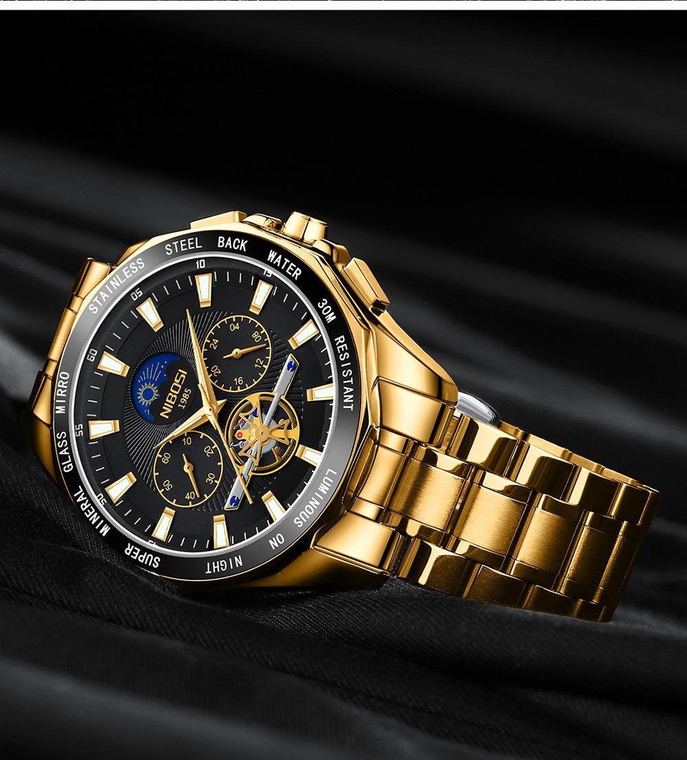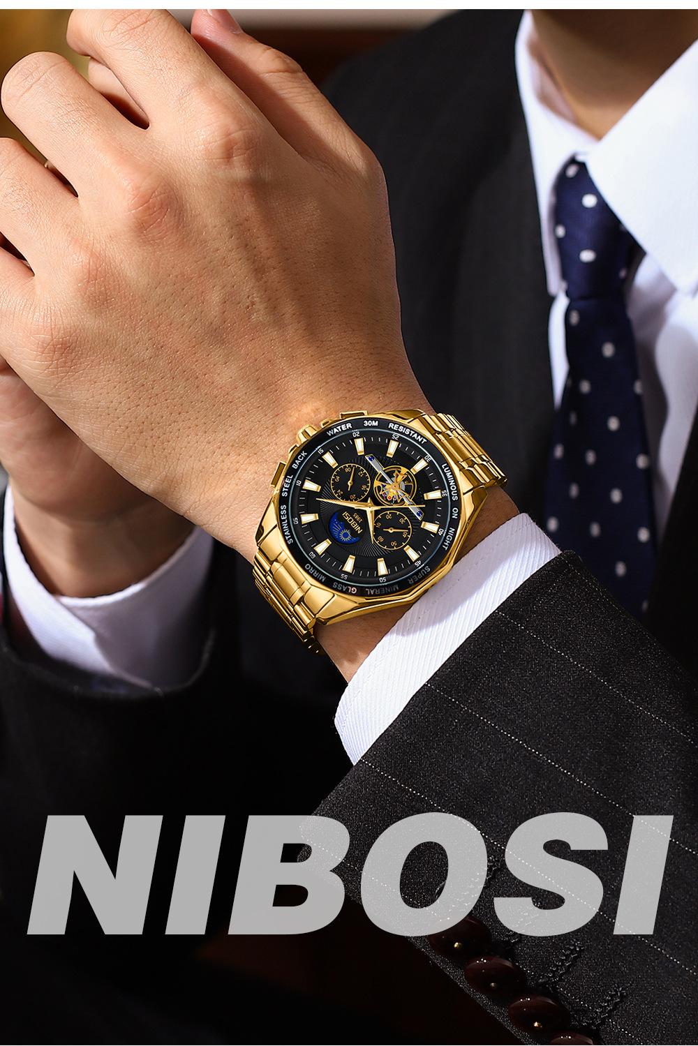 Nuevo reloj de cuarzo NIBOSI de moda tendencia Sol Luna Estrella reloj para hombre hueco no mecánico entrega de una pieza