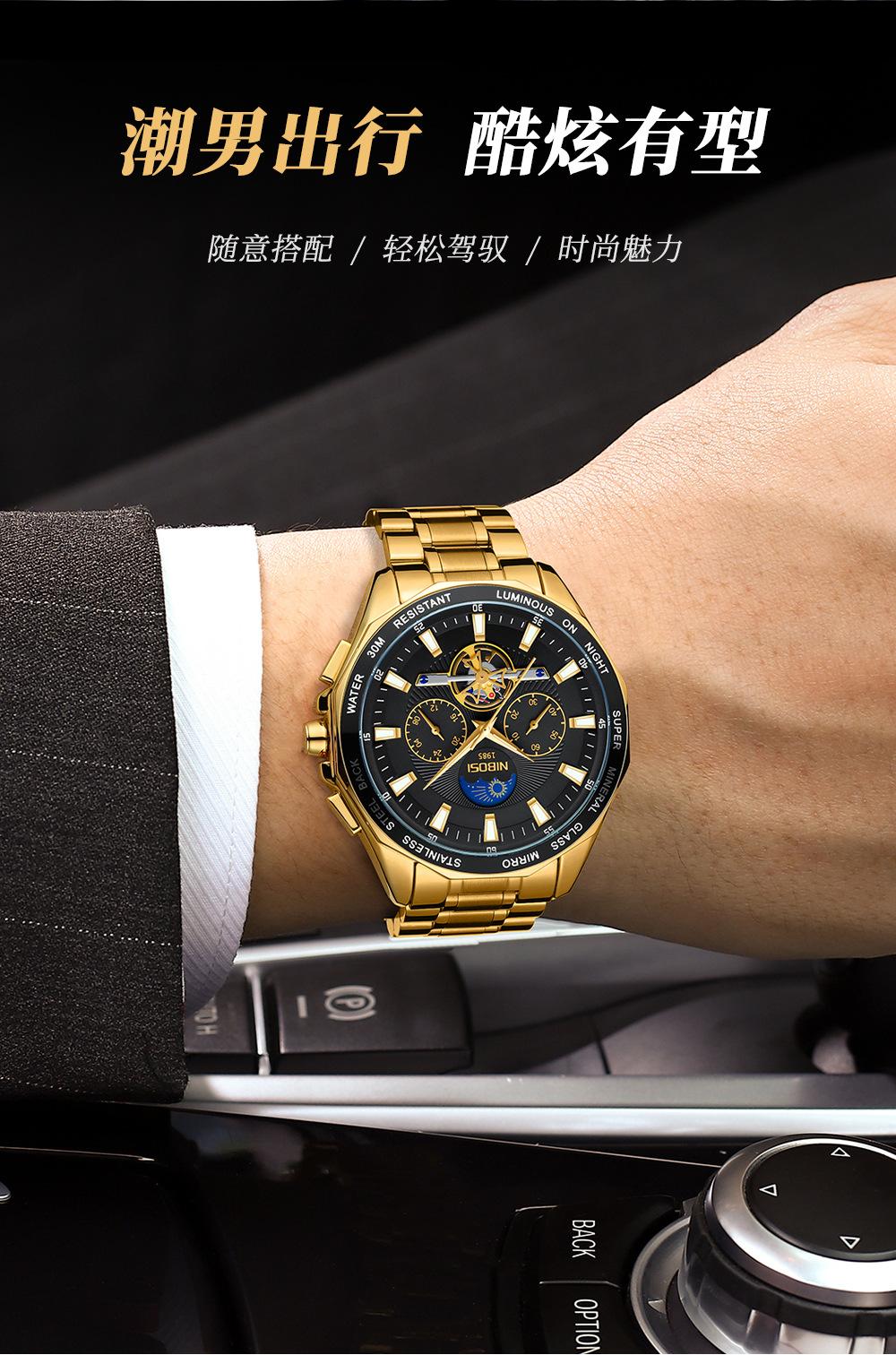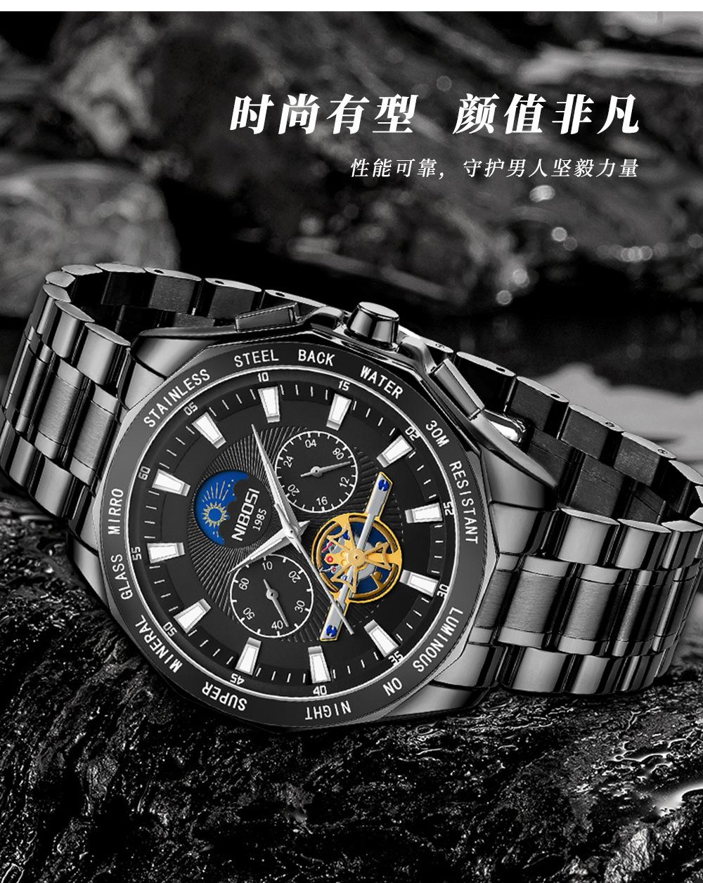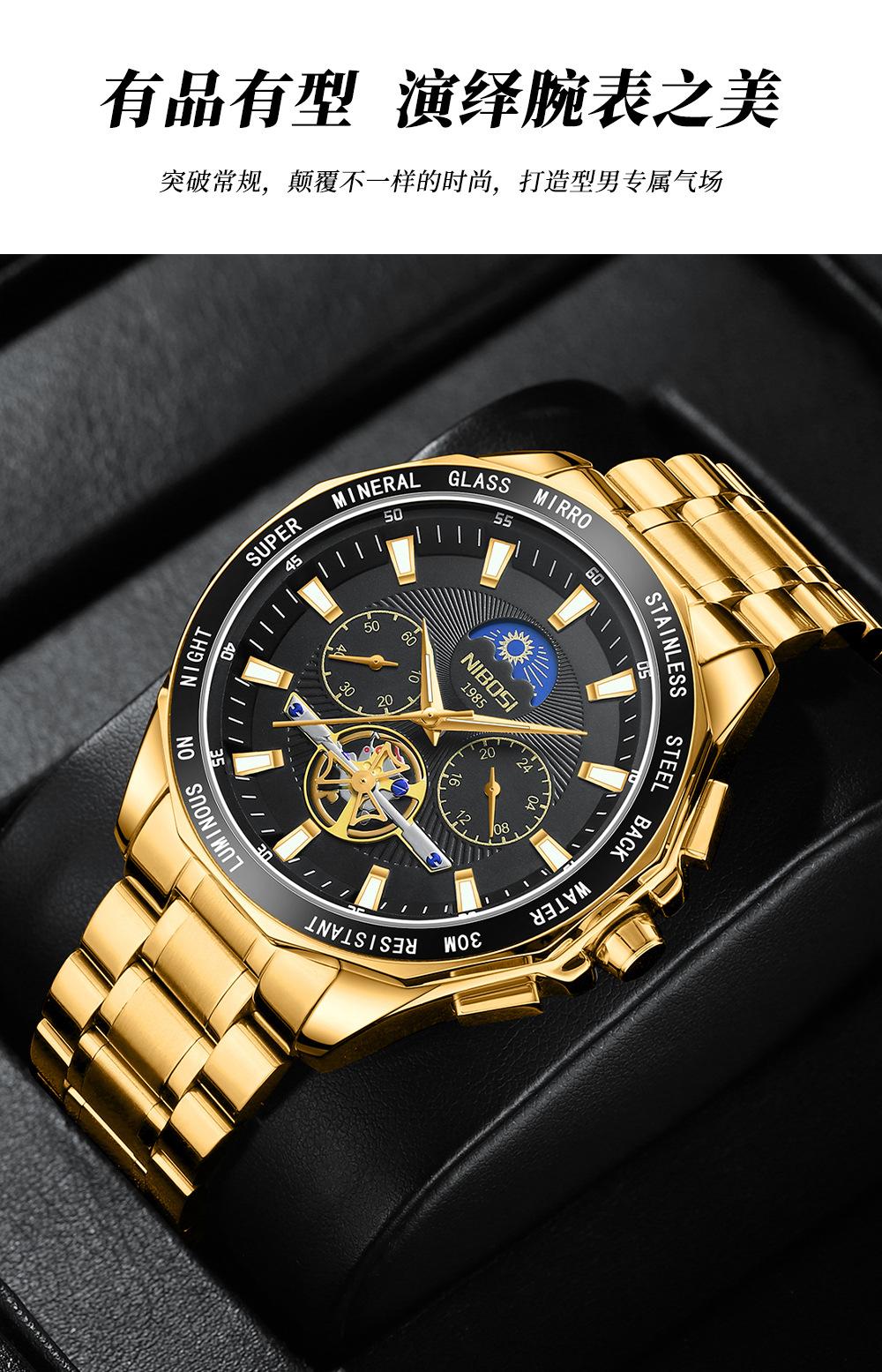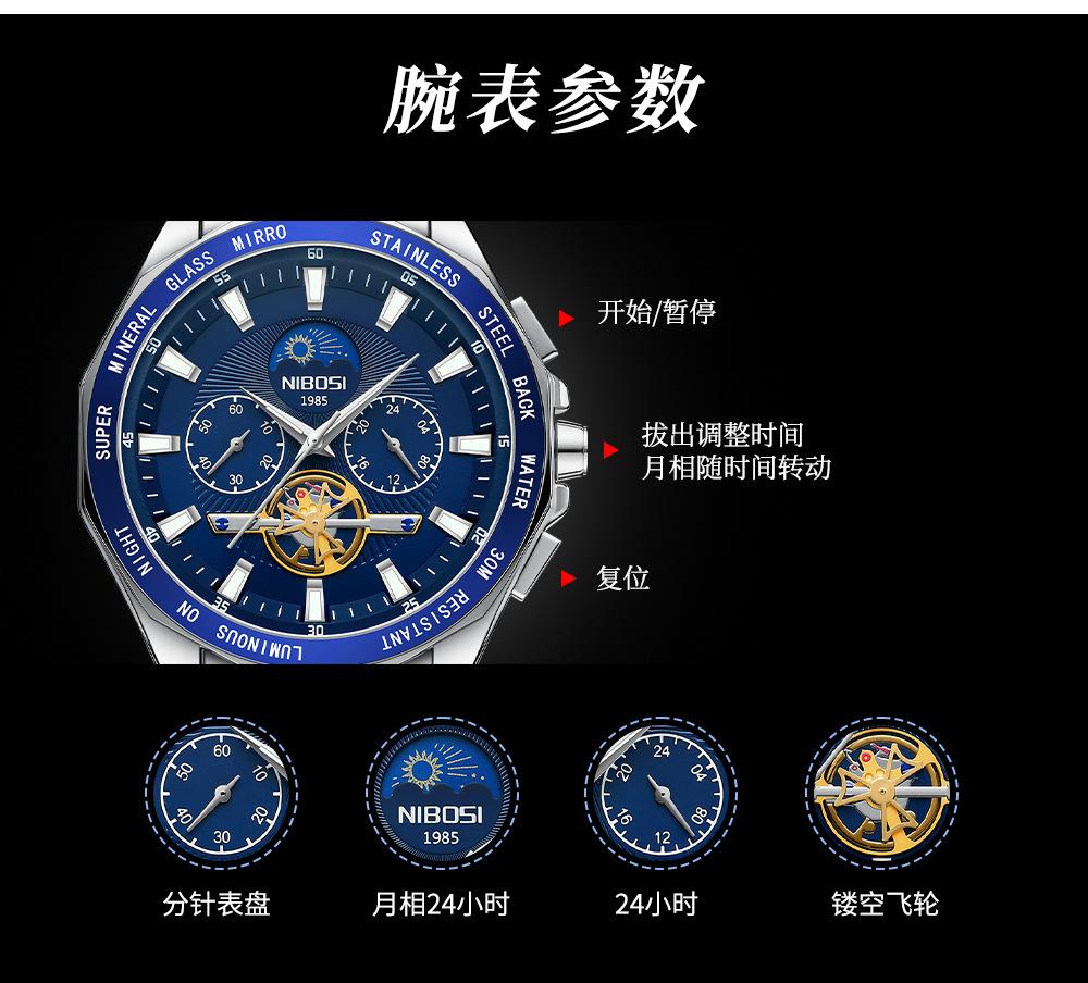 Nuevo reloj de cuarzo NIBOSI de moda tendencia Sol Luna Estrella reloj para hombre hueco no mecánico entrega de una pieza