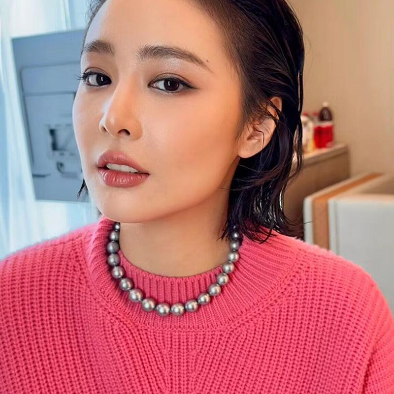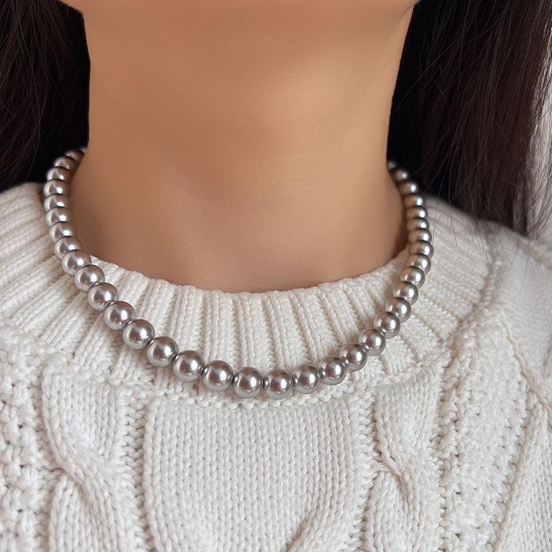 Collar de perlas grises plateadas de hoja alta N09 para mujer, collar de diseño de nicho ligero y lujoso, collar de cadena de clavícula con cuentas francesas