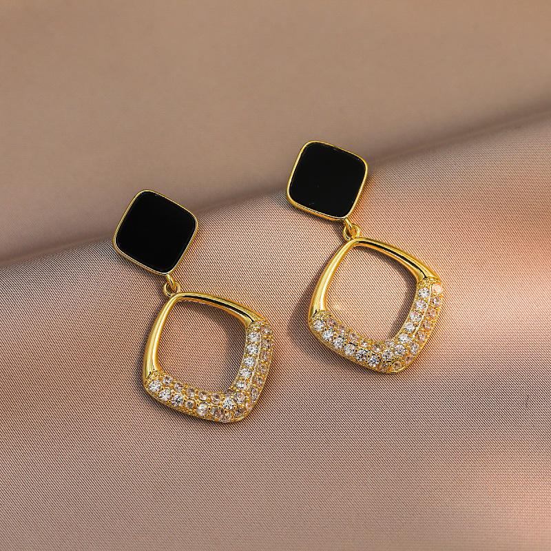Aretes para Mujer Estilo Japonés y Coreano Moda Aguja de Plata S925 Diseño Nicho Simple Aretes Geométricos de Diamantes Populares Elegantes