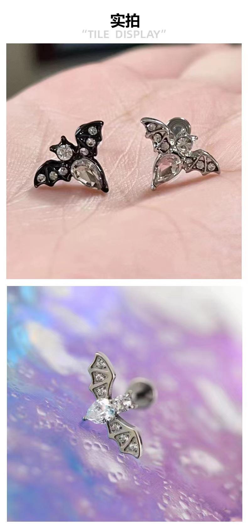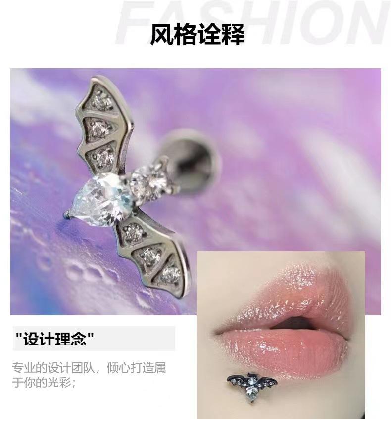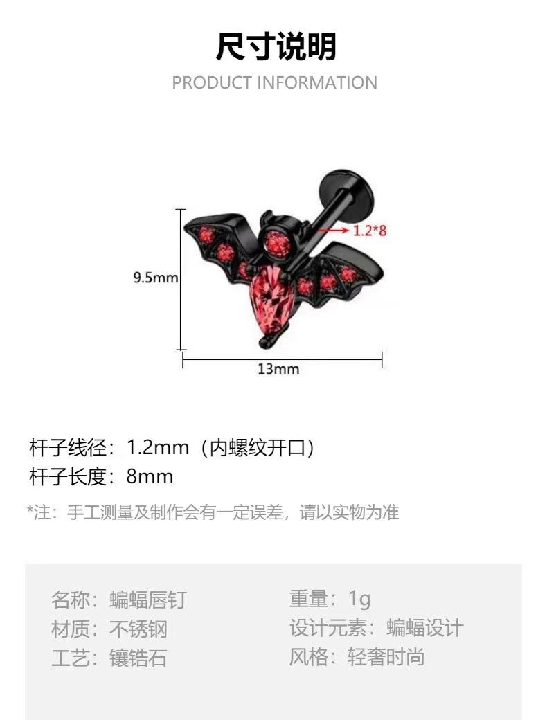 Amazon Hot Bat Zircon Labio Stud Acero Inoxidable Rosca Joyería para Perforación Corporal Venta al por Mayor Transfronteriza