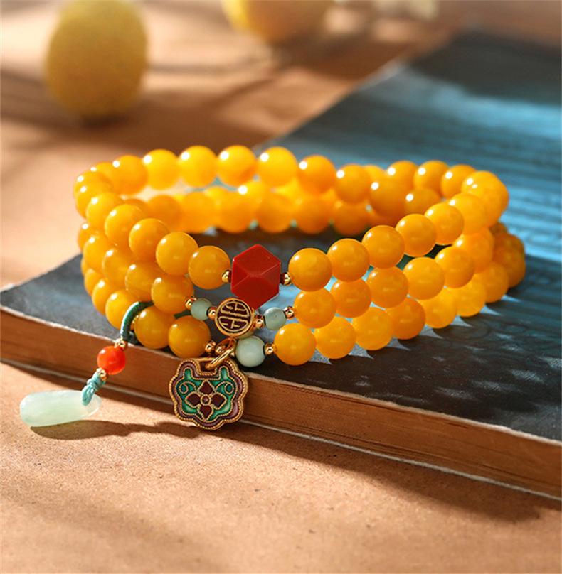 Pulsera de miel vieja amarilla con aceite de pollo y miel báltica para hombres y mujeres, pulsera de jade con múltiples círculos, cera de abejas y ámbar, pulsera al por mayor para personas