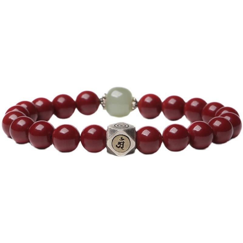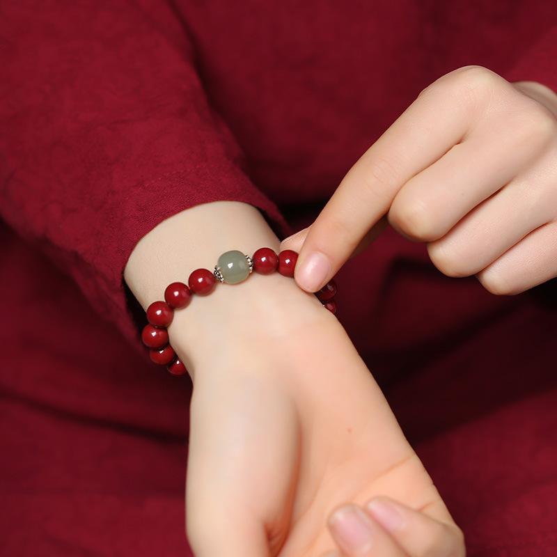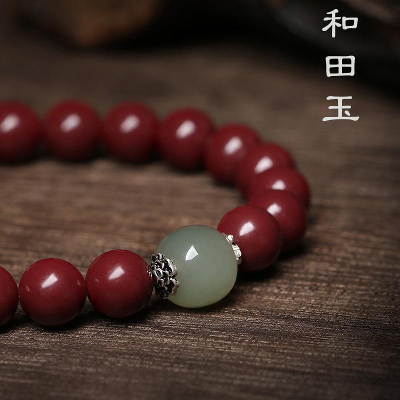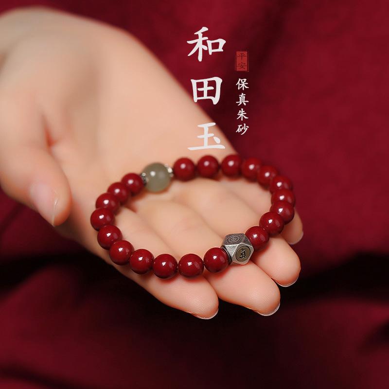 Cuentas redondas de cinabrio de mineral bruto natural con cuentas redondas de jade Hetian Pulsera de moda de regalo para niños y niñas año de nacimiento del Dios Guardián