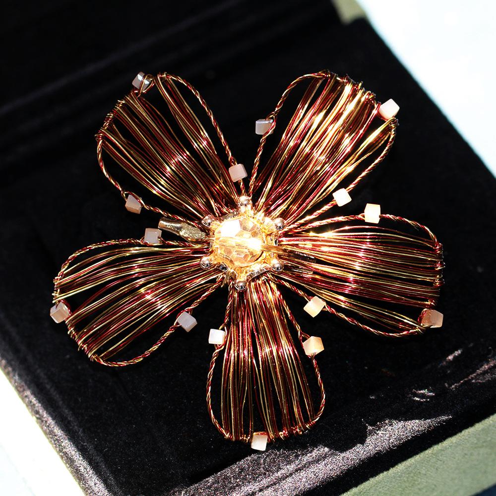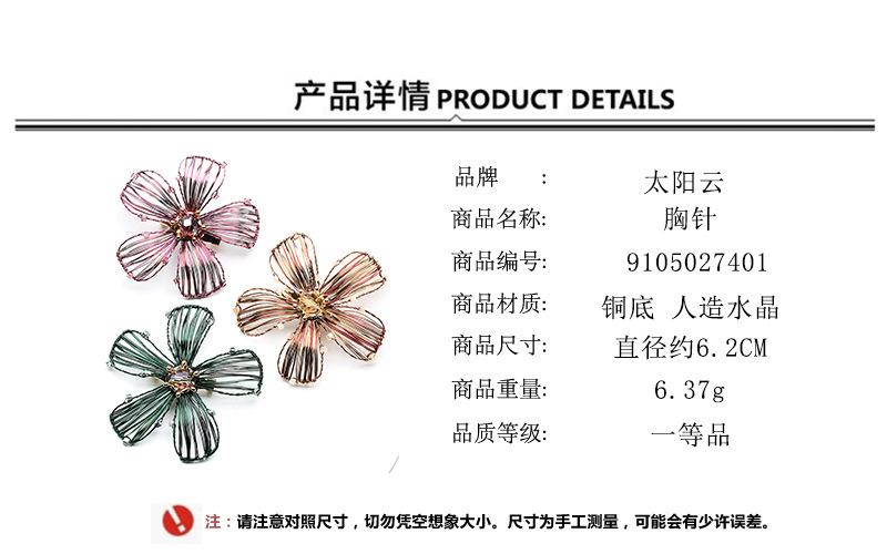 Broche de flores de cristal artificial de alta gama hecho a mano con diseño de Twining, accesorio de ramillete sencillo de tres colores para mujer