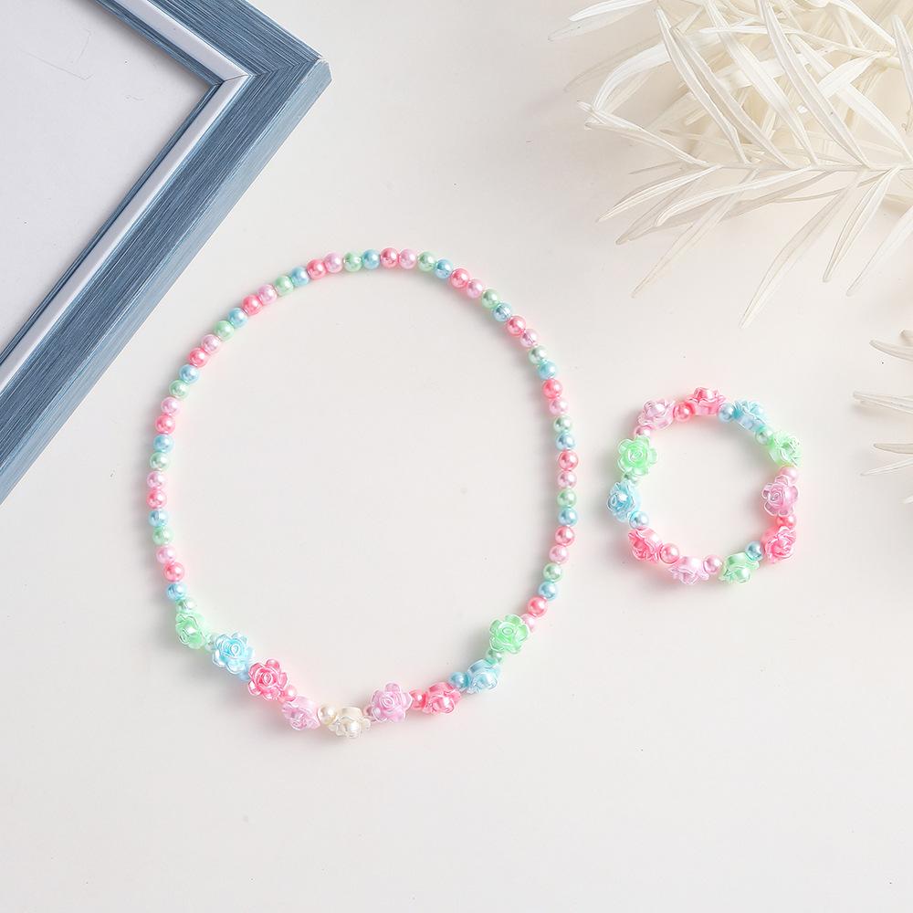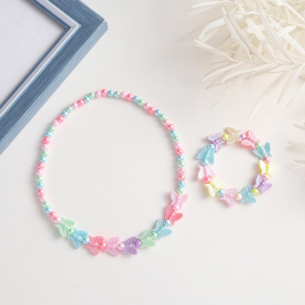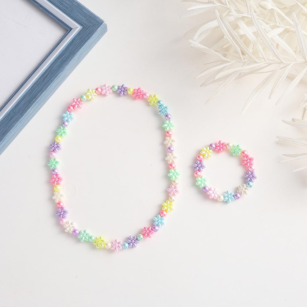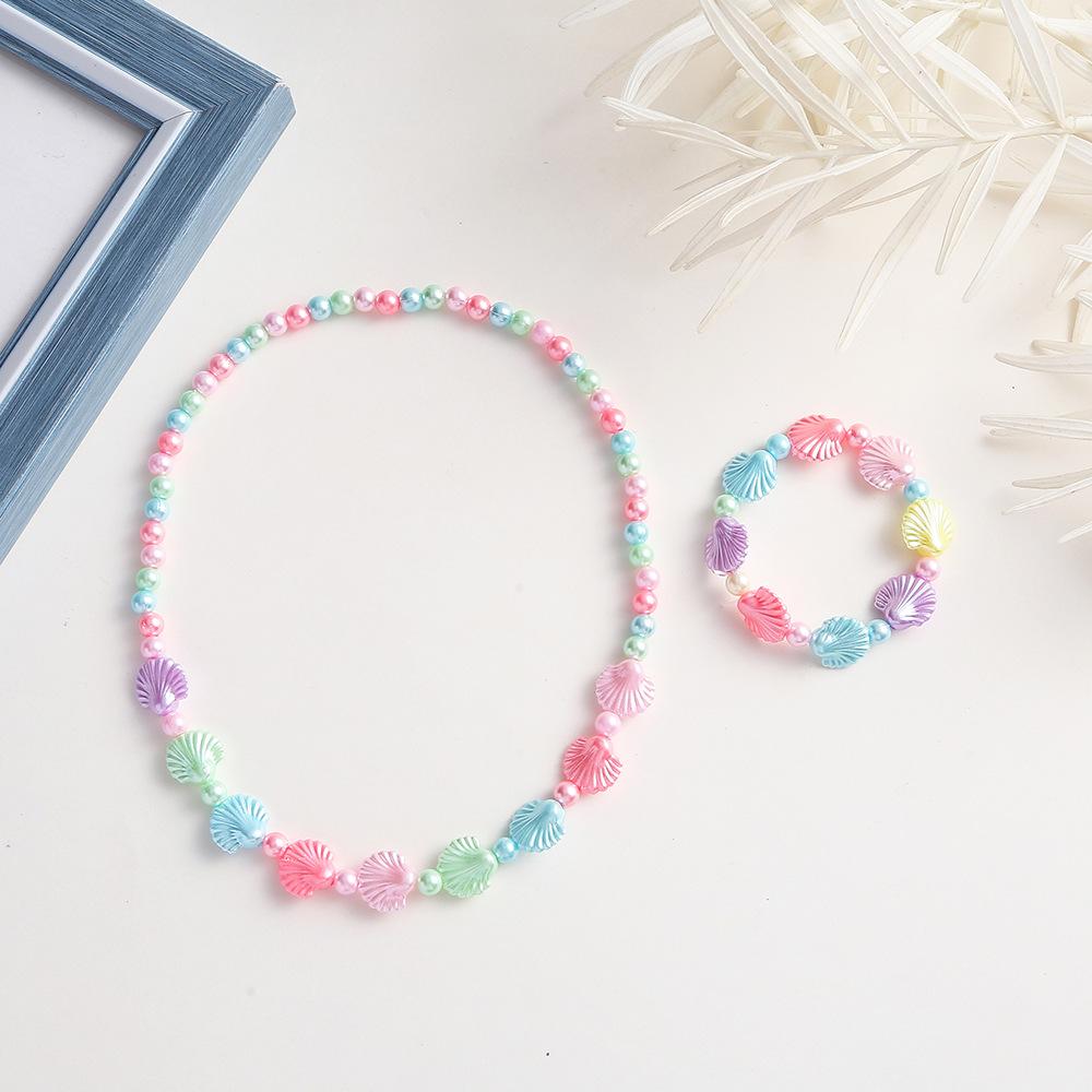 Pulsera de cuentas de plástico con forma de perla de color caramelo para niños, creativa, transfronteriza, con collar y conjunto de joyas colgantes.