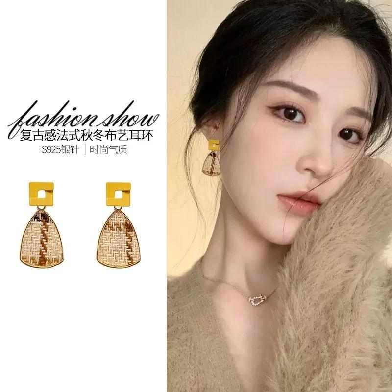 Pendientes geométricos retro franceses 2024, nuevos pendientes de alta gama con diseño de nicho de moda para mujer, pendientes que combinan con todo.