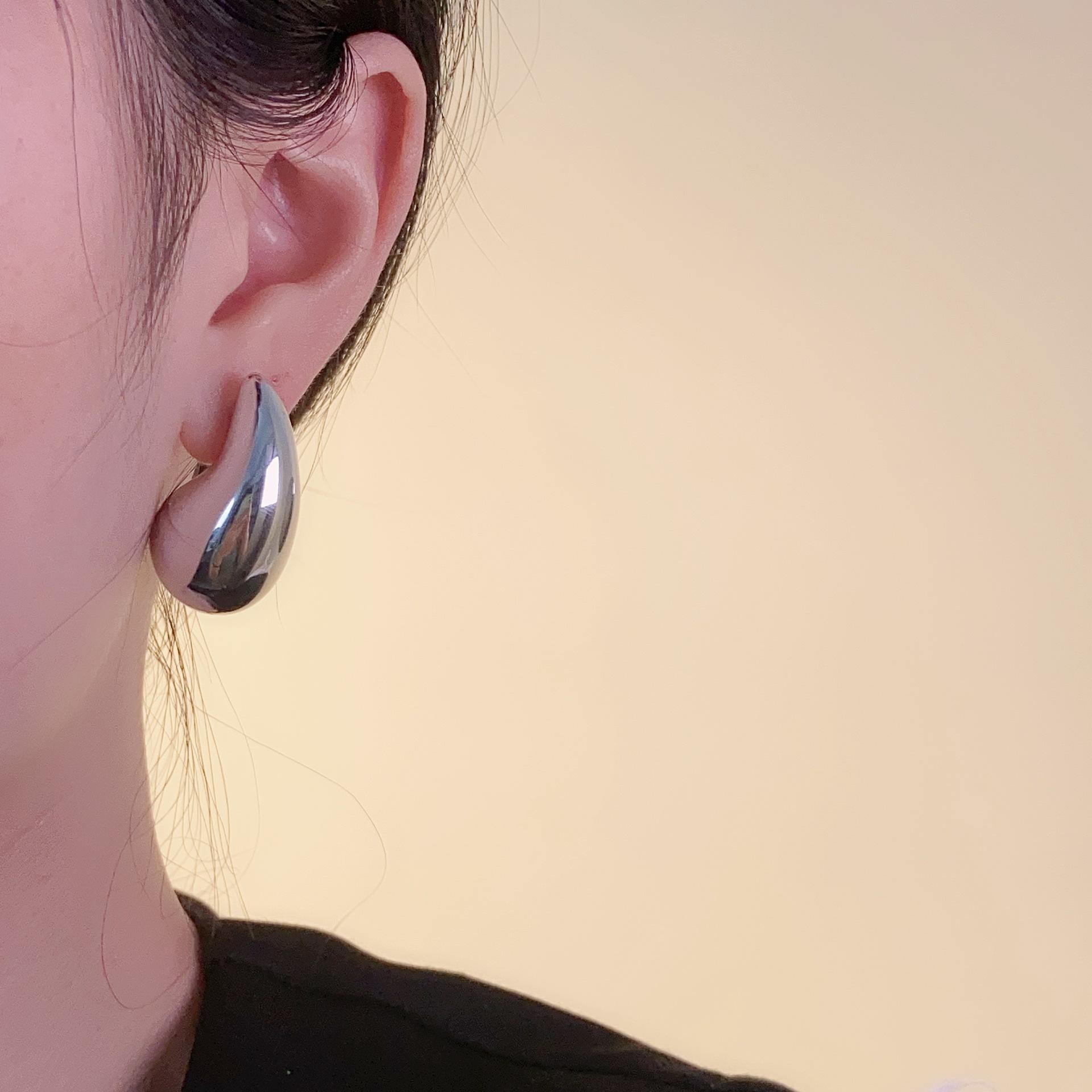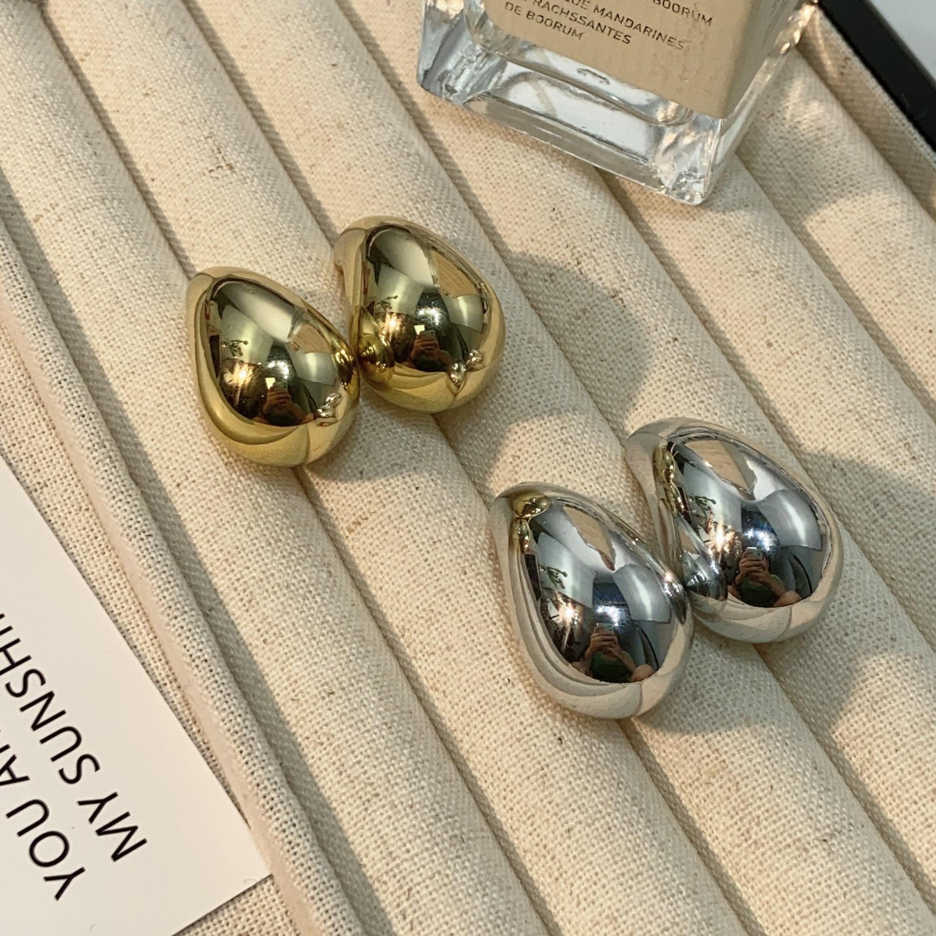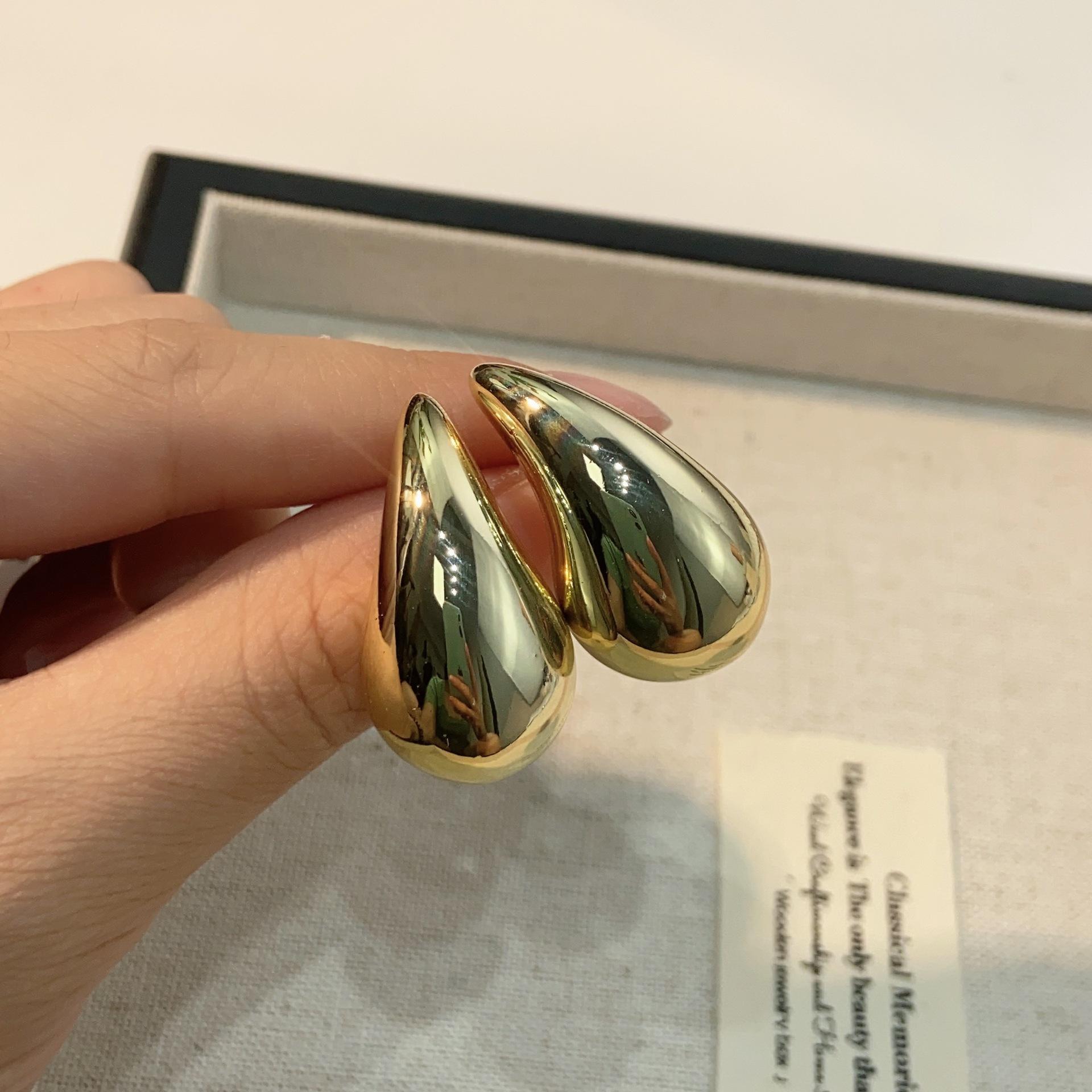 Compra Pendientes de gota de agua dorada francesa para mujer, diseño de nicho, pendientes de plata con sentido avanzado, pendientes de temperamento único, pendientes de verano para mujer al por mayor en Joom.pro