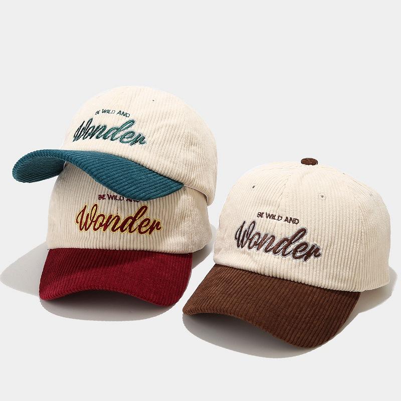 Compra Gorra de pana bordada con letras vintage de estilo coreano de moda para mujer, gorra de béisbol informal para otoño e invierno para parejas. al por mayor en Joom.pro