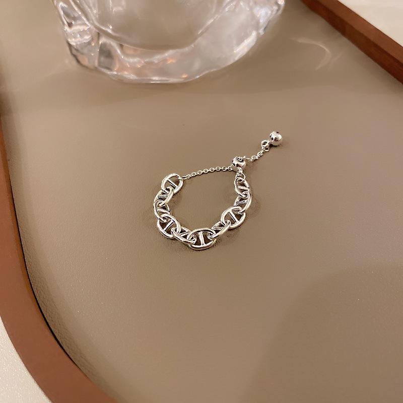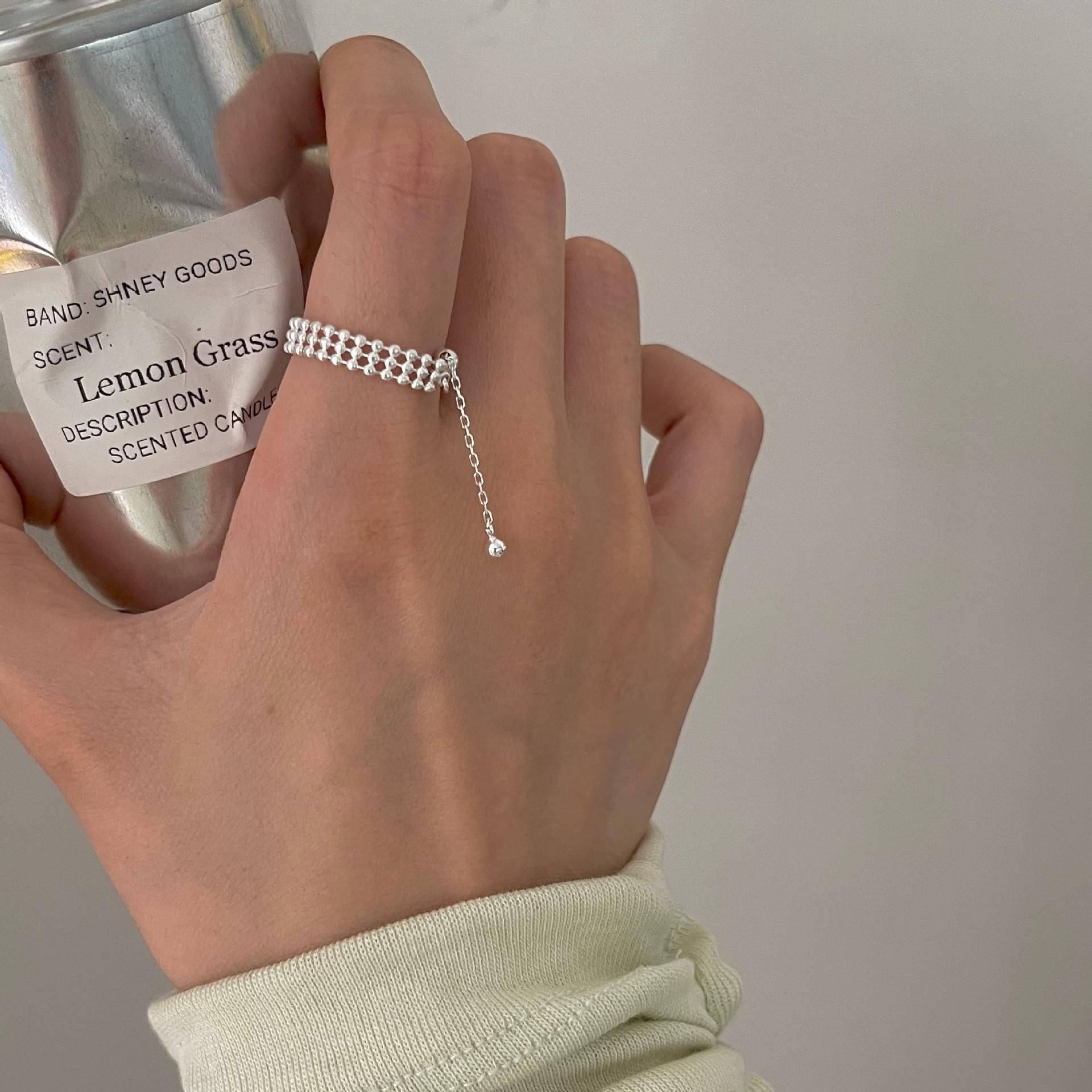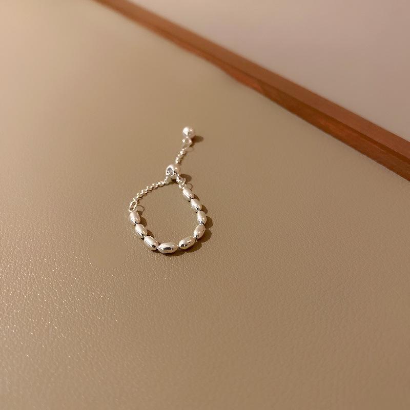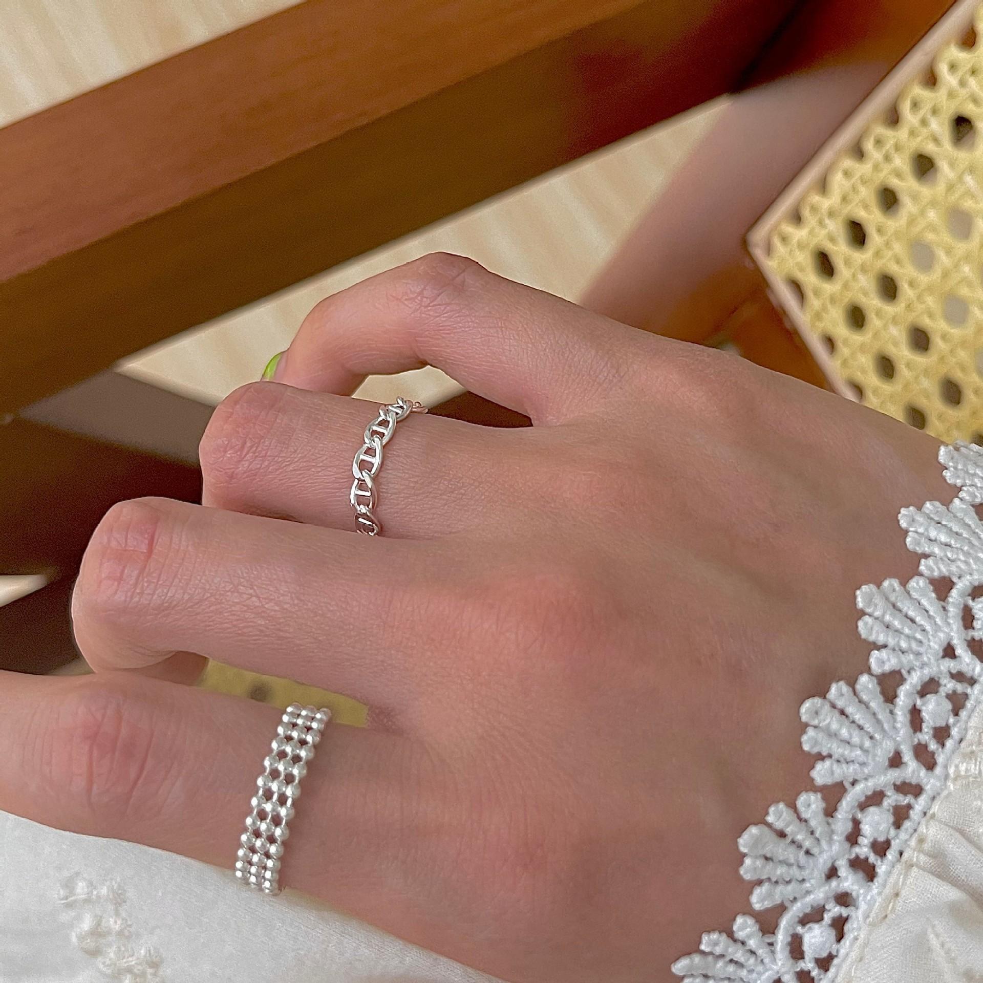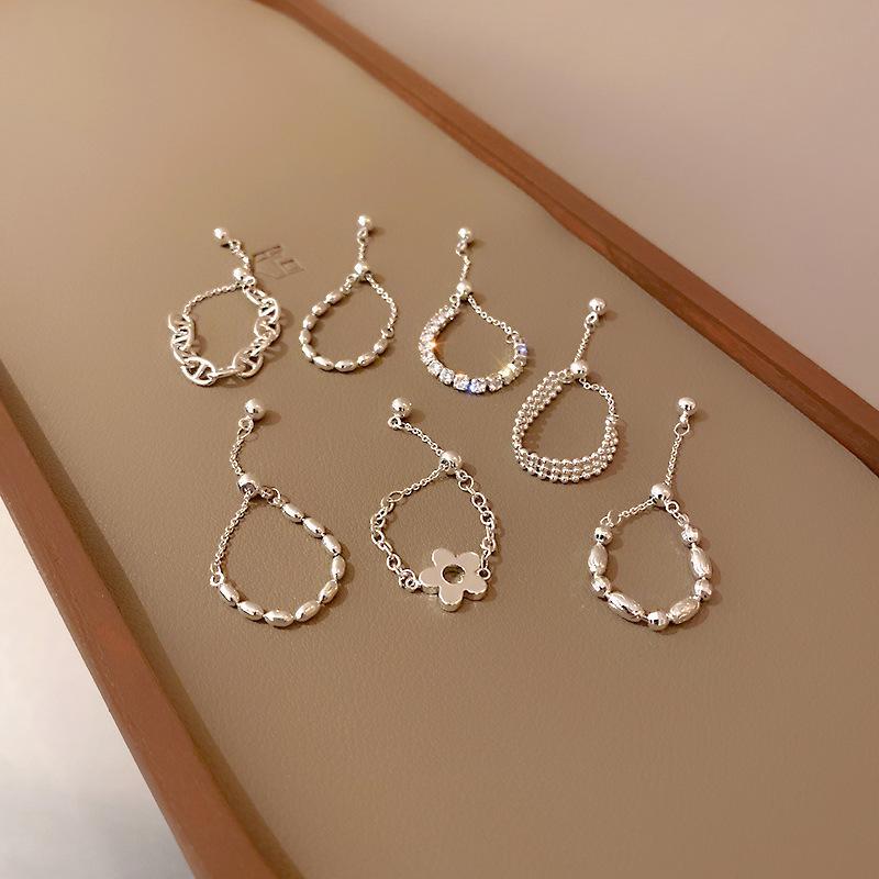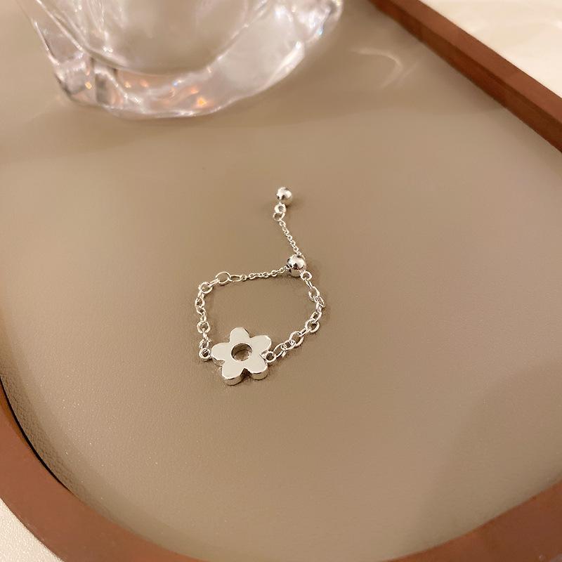 Anillo Ajustable de Plata S925 Estilo Coreano para Mujer, Moda Retro, Flor, Borla, Cadena, Anillo de Dedo, Anillo de Dedo para Comida, Moda