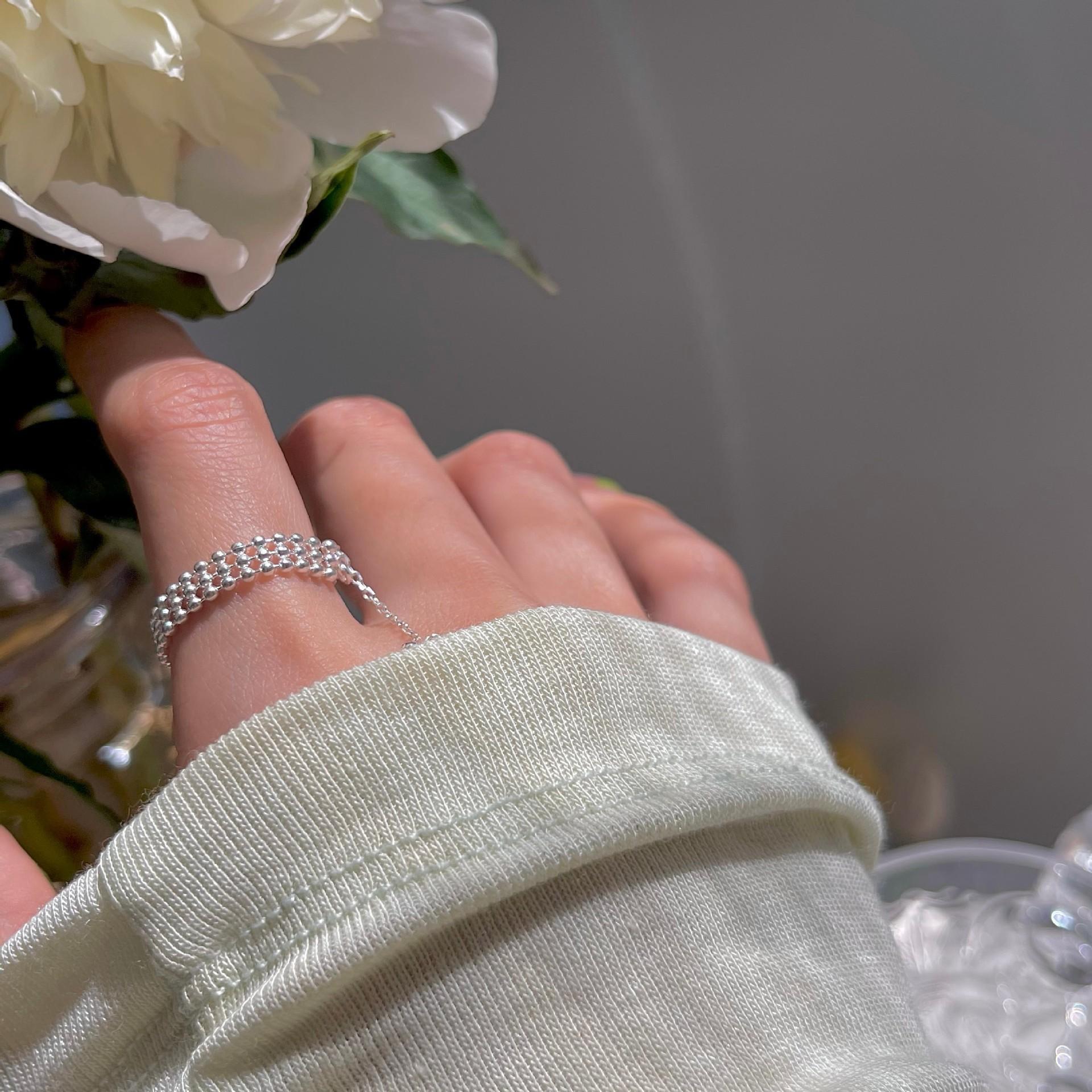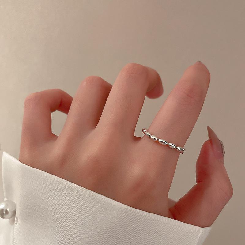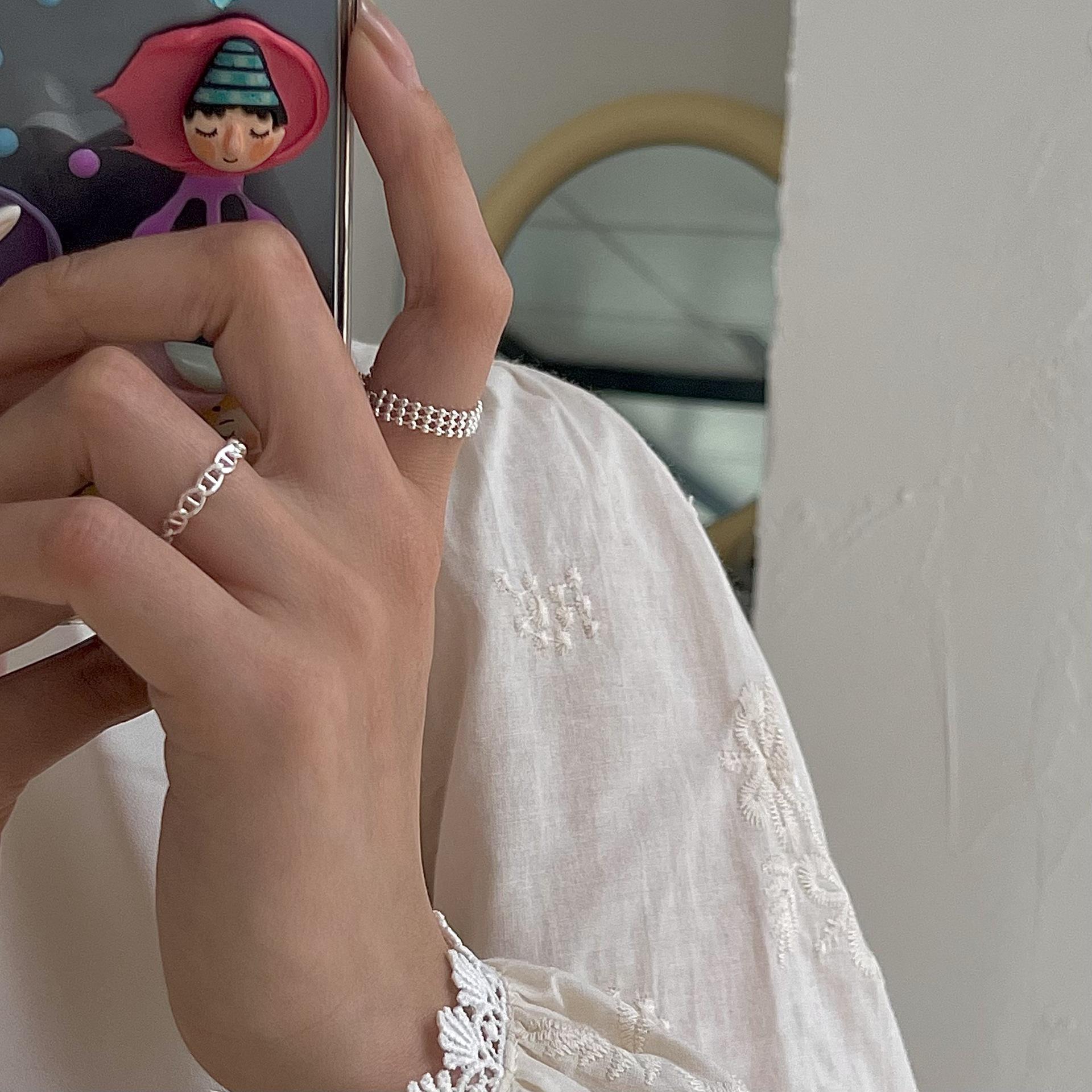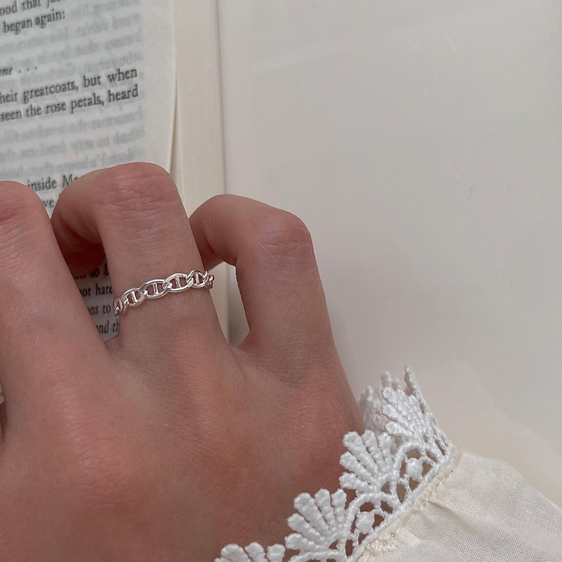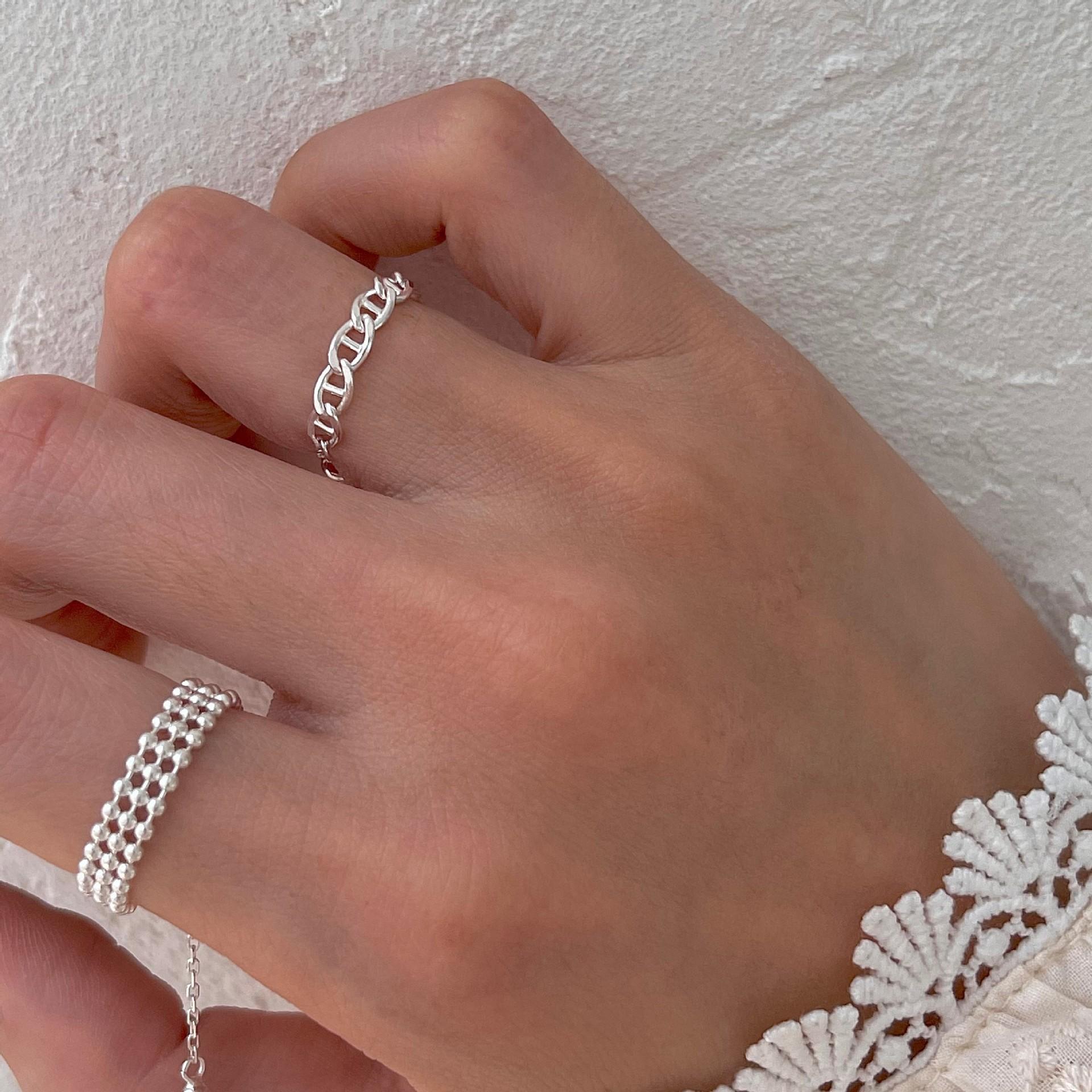 Anillo Ajustable de Plata S925 Estilo Coreano para Mujer, Moda Retro, Flor, Borla, Cadena, Anillo de Dedo, Anillo de Dedo para Comida, Moda