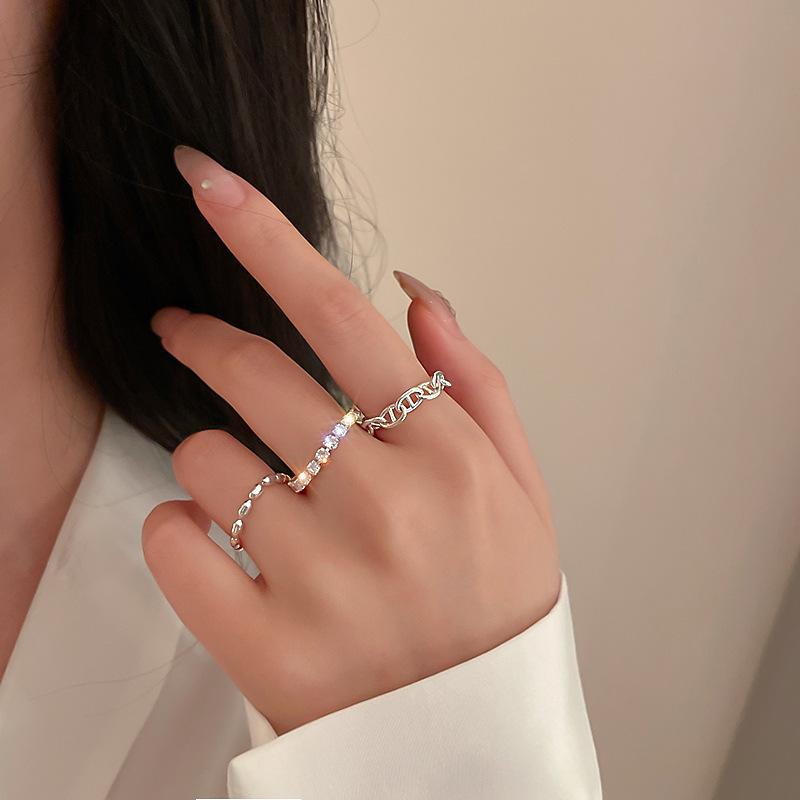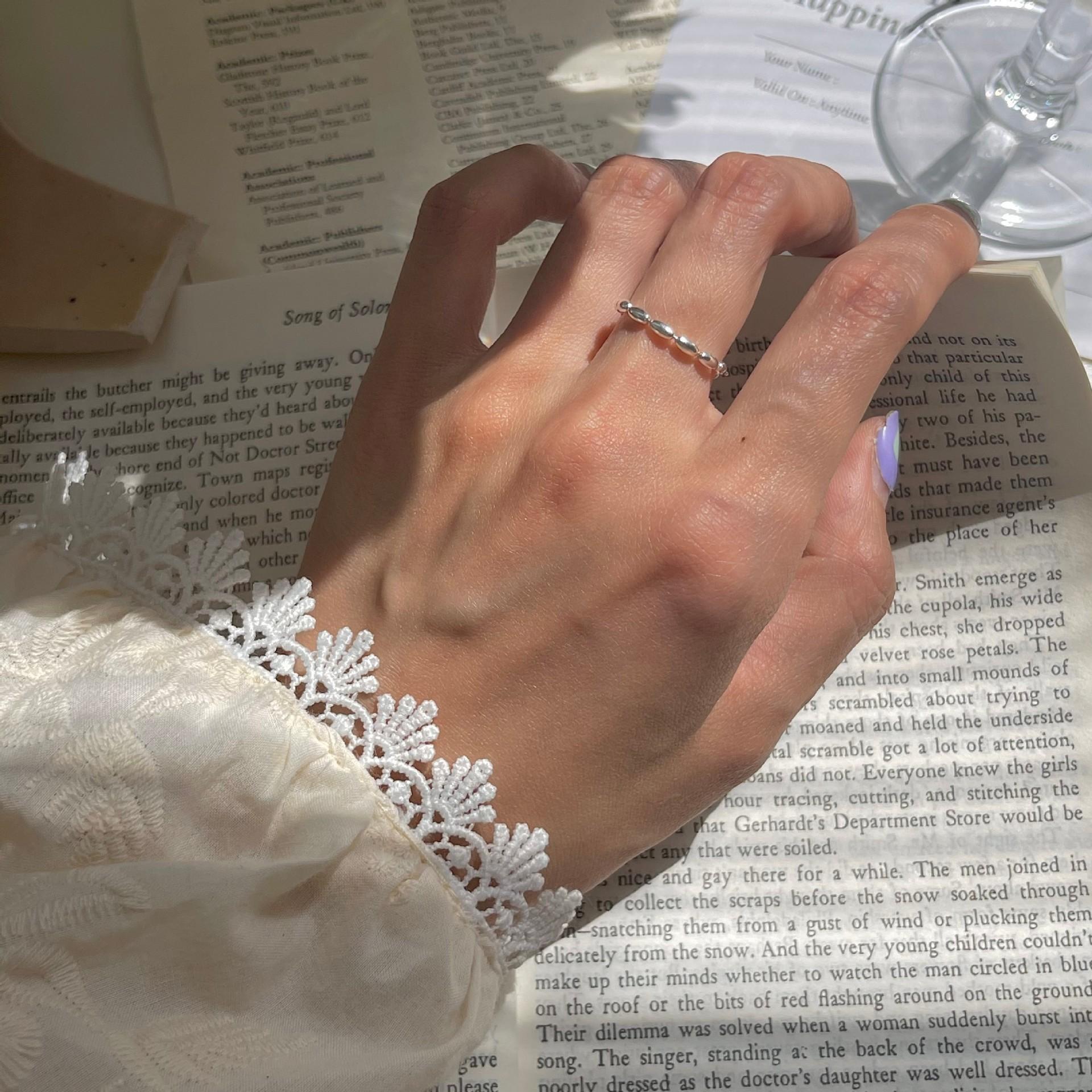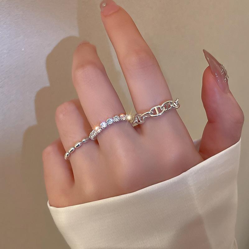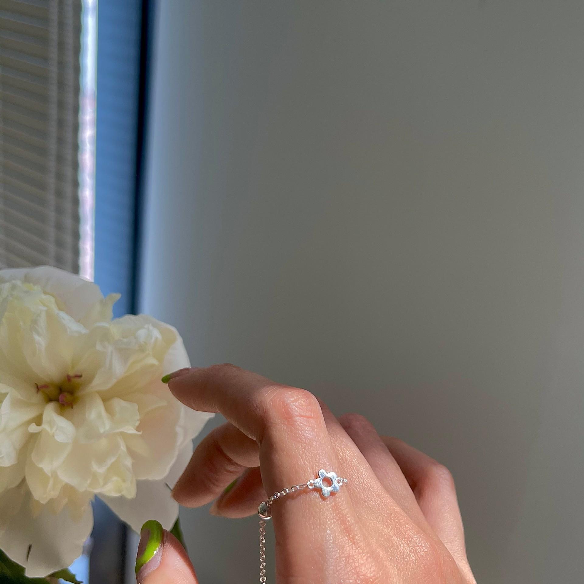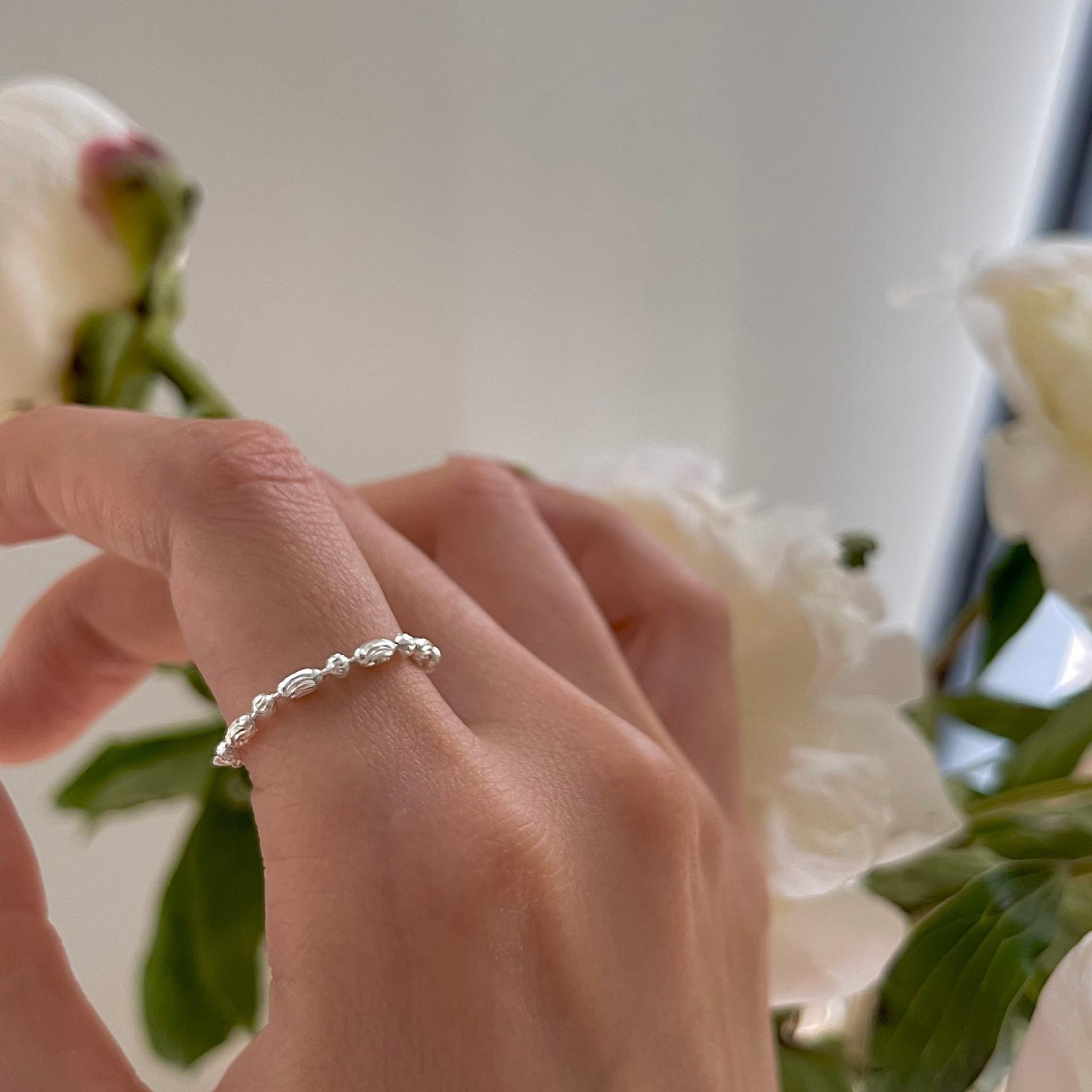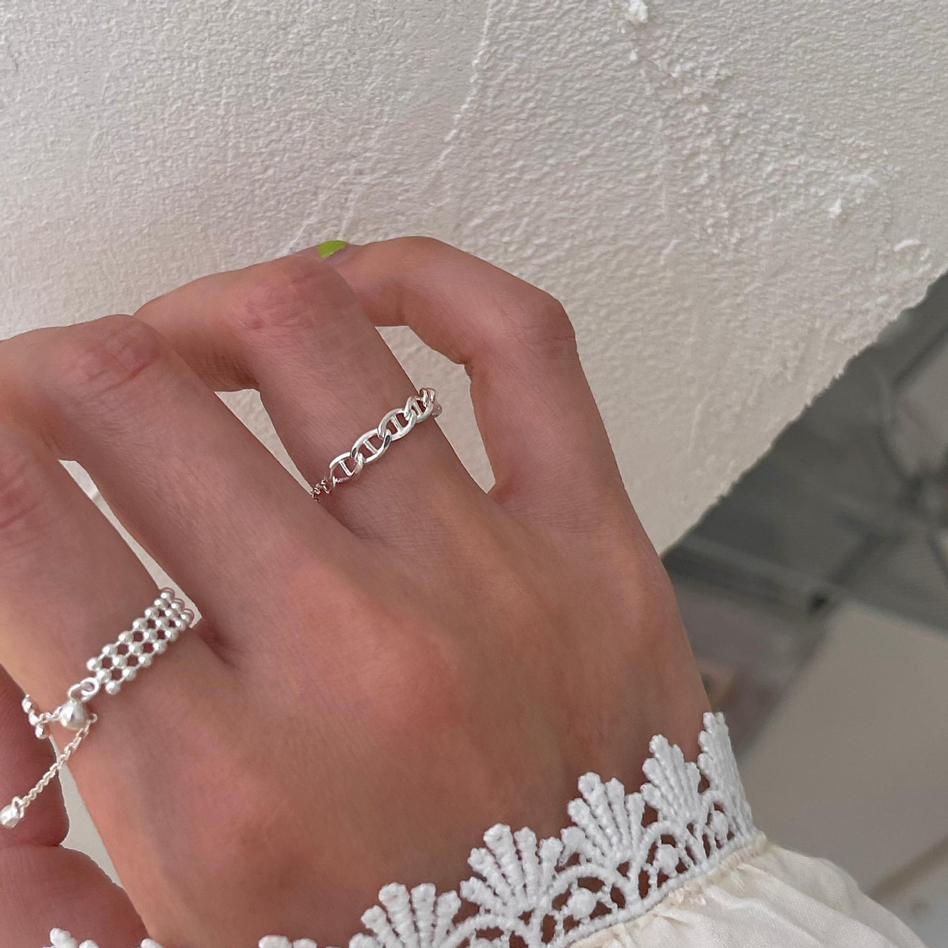 Anillo Ajustable de Plata S925 Estilo Coreano para Mujer, Moda Retro, Flor, Borla, Cadena, Anillo de Dedo, Anillo de Dedo para Comida, Moda
