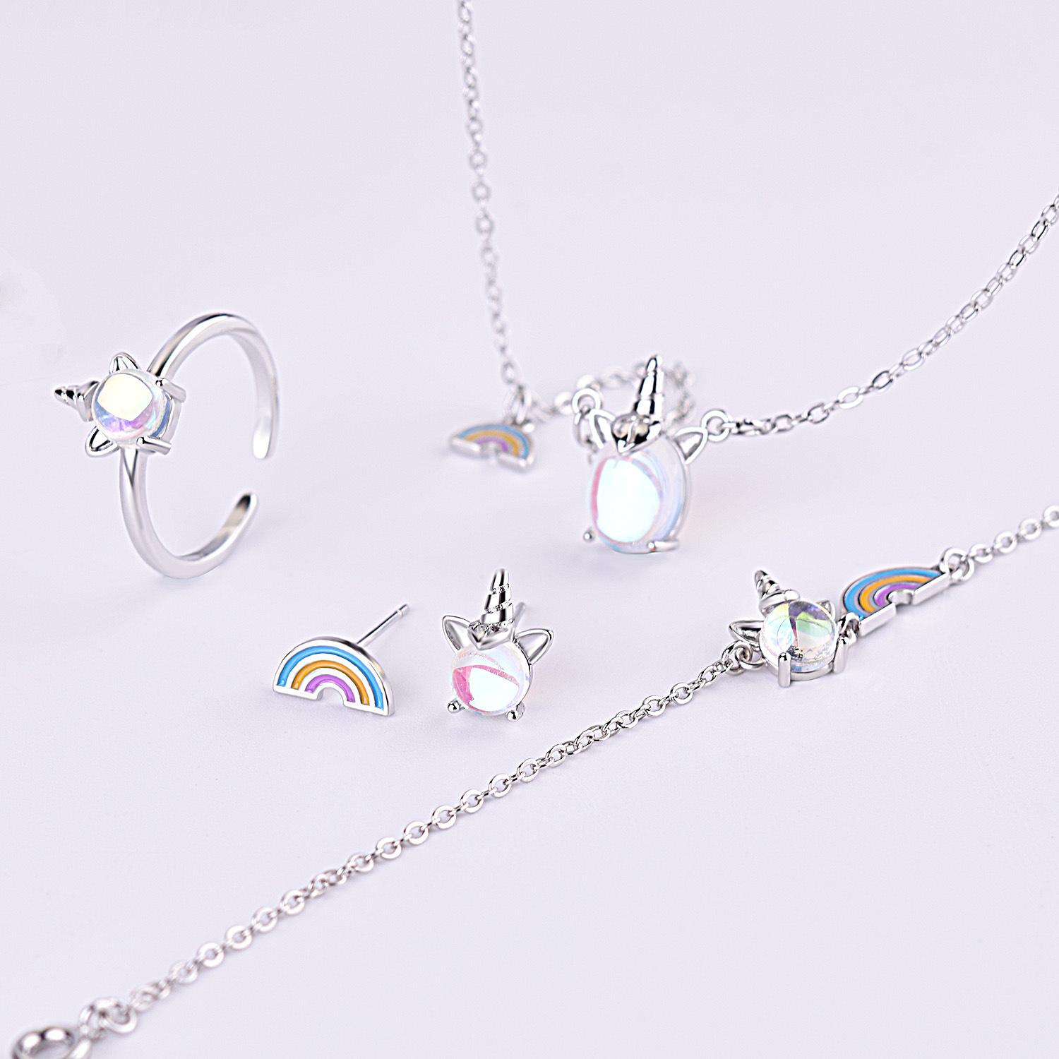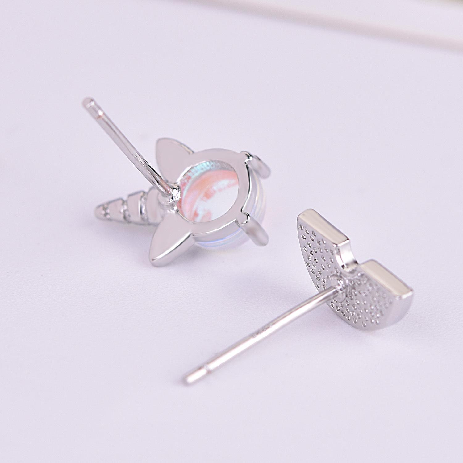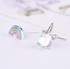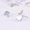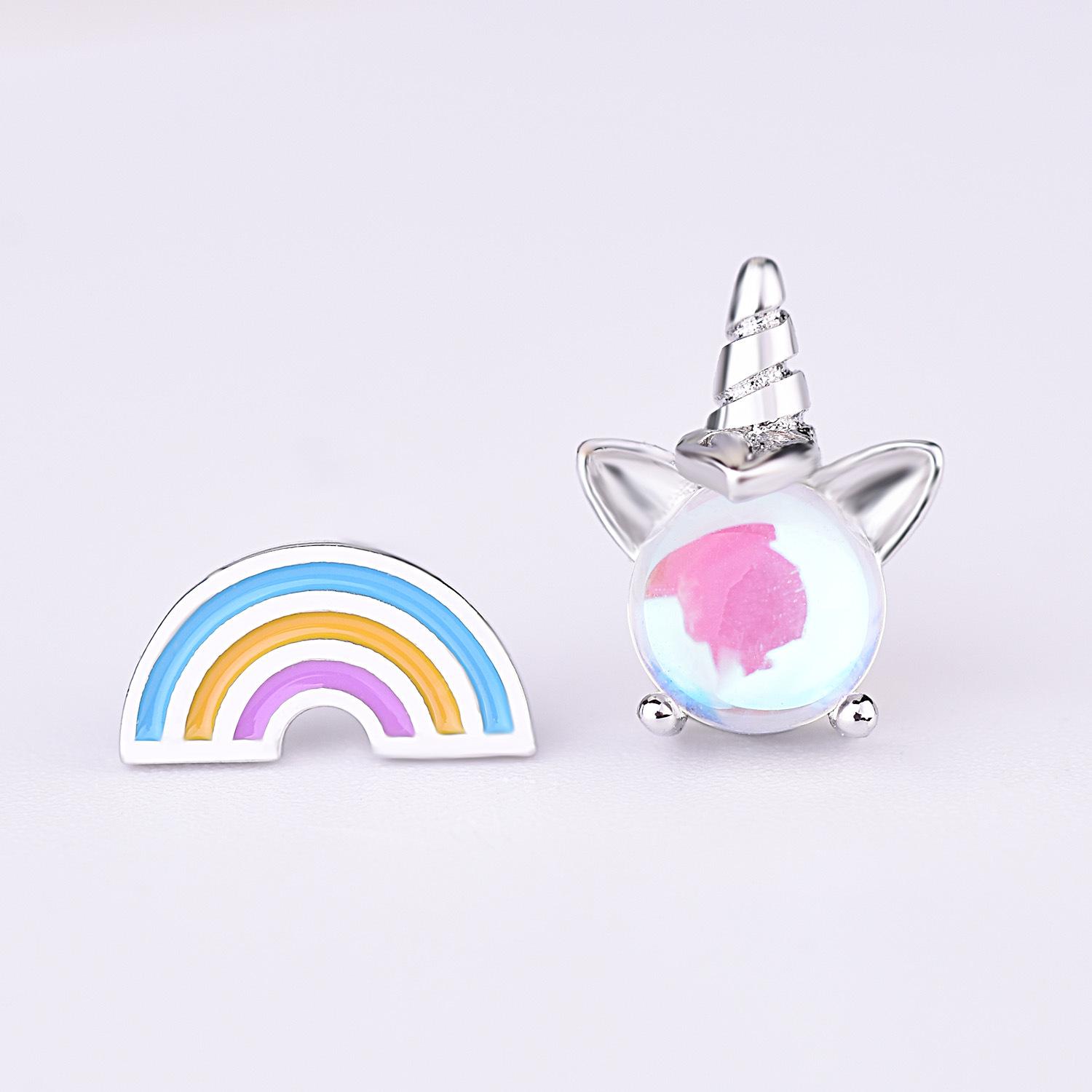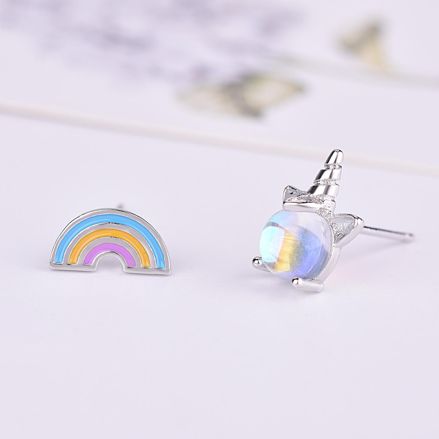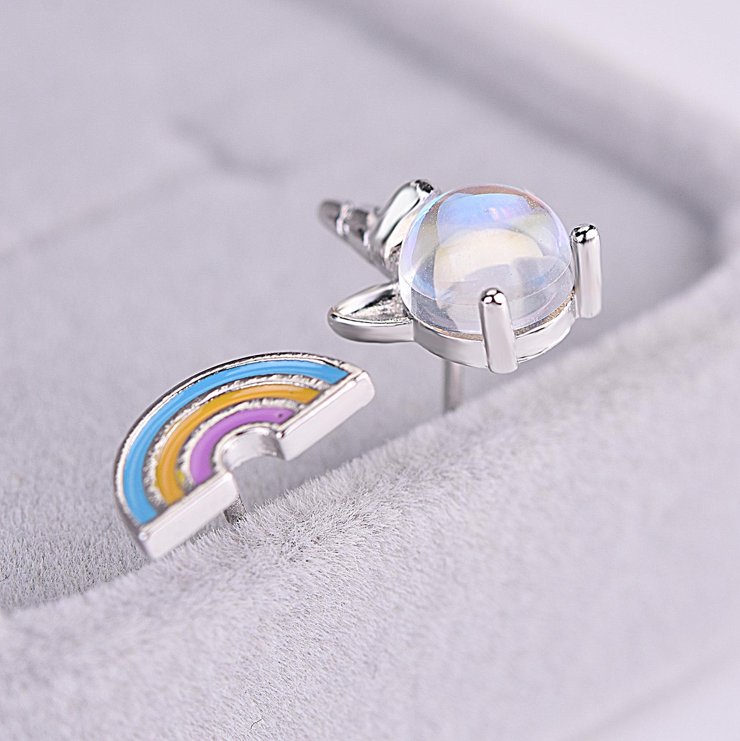 Pendientes de piedra lunar coloridos para mujer, estilo coreano, frescos y lindos, con unicornio, asimétricos, arcoíris, dulces, joyería para las orejas.