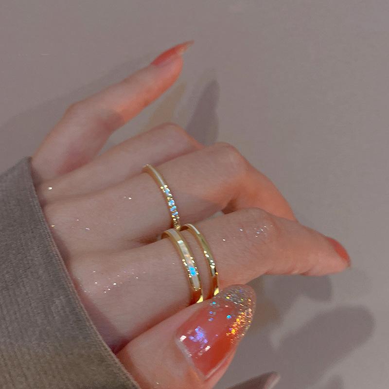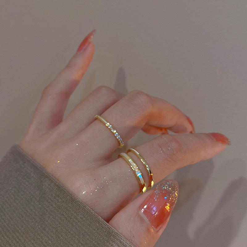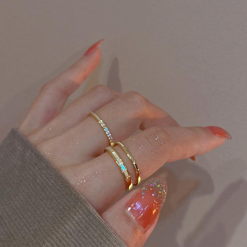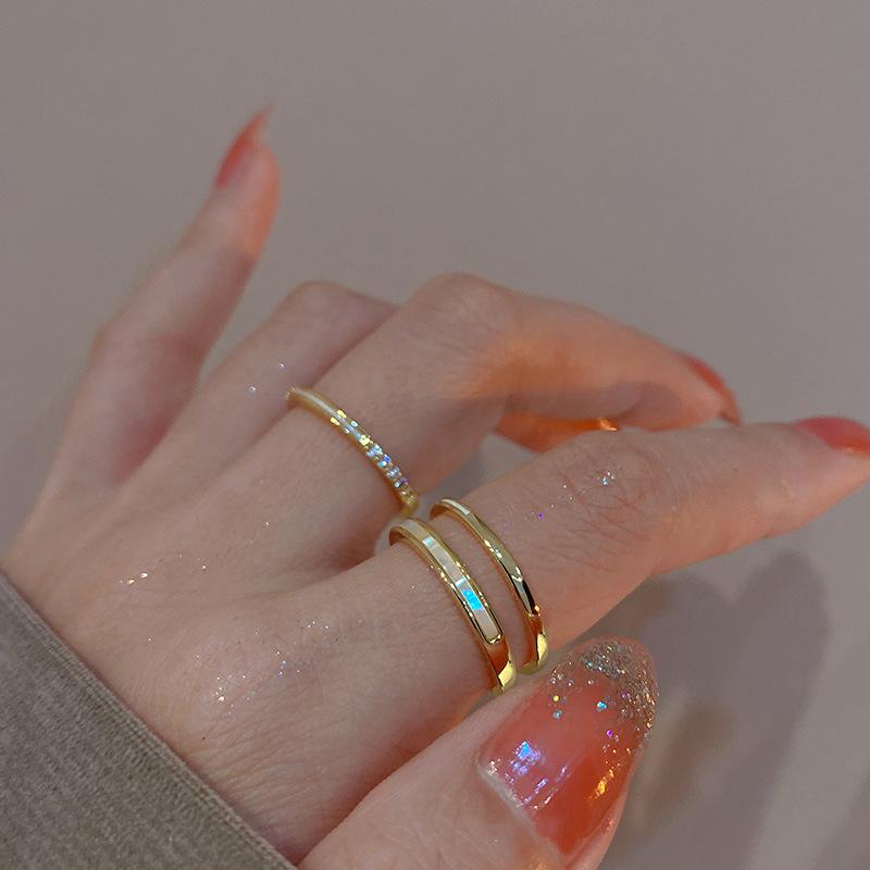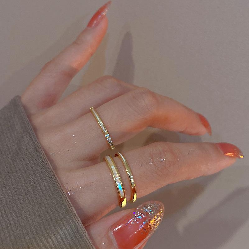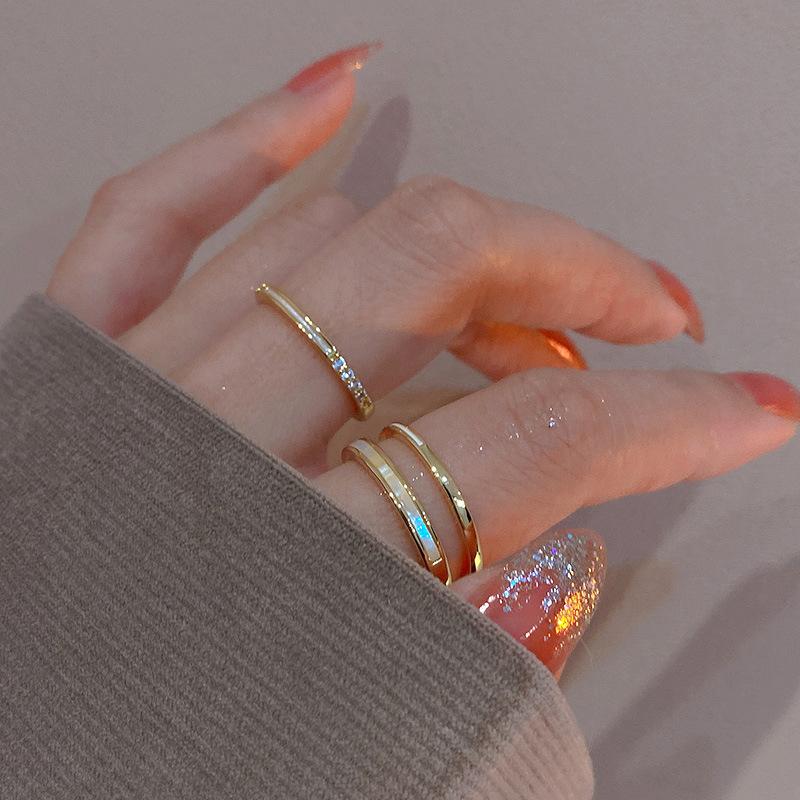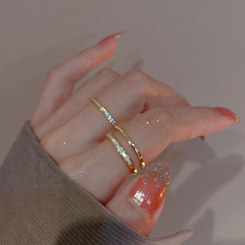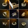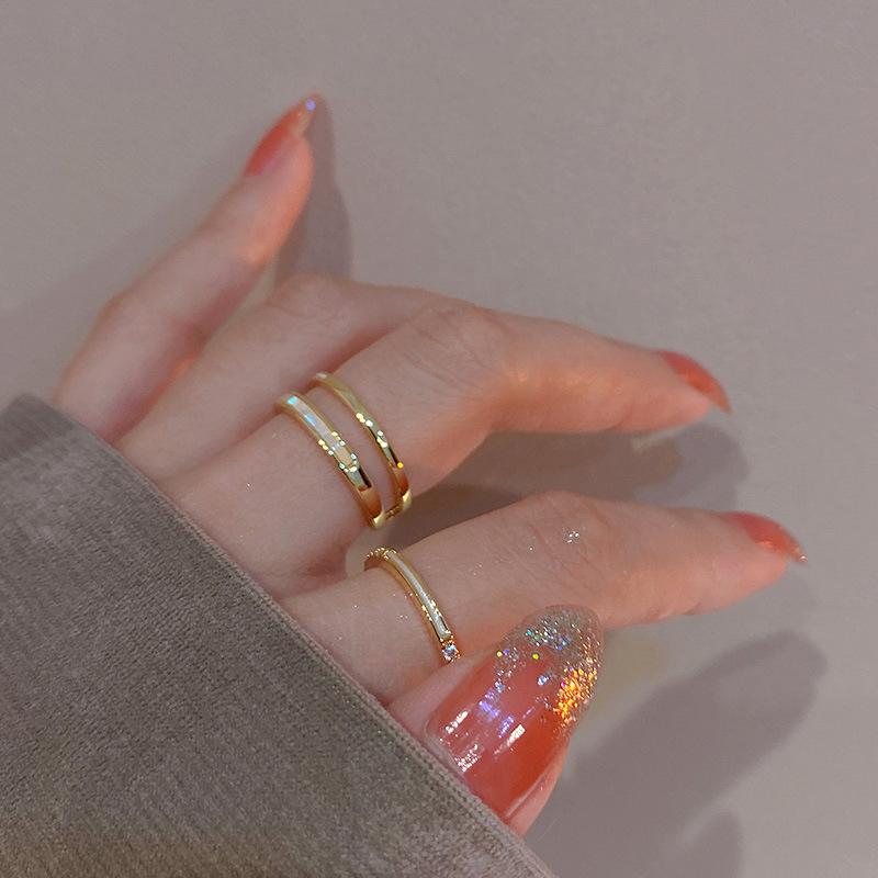 Anillo abierto geométrico de circonita de estilo moderno 2024, anillo de dedo índice de moda simple, temperamento ligero, lujo, versátil, joyería de mano al por mayor para mujeres