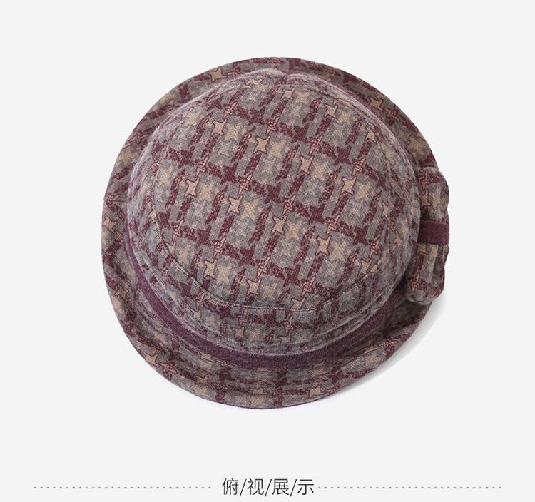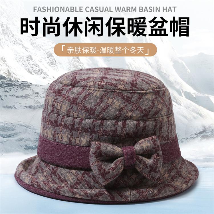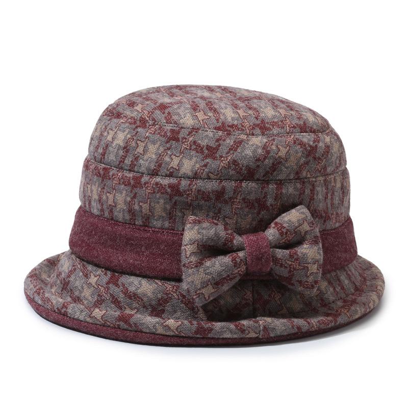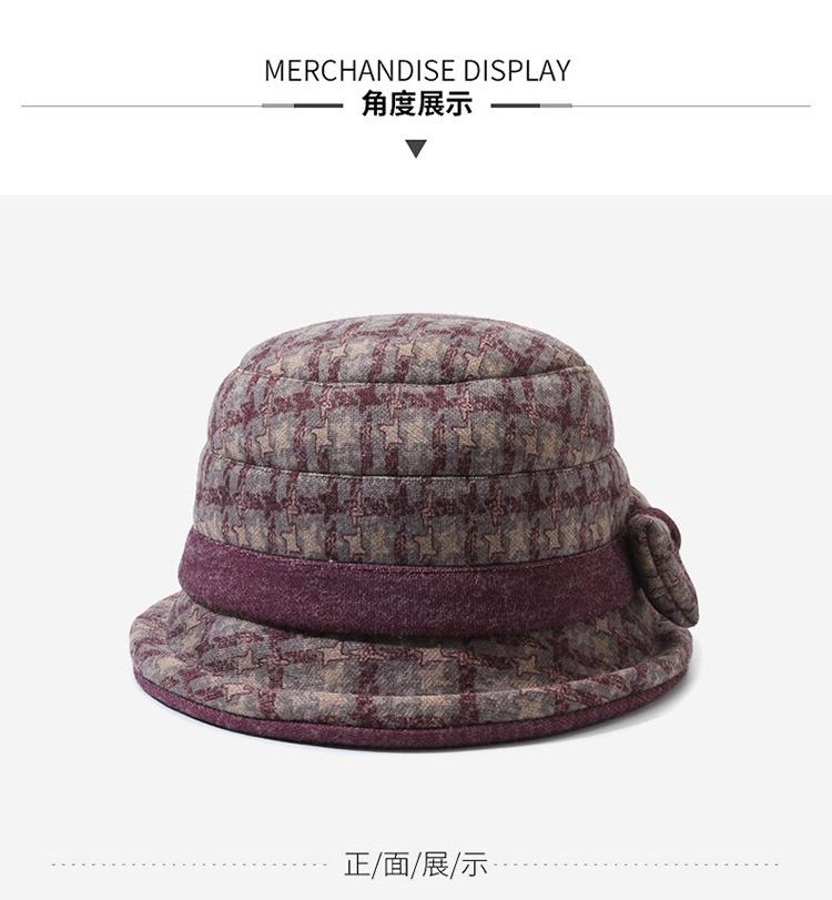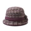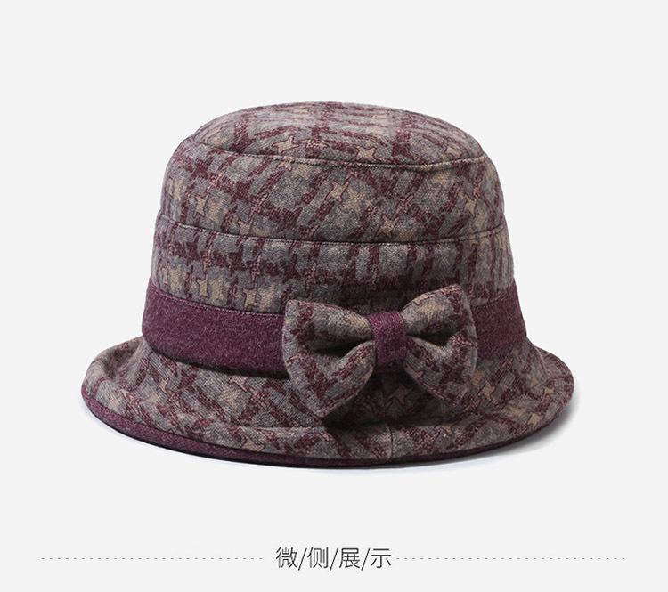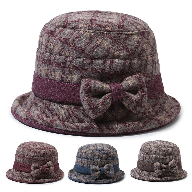 Sombrero de pescador cálido de lana a cuadros para mujer, gorro de lavabo con lazo en forma de cúpula versátil para otoño e invierno, gorro estilo coreano con ala enrollada, gorro pequeño tipo bombín.