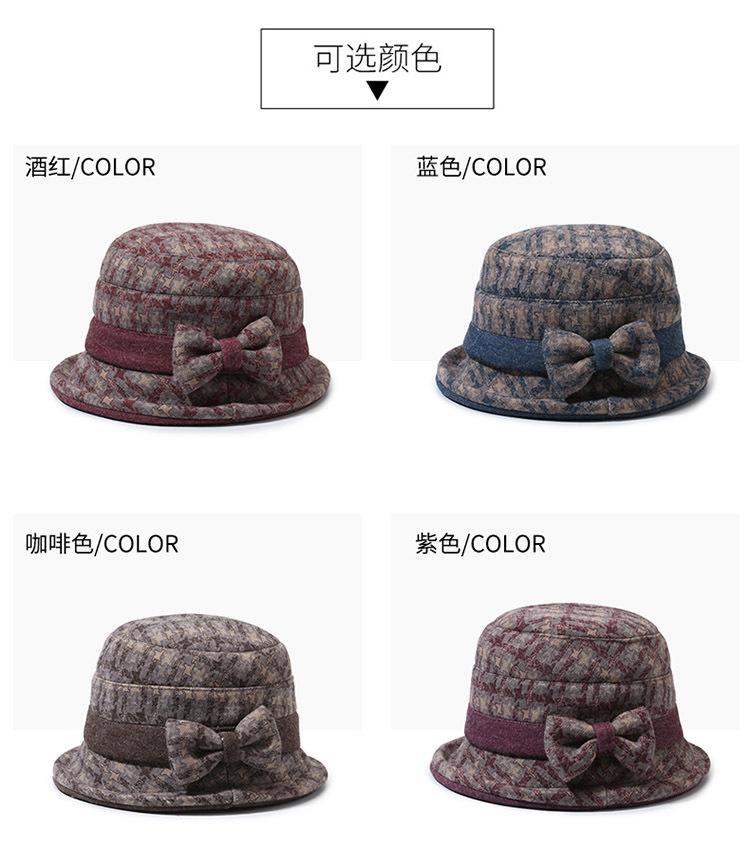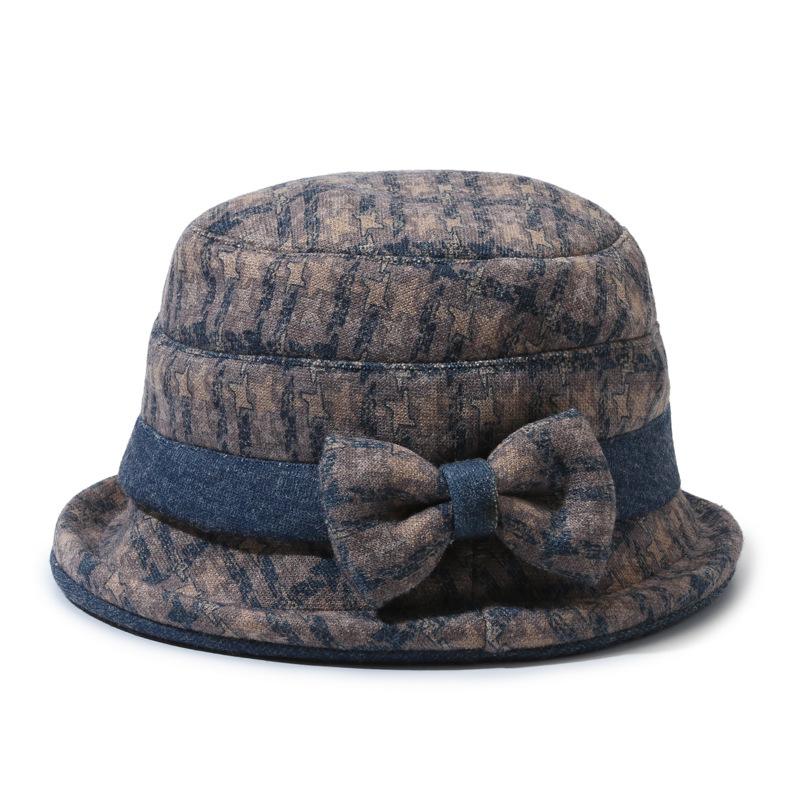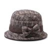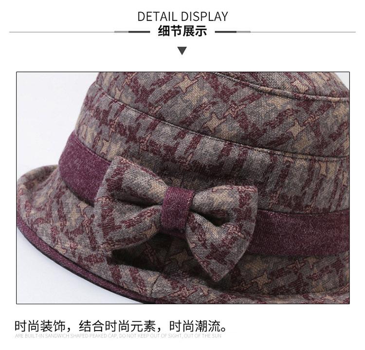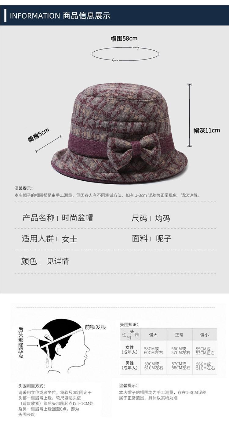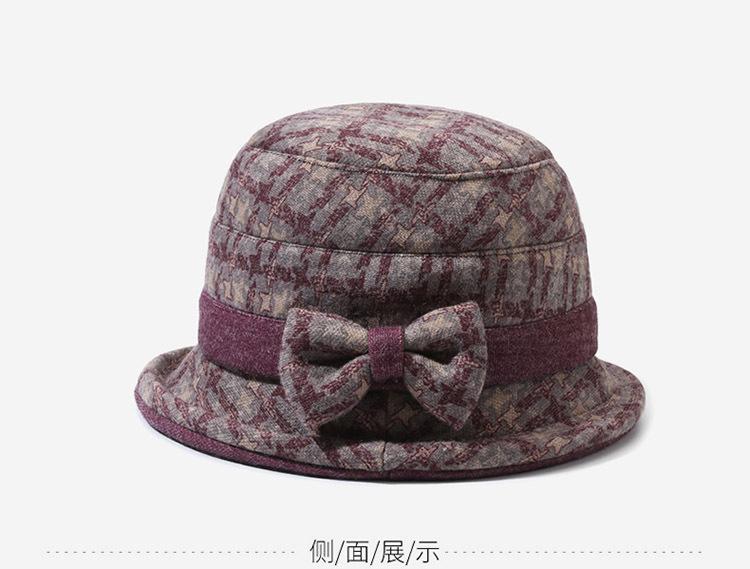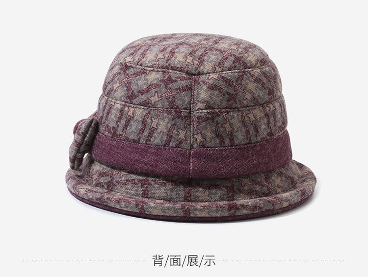 Sombrero de pescador cálido de lana a cuadros para mujer, gorro de lavabo con lazo en forma de cúpula versátil para otoño e invierno, gorro estilo coreano con ala enrollada, gorro pequeño tipo bombín.