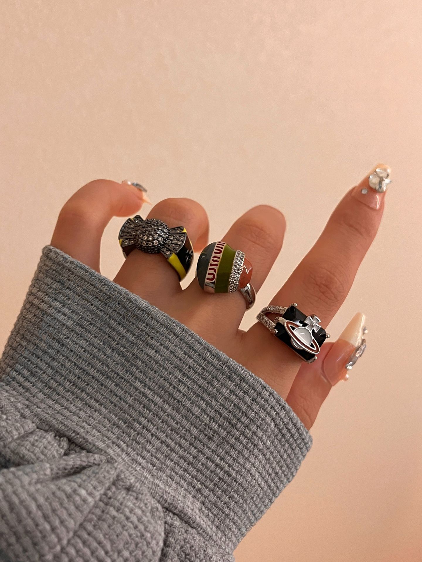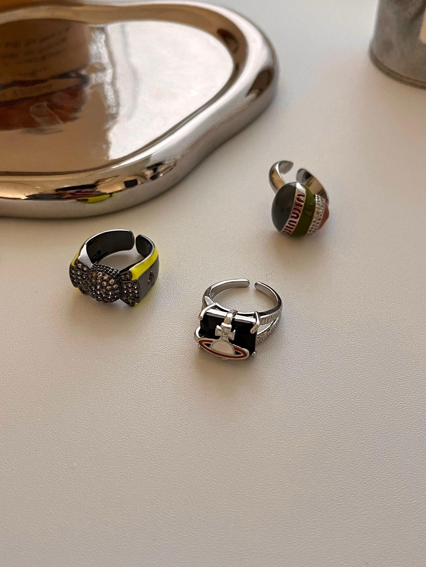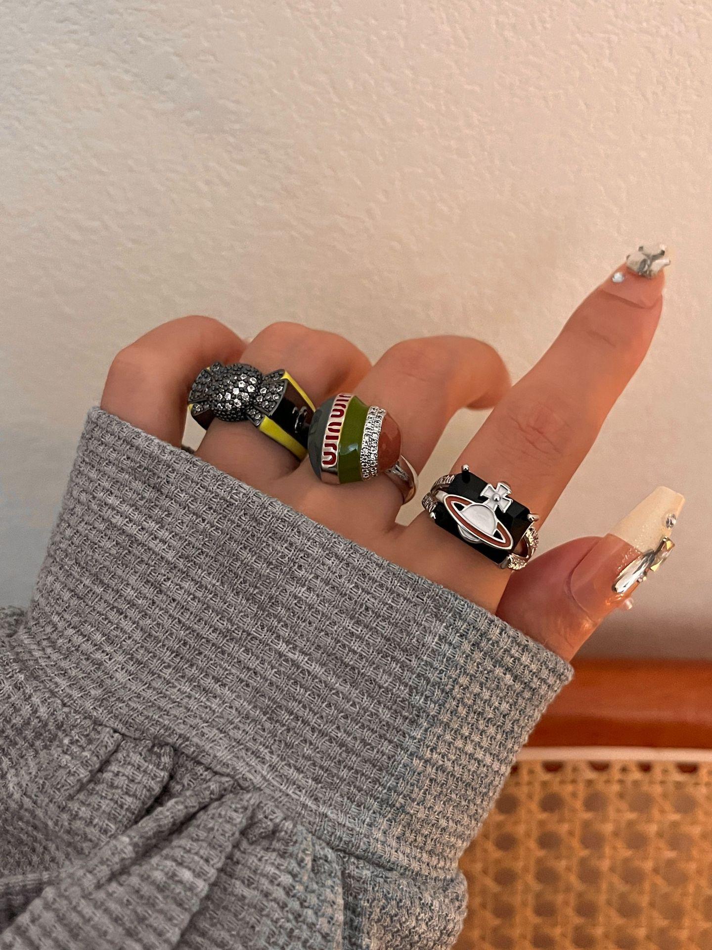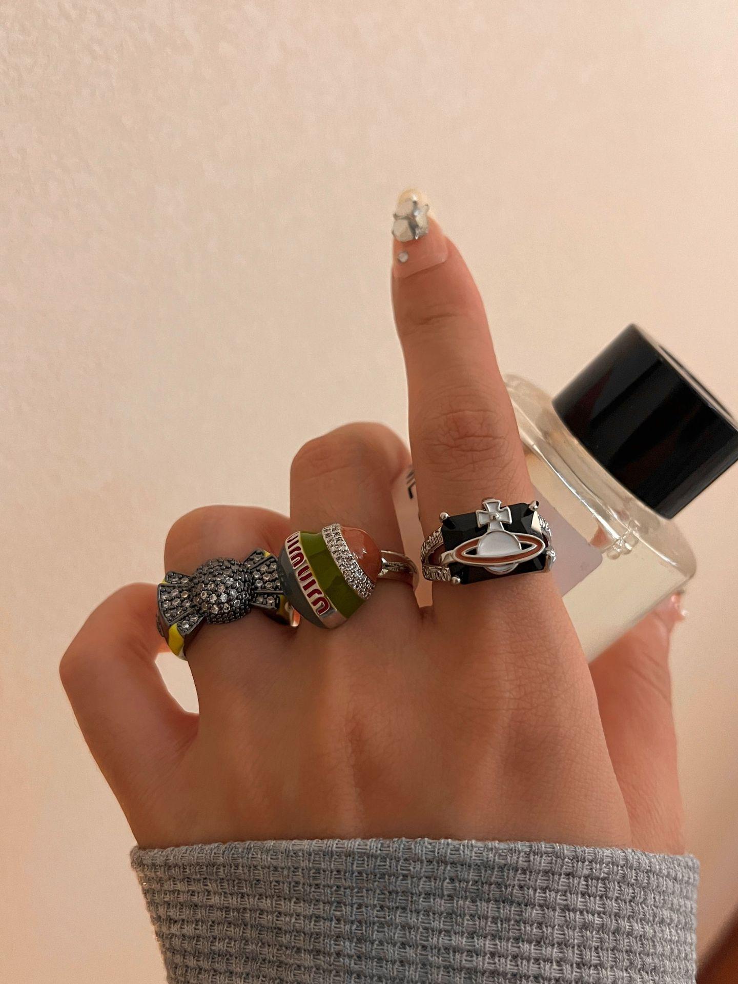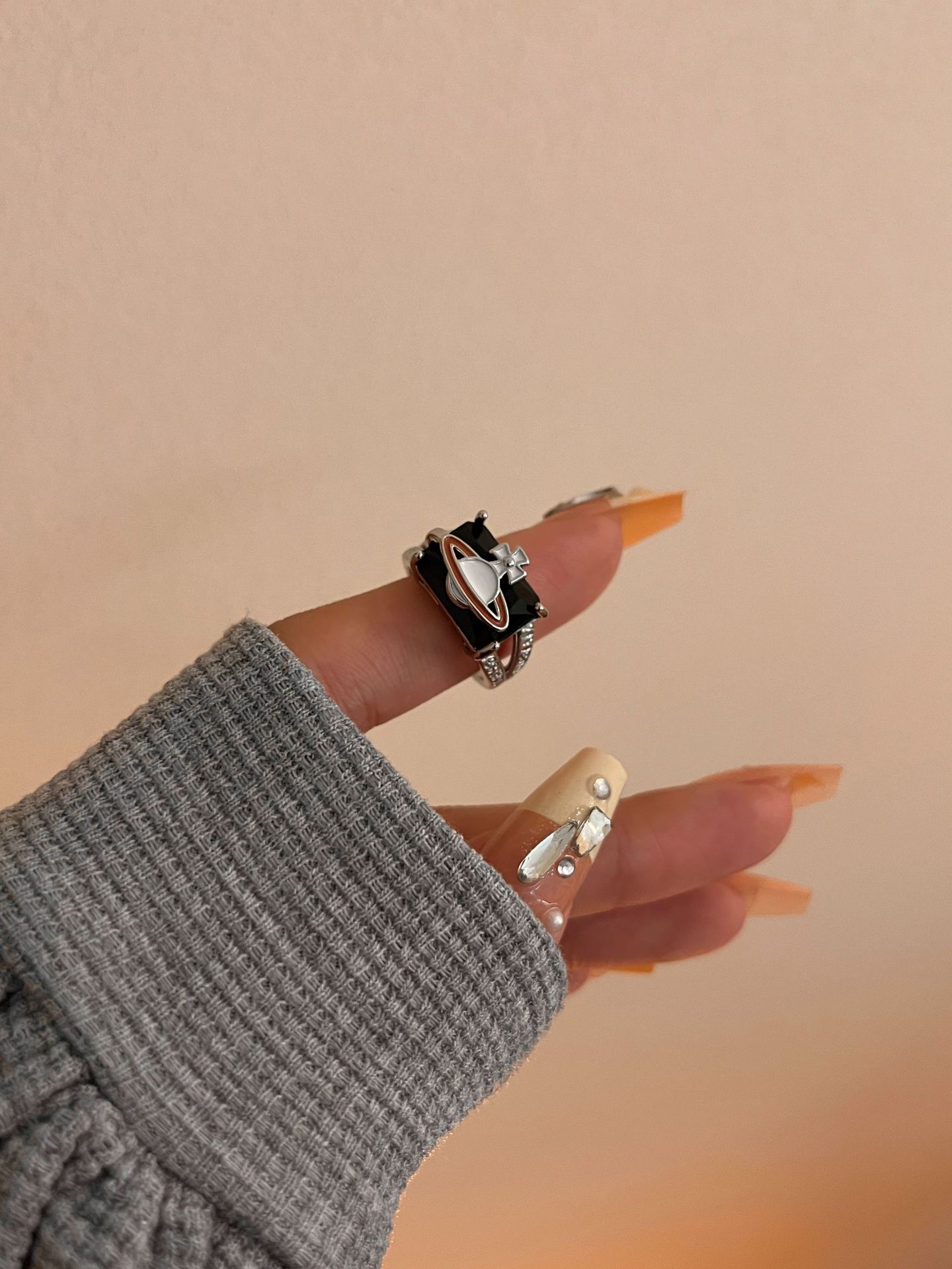 Nuevo anillo de Saturno con lazo de caramelo estilo europeo y americano con incrustaciones de diamantes, anillo de planeta con letra de esmalte de alta calidad