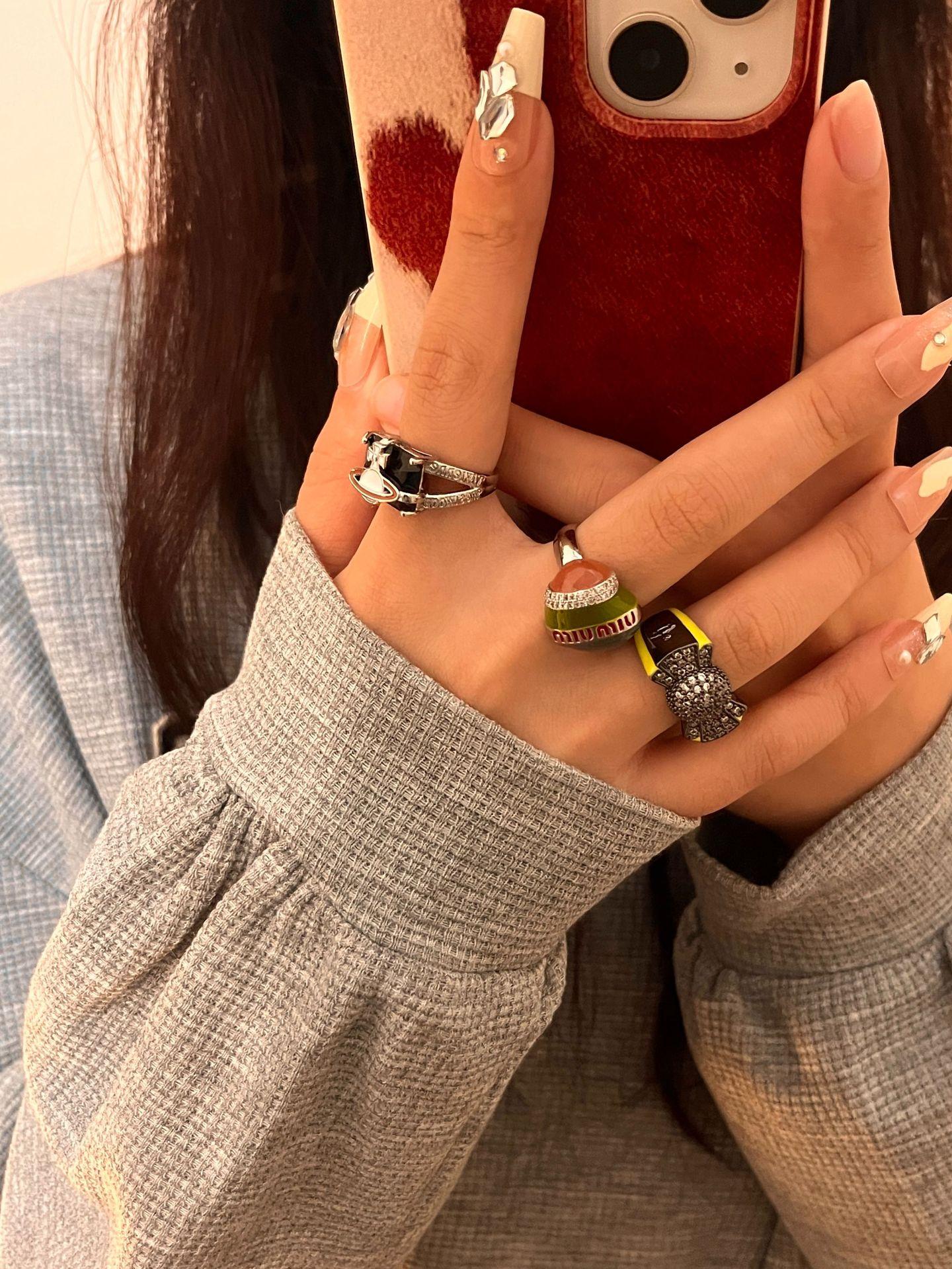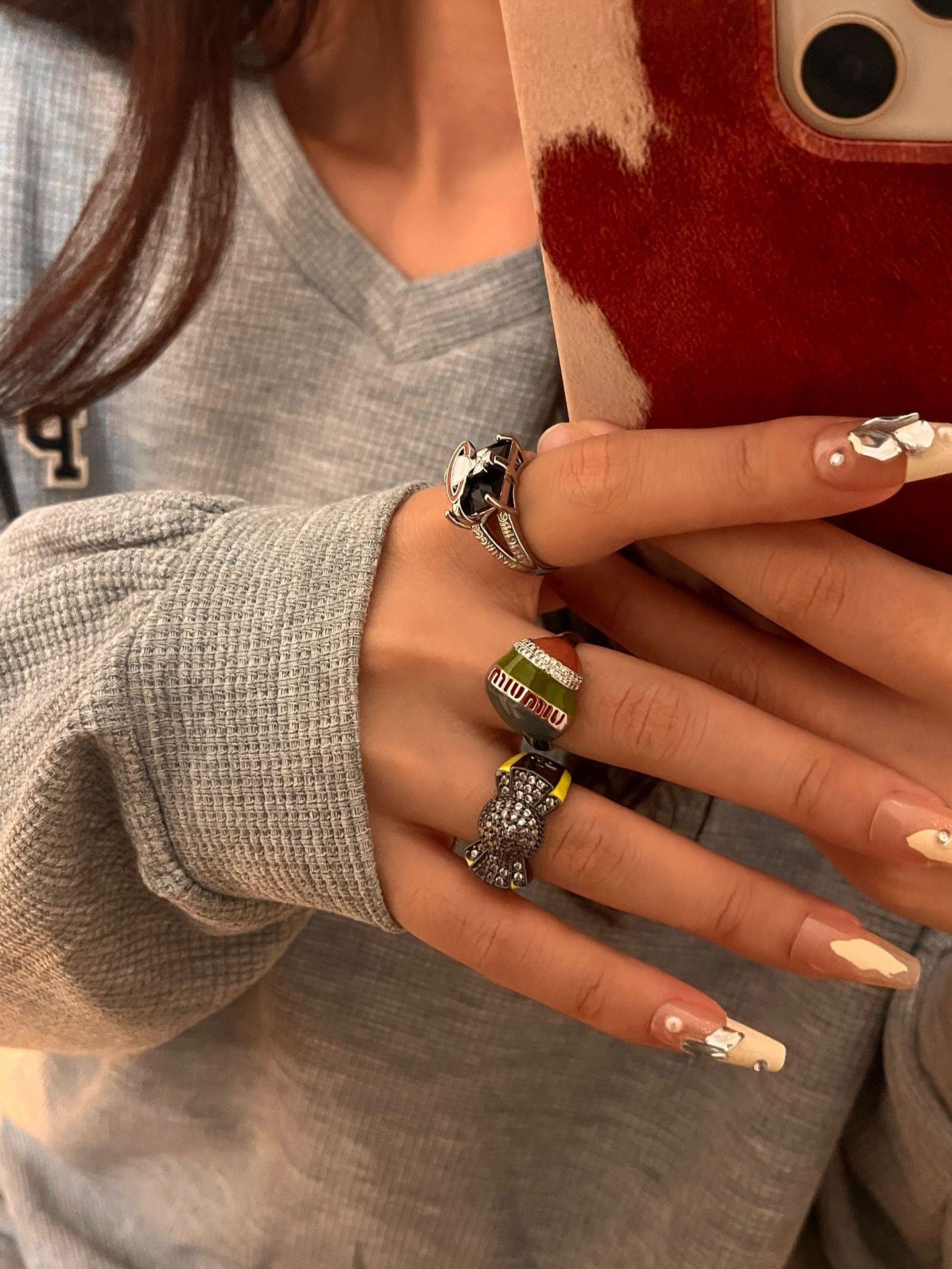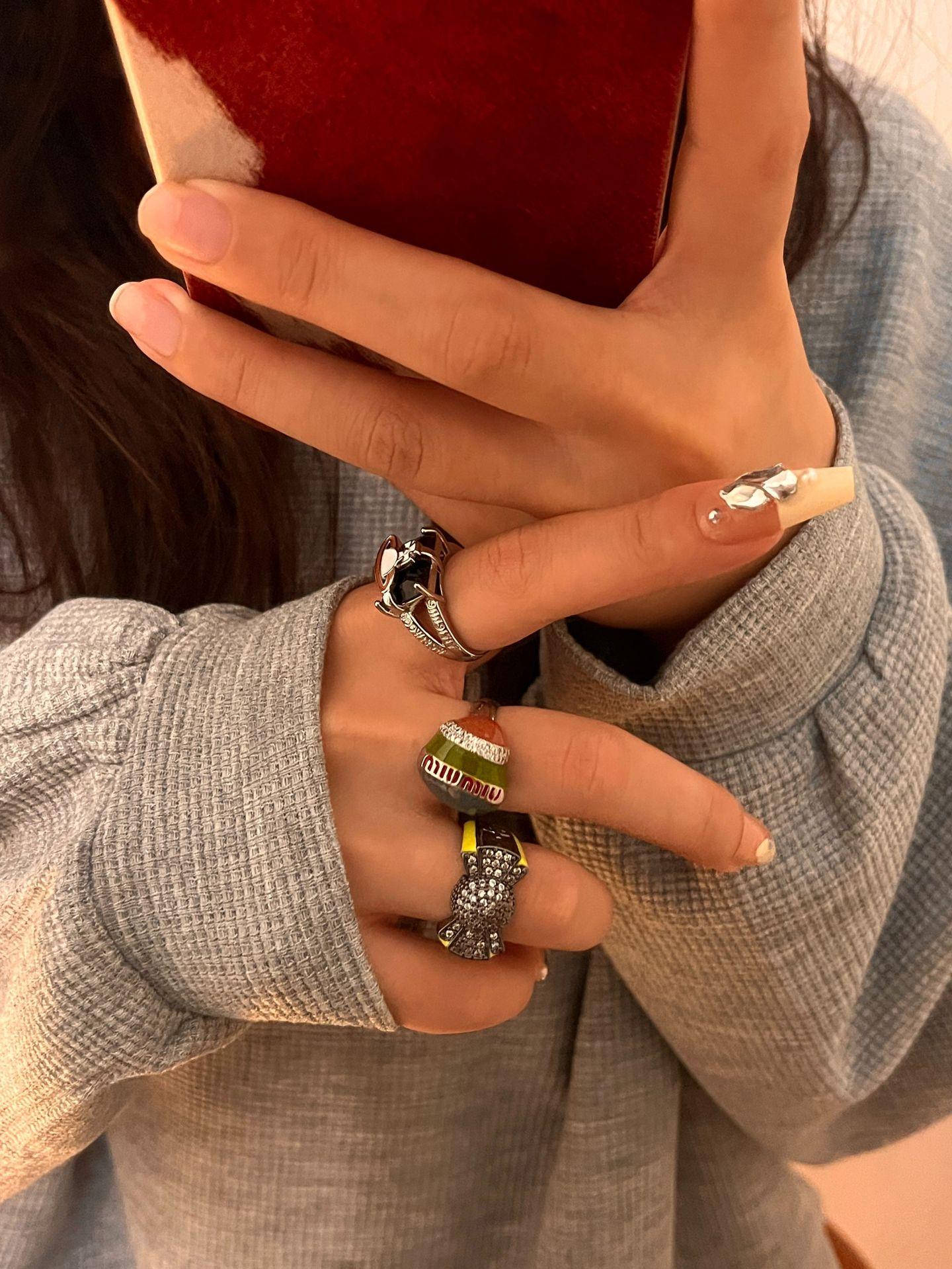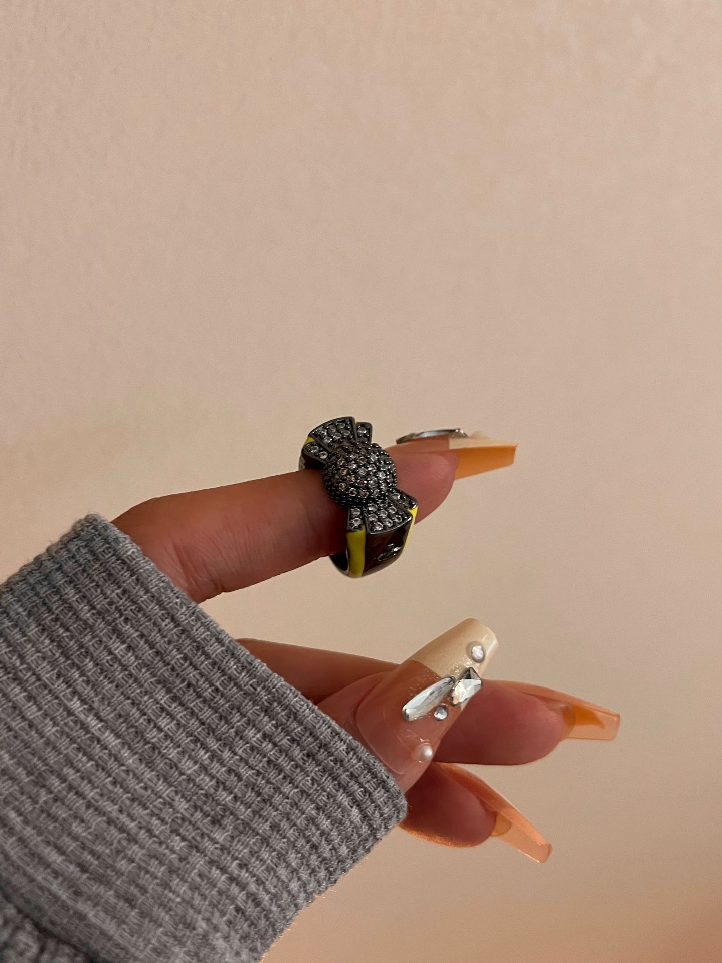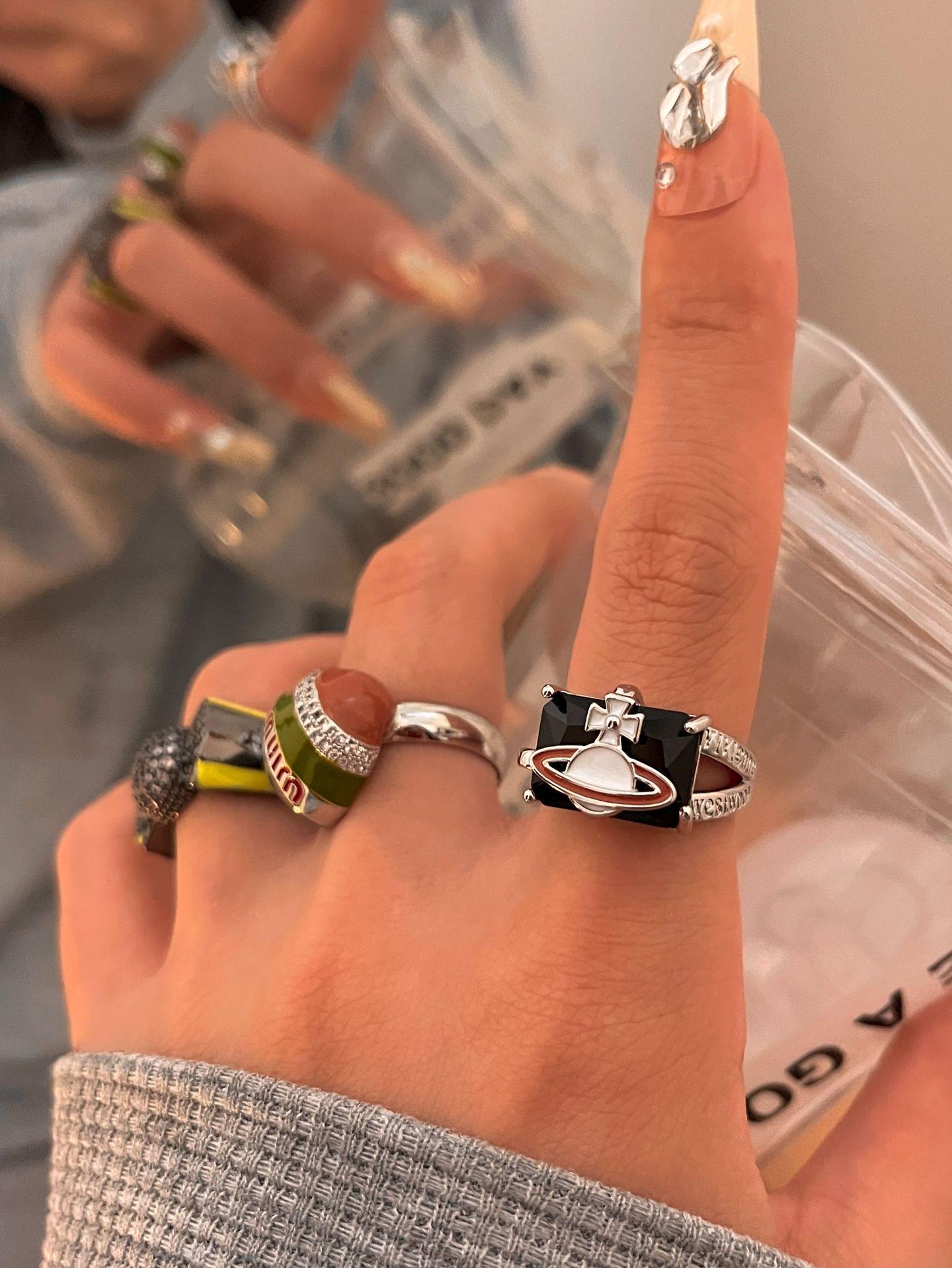 Nuevo anillo de Saturno con lazo de caramelo estilo europeo y americano con incrustaciones de diamantes, anillo de planeta con letra de esmalte de alta calidad