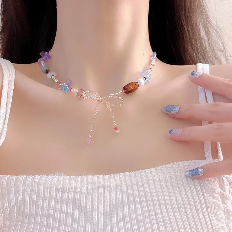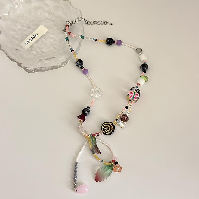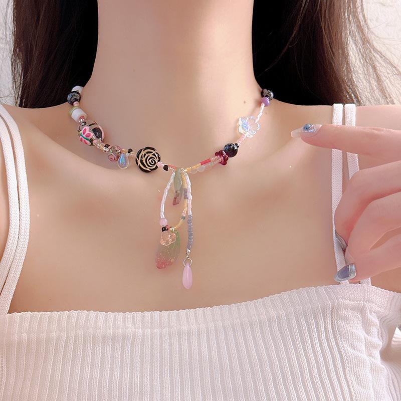 Collar de cuentas irregulares para mujer, diseño de nicho, cadena de clavícula de flores de lujo, ligero y de alta gama, accesorios geniales para celebridades de Internet.