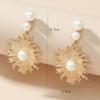 Pendientes irregulares con forma de anillo geométrico largo creativo de viento frío con perlas de girasol atmosféricas exageradas de estilo europeo y americano